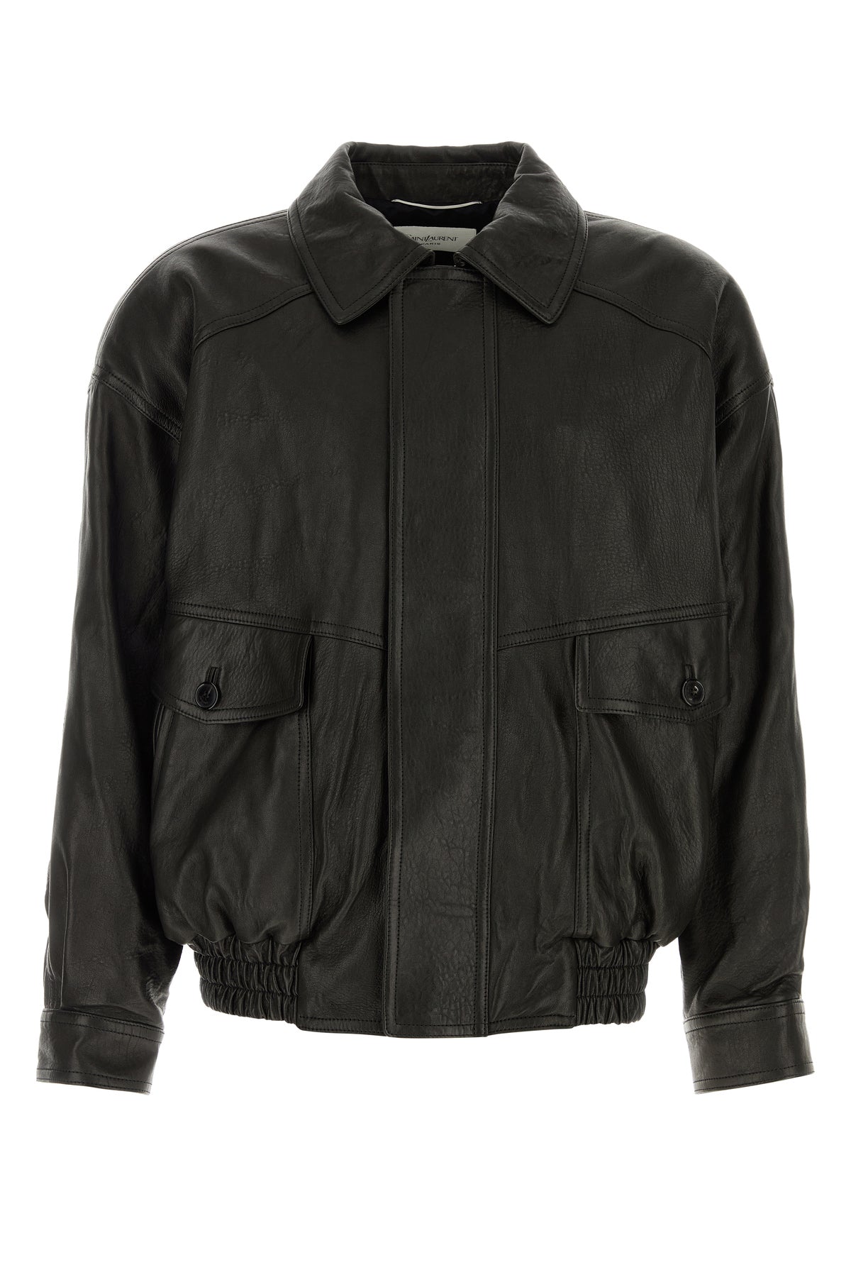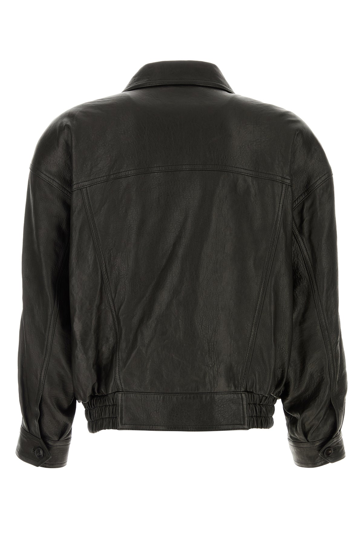 Jacket realized in pebble lamb leather characterized by collar.