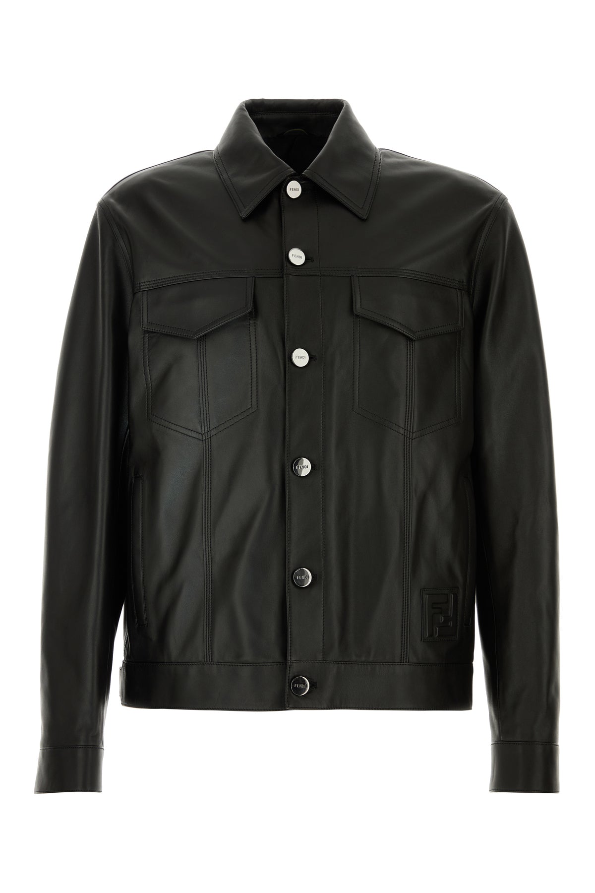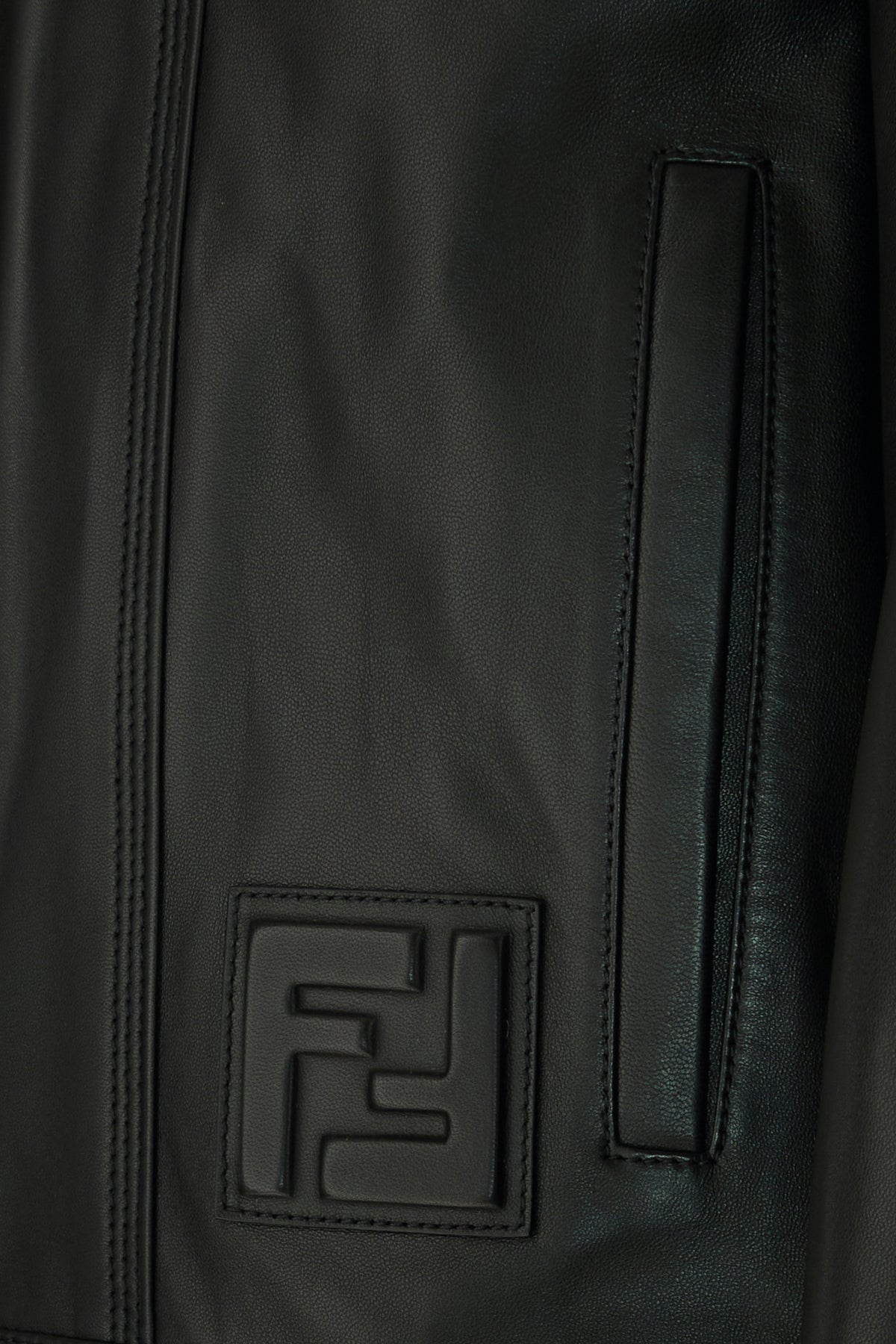 Jacket realized in lamb leather enriched by tonal FF patch on the hemline.