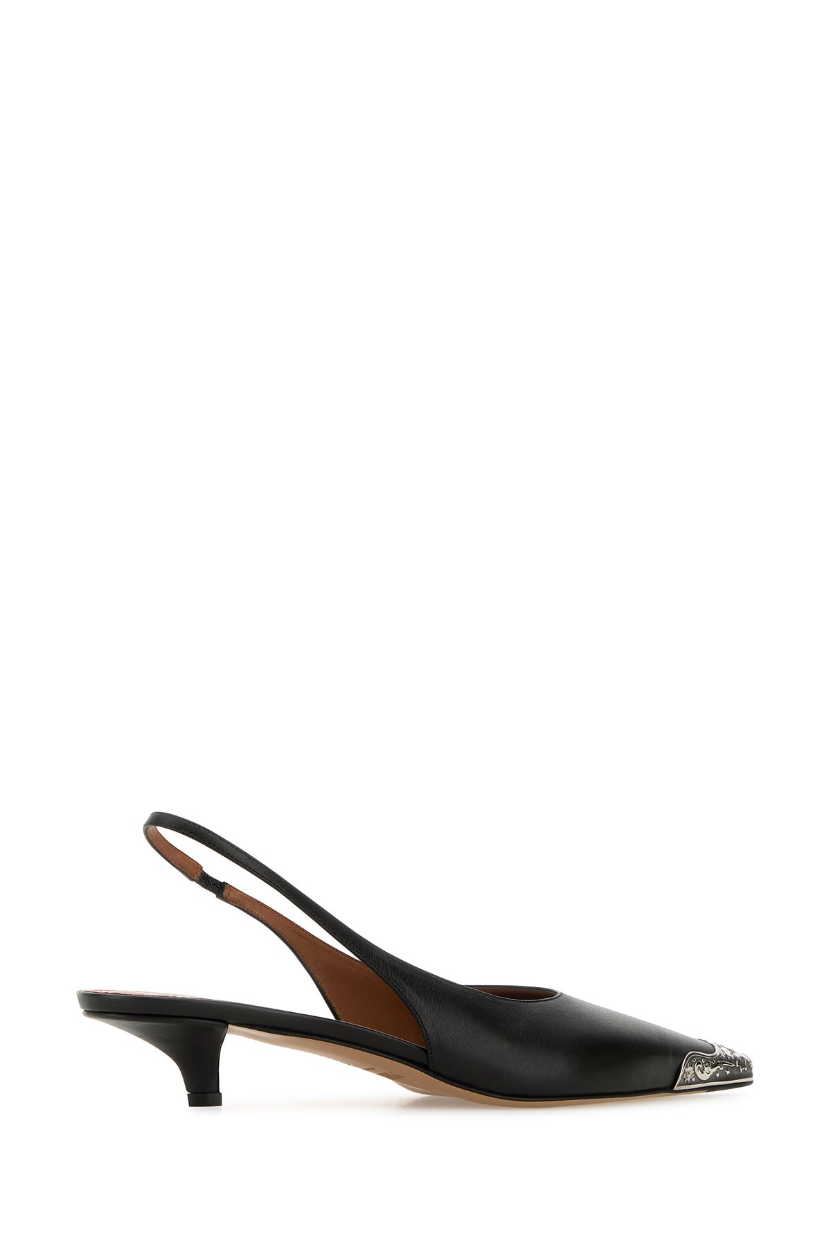 Slingback realized in smooth leather enriched by peculiar metal toe.