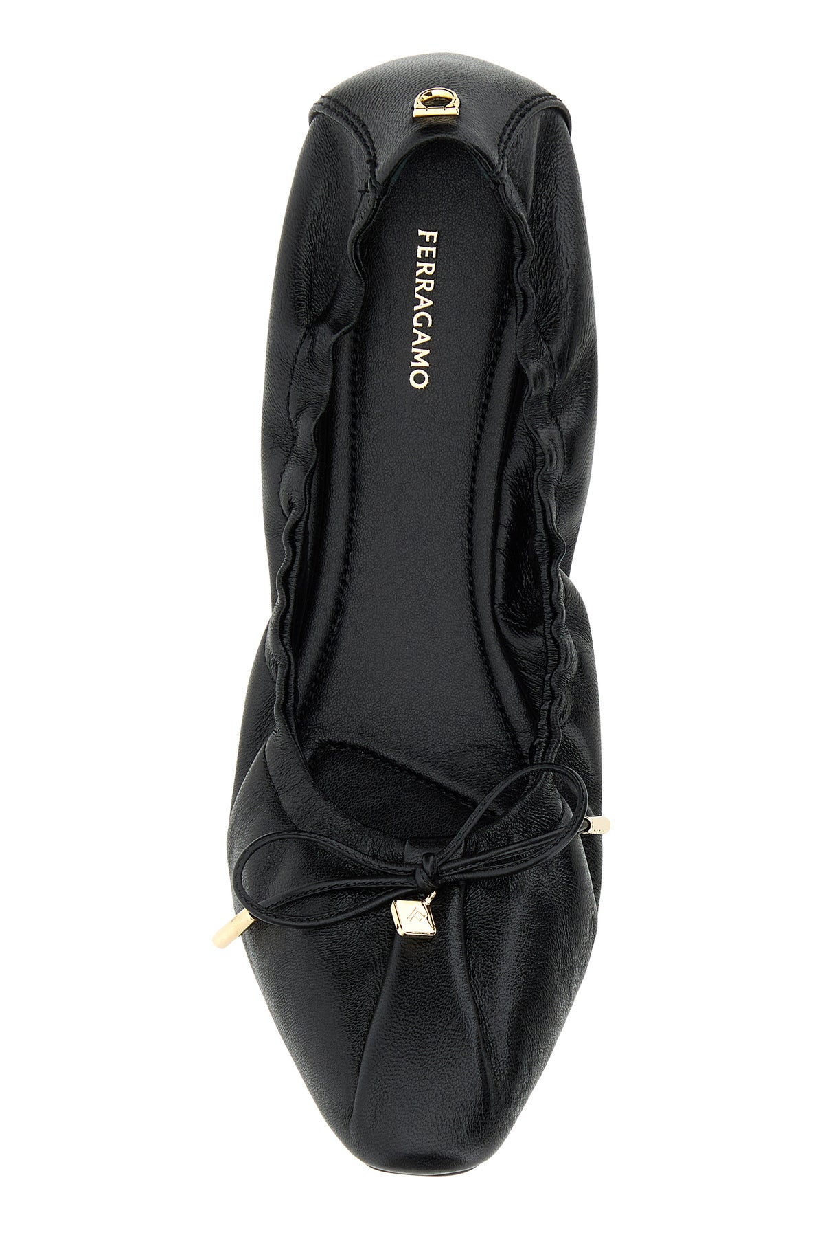 Ballerinas realized in polished finish lamb leather enriched by decorative bow at the front.
