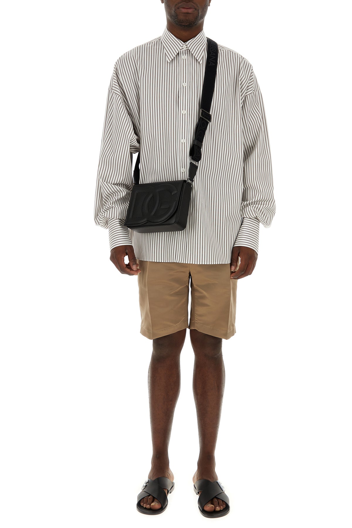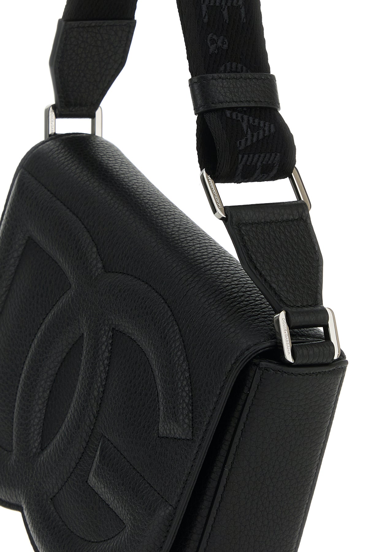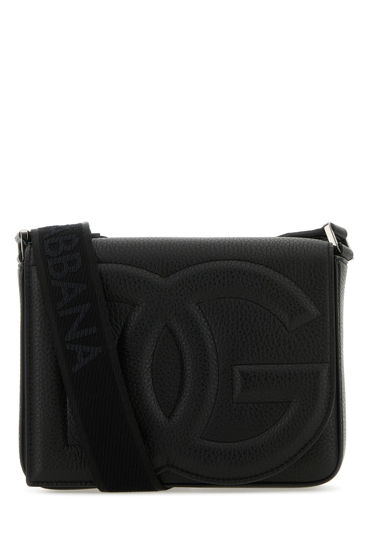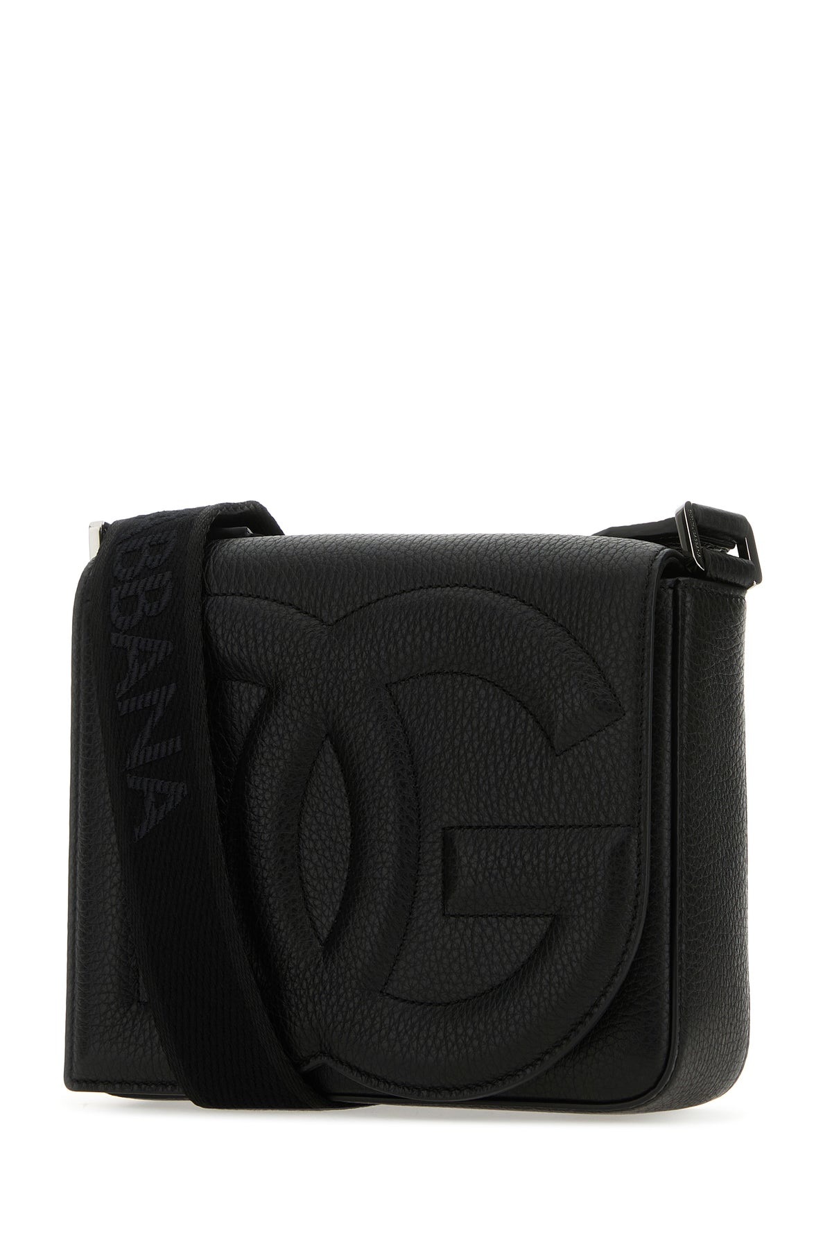 Black leather medium DG Logo crossbody bag