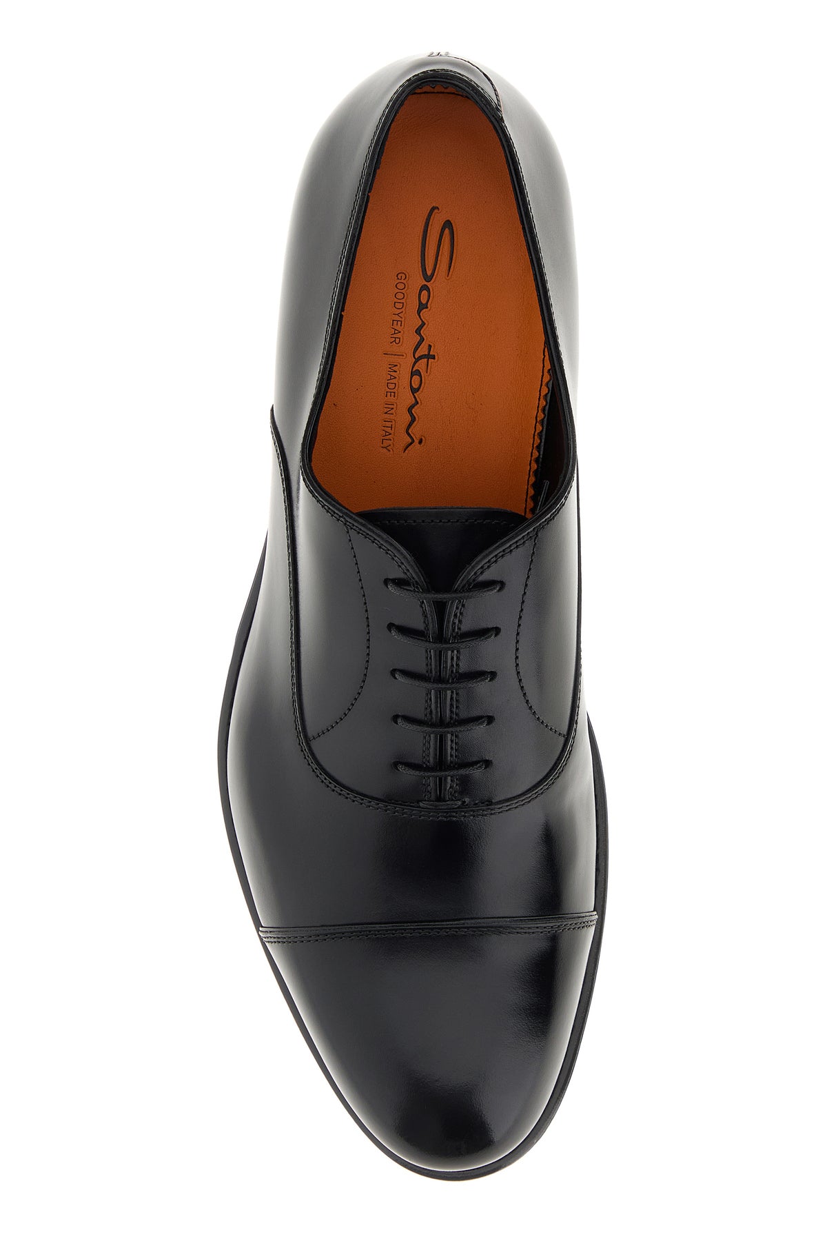 Lace-up shoes realized in polished finish leather characterized by reinforced toe.