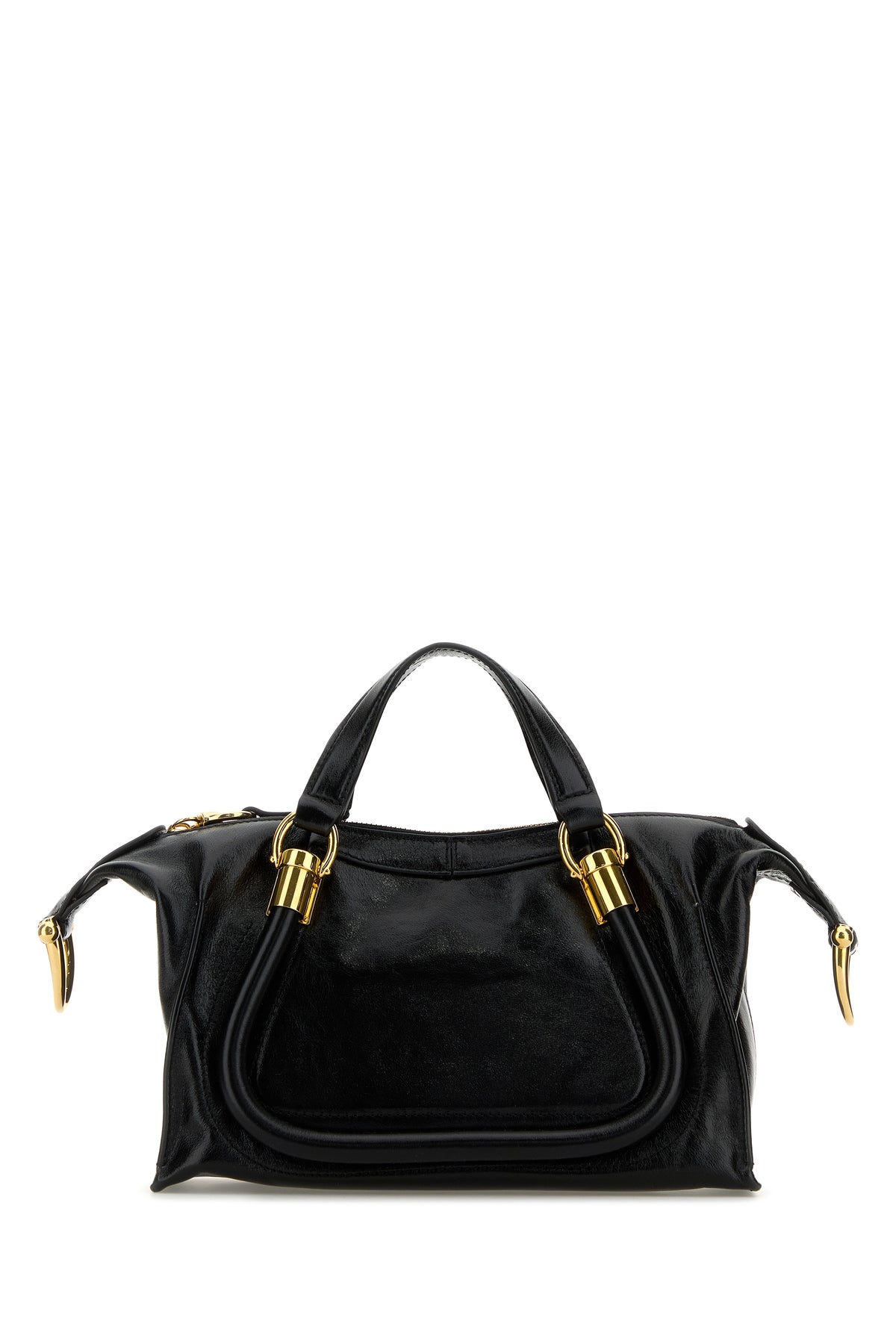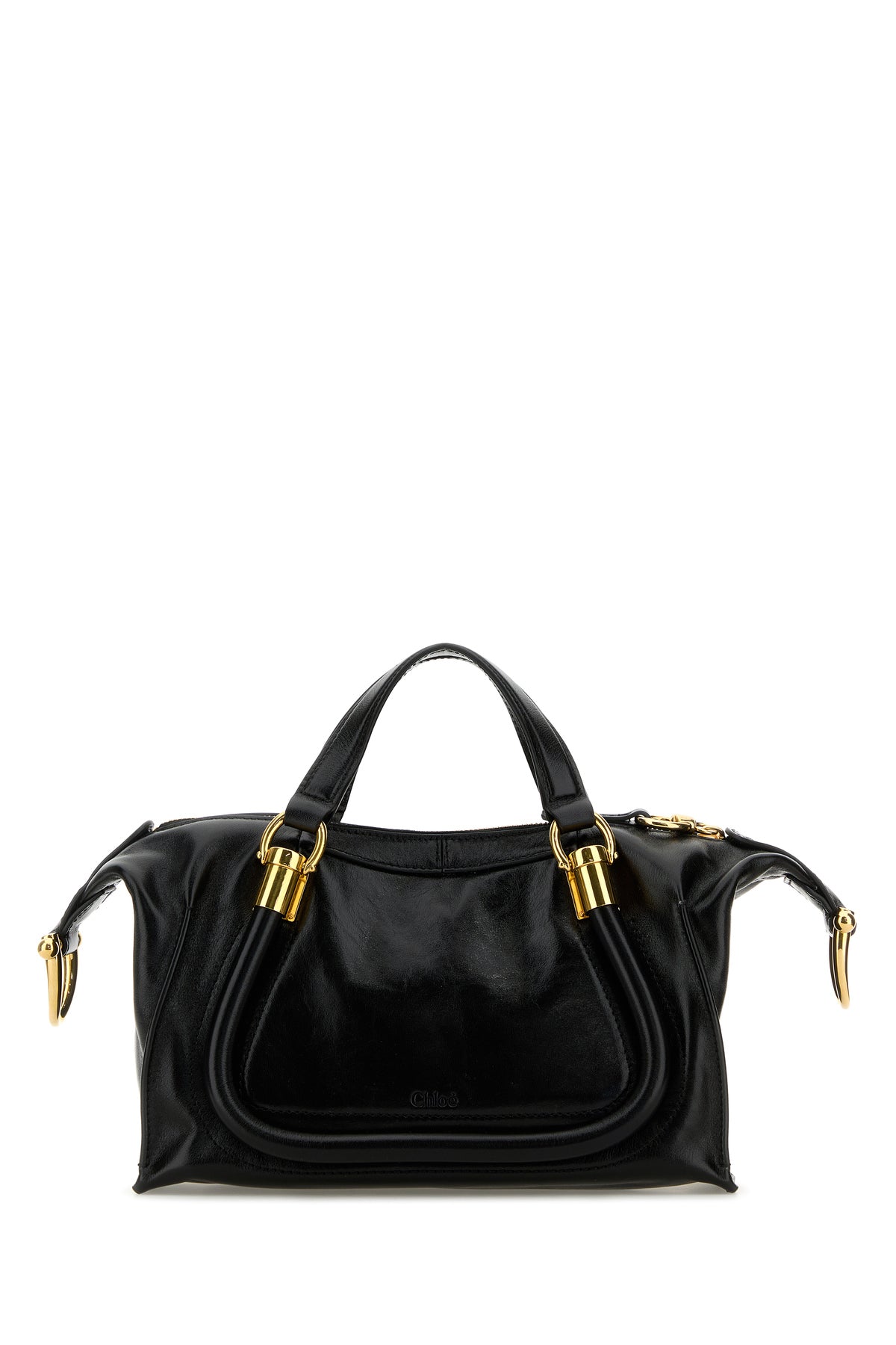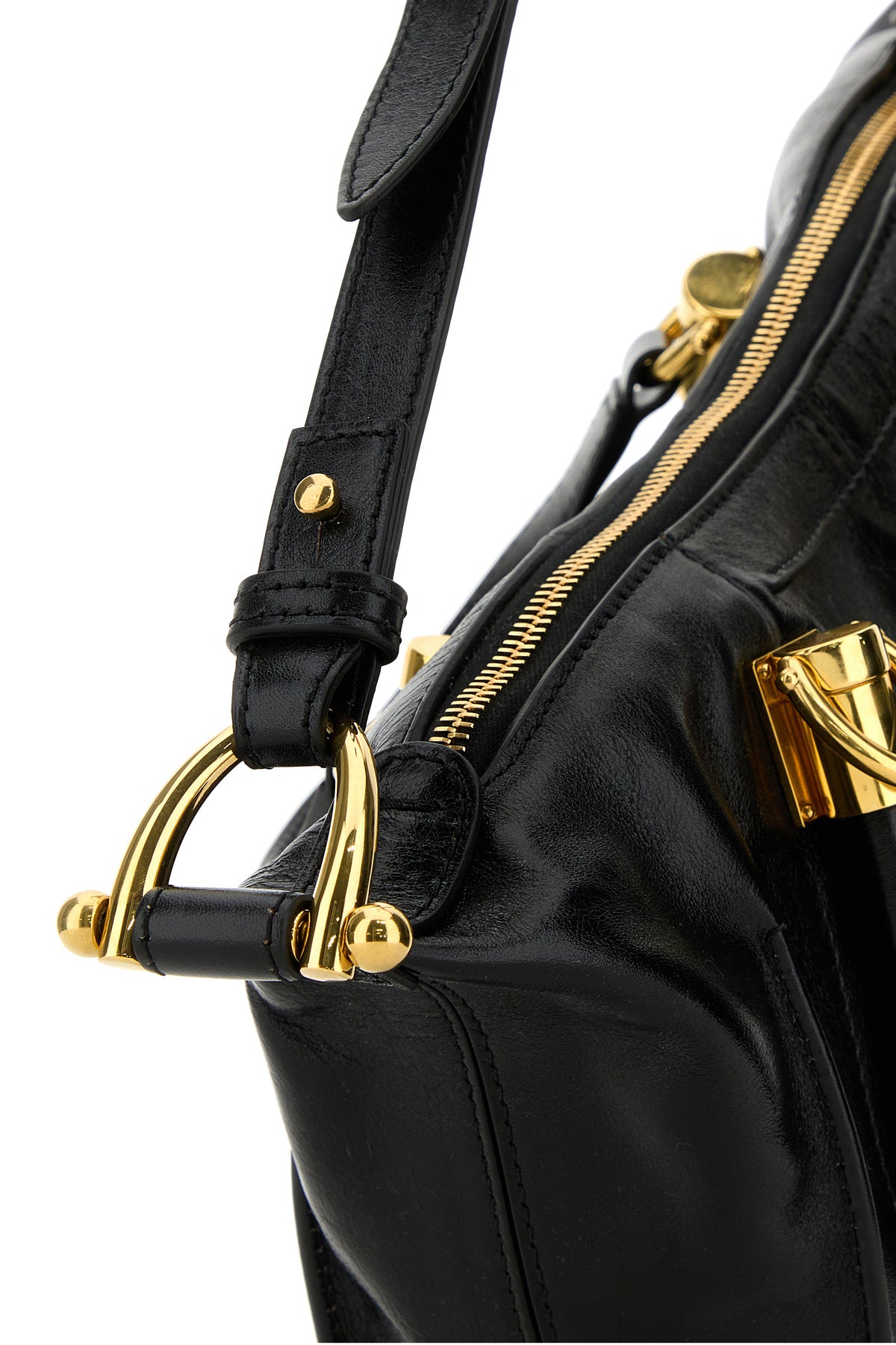 Handbag realized in polished-finish slightly pebble calf leather characterized by embossed logo at the front.