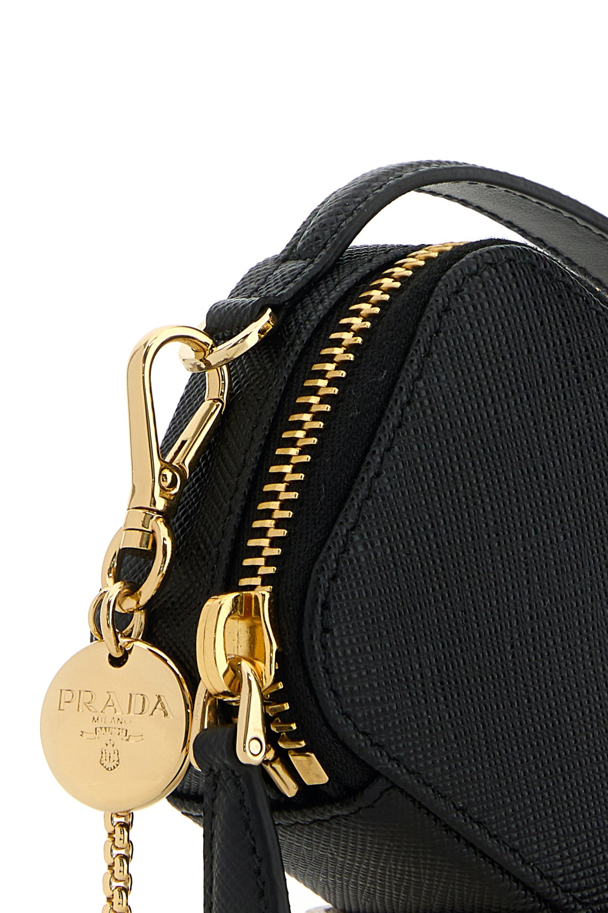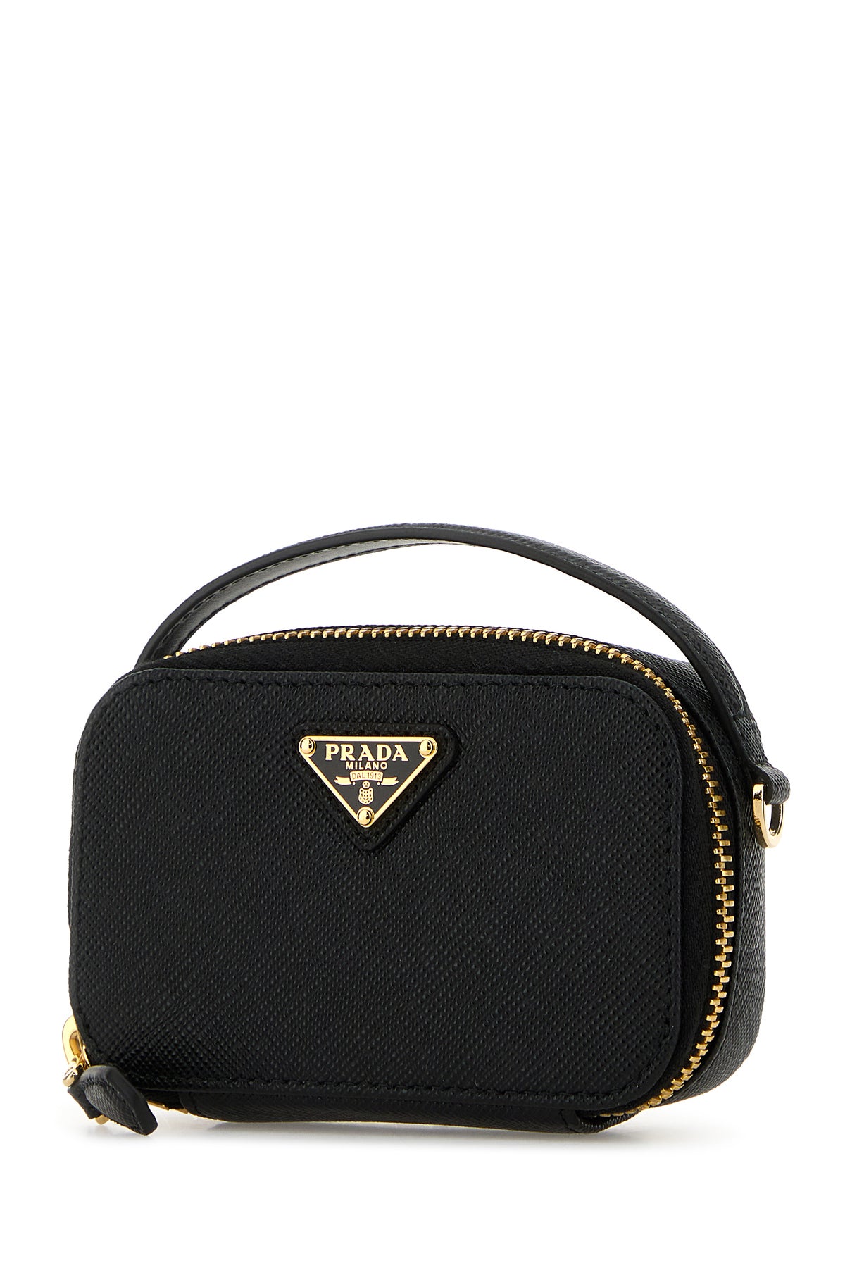 Pouch realized in Saffiano calf leather enriched by metal iconic logoed triangle at the front.