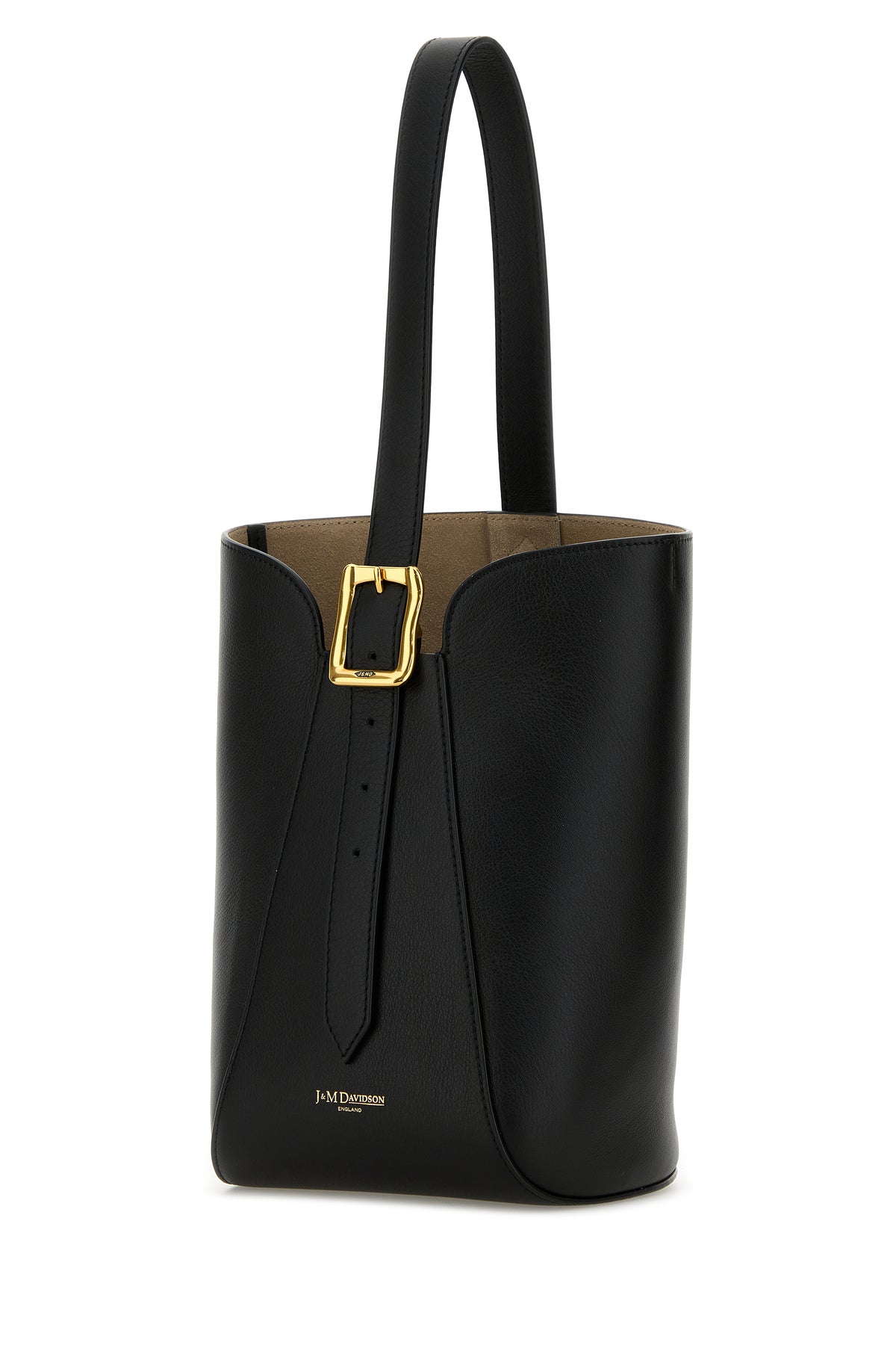 Bucket bag realized in smooth calf leather characterized by contrasting printed logo at the front.