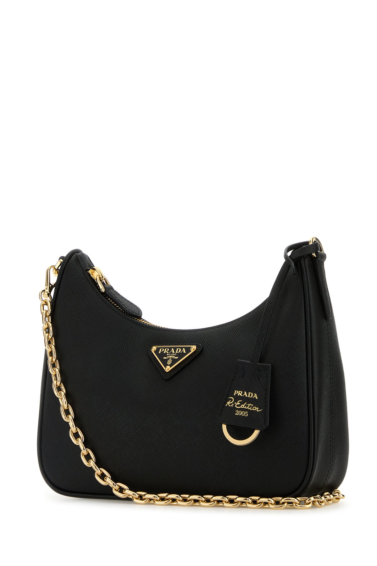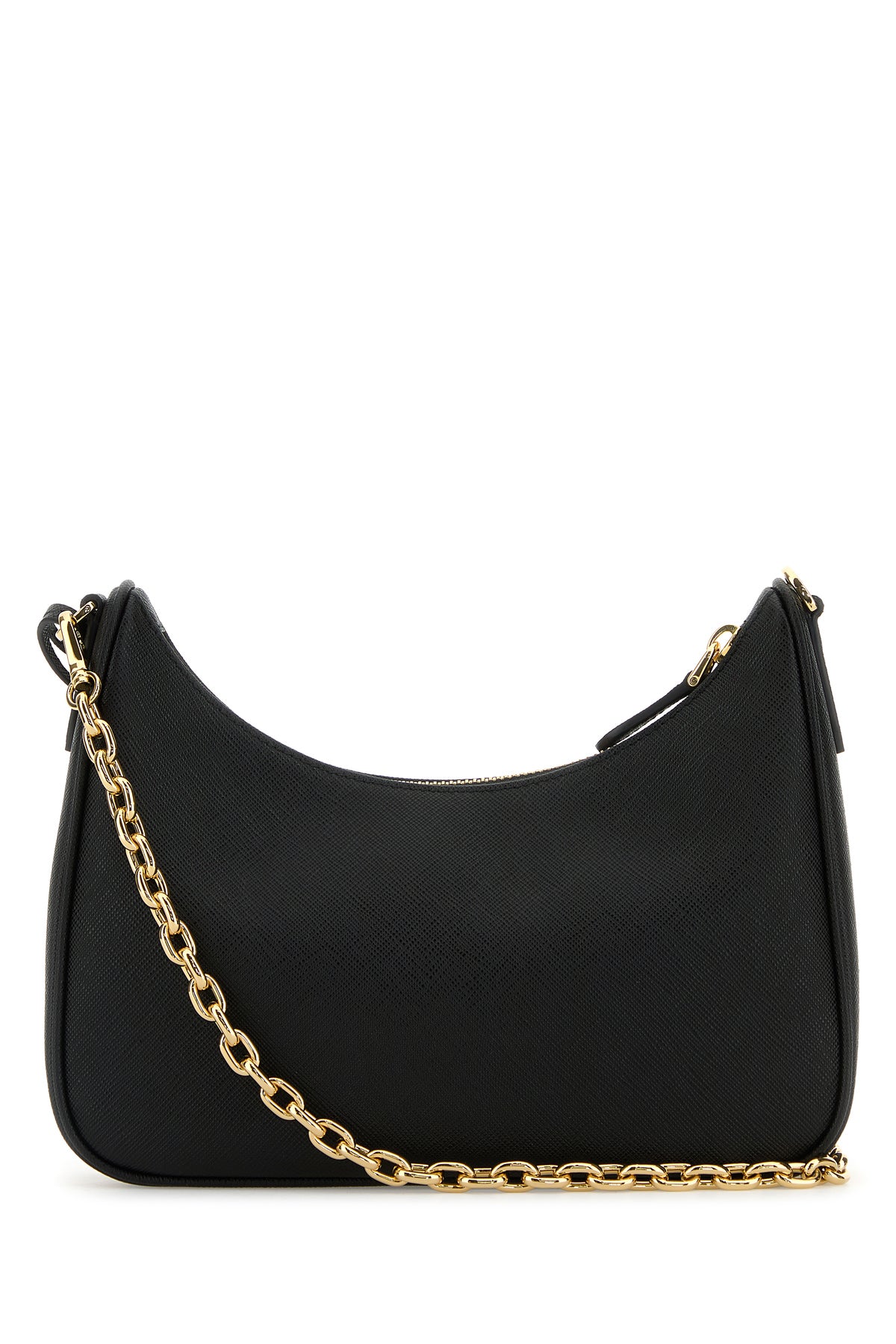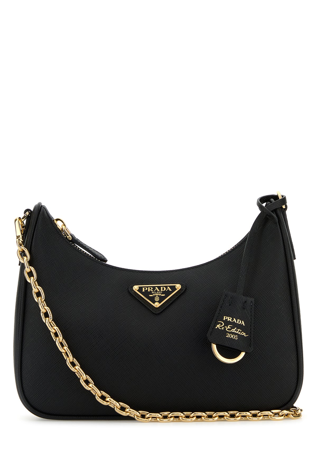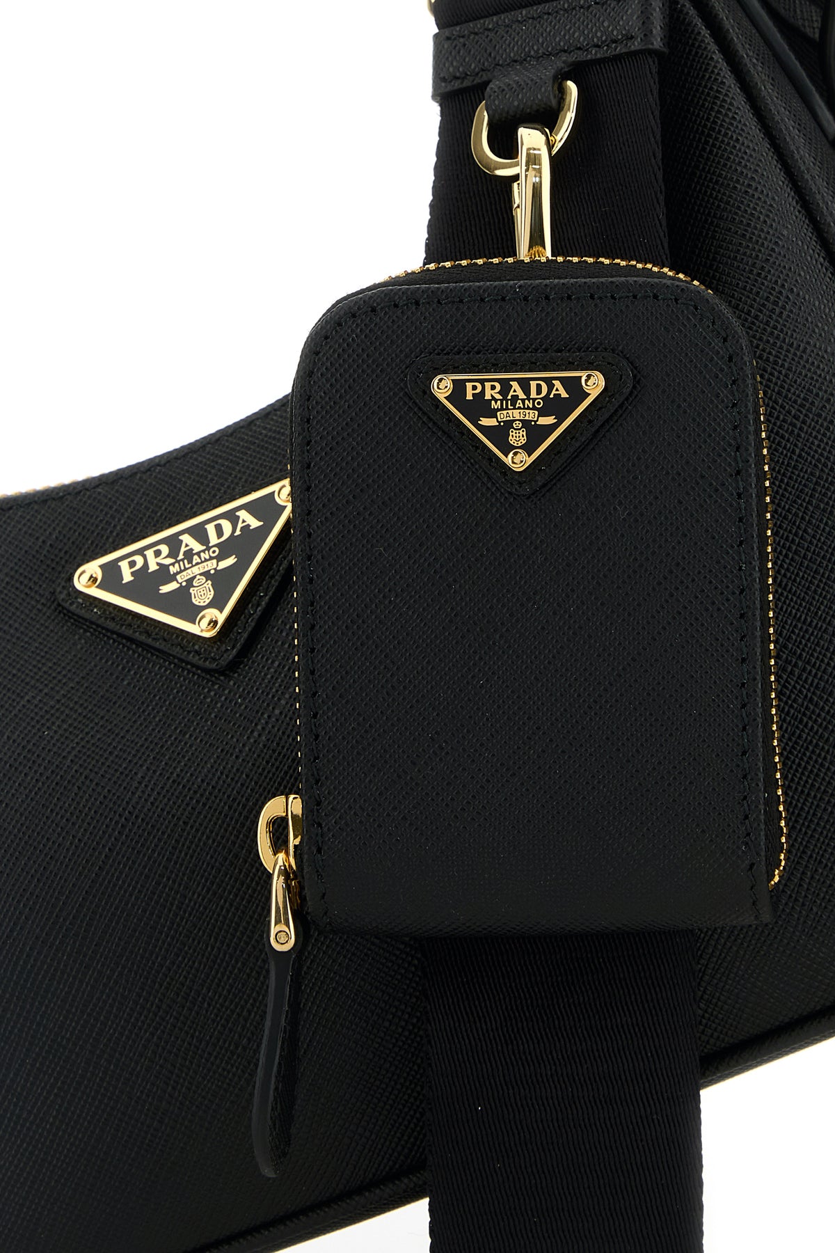 Shoulder bag realized in Saffiano leather enriched by metal iconic logoed triangle at the front and detachable tonal leather accessory with key ring.