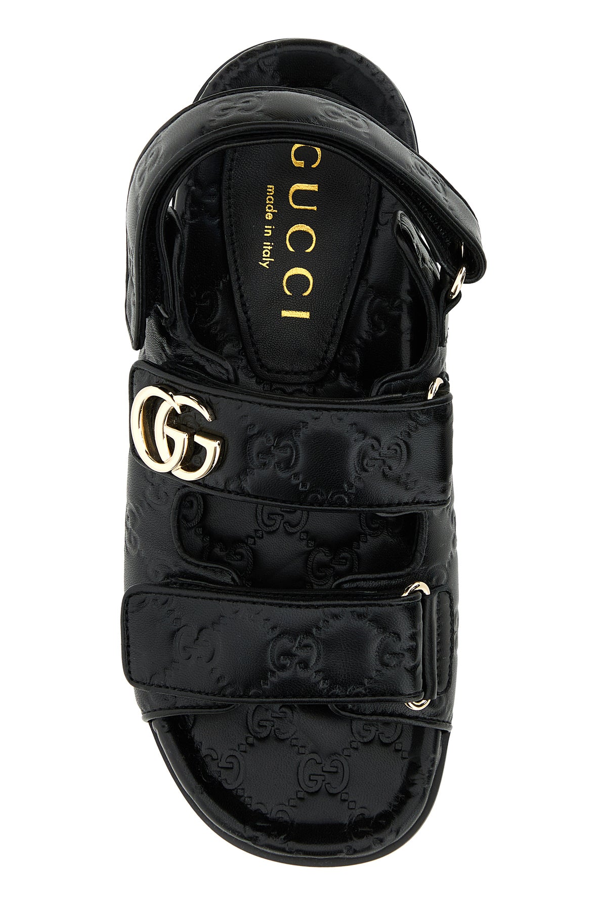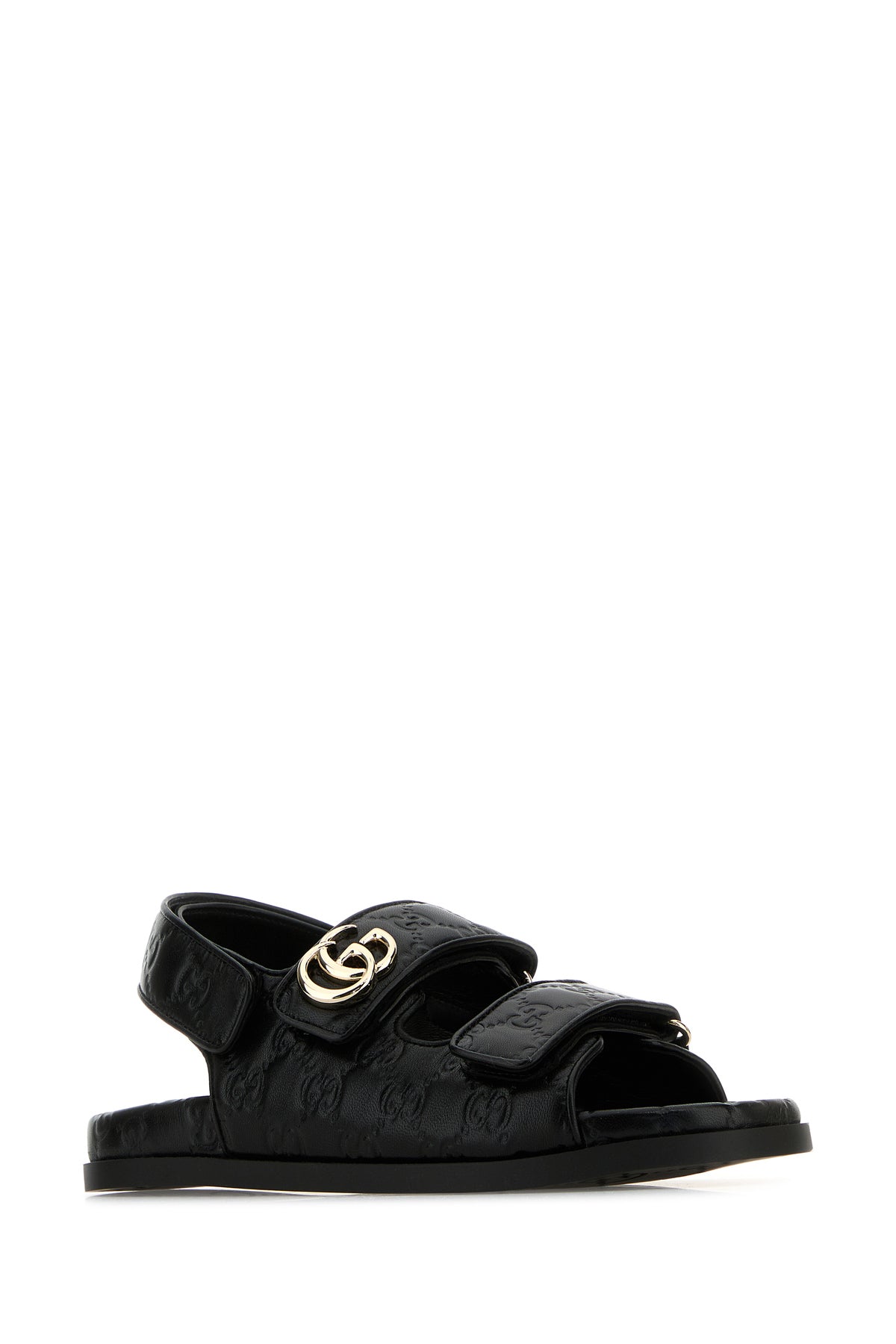 Sandals realized in Napa leather characterized by embossed GG motif on the entire surface and GG metal detail on the instep.