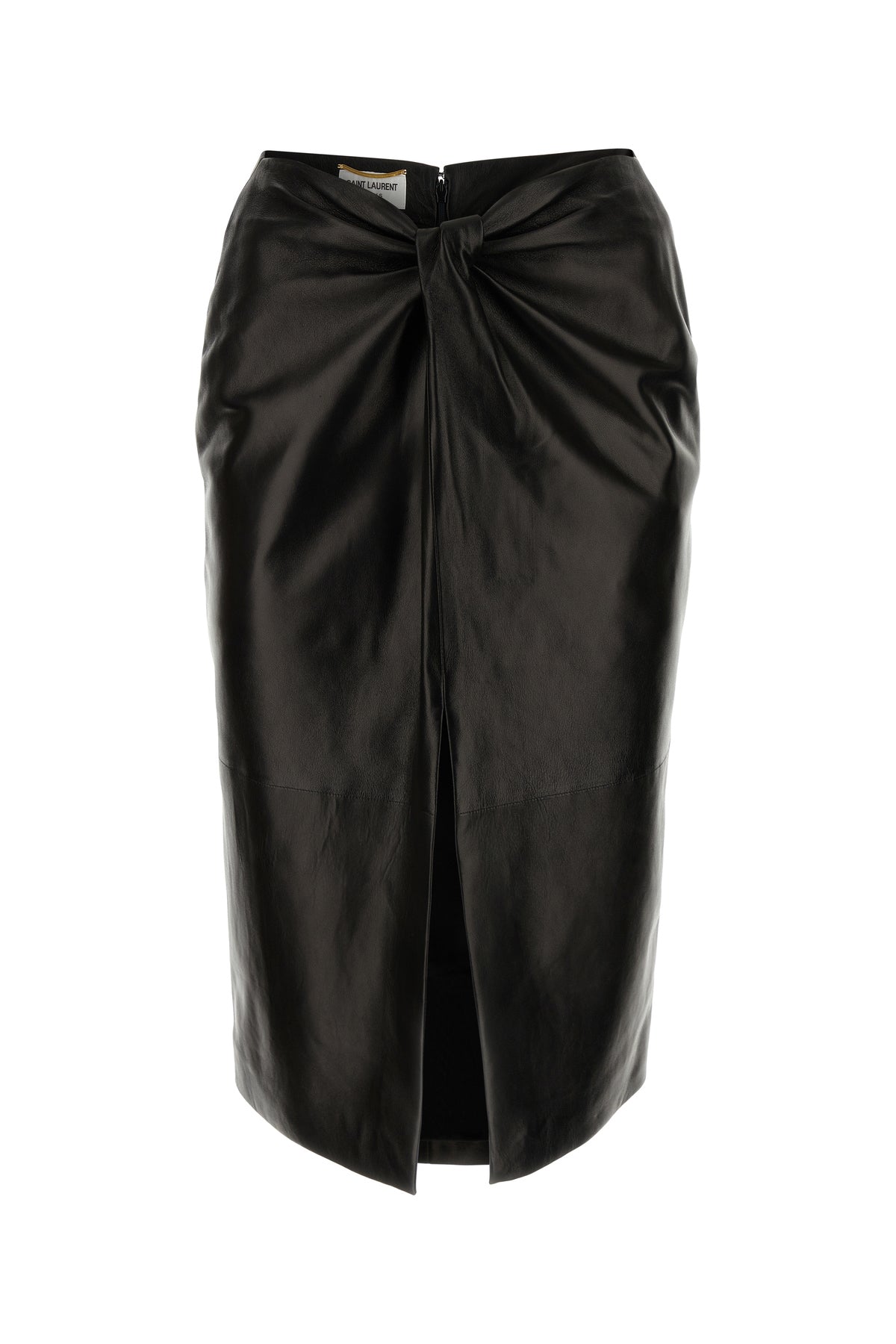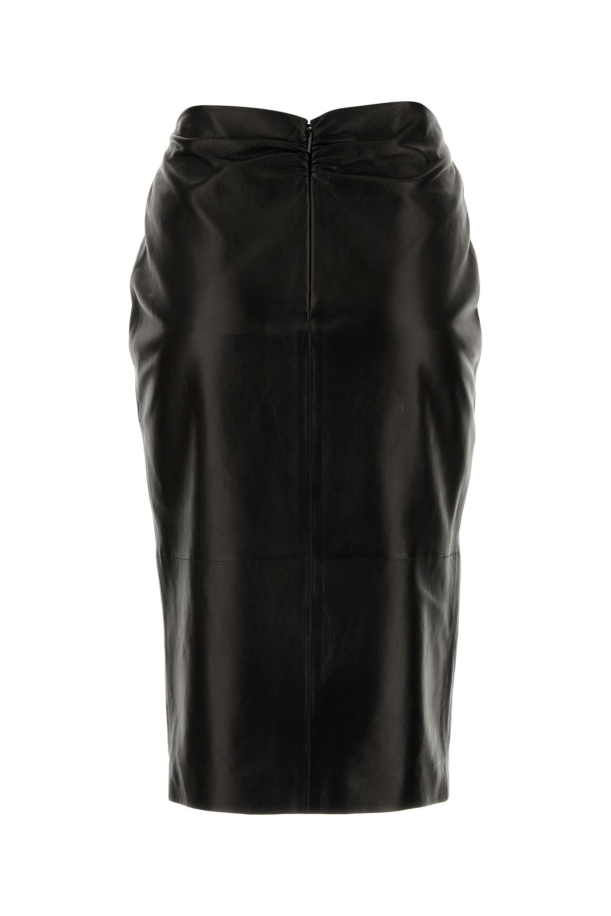 Skirt realized in slightly pebble leather characterized by peculiar gathering at the front.