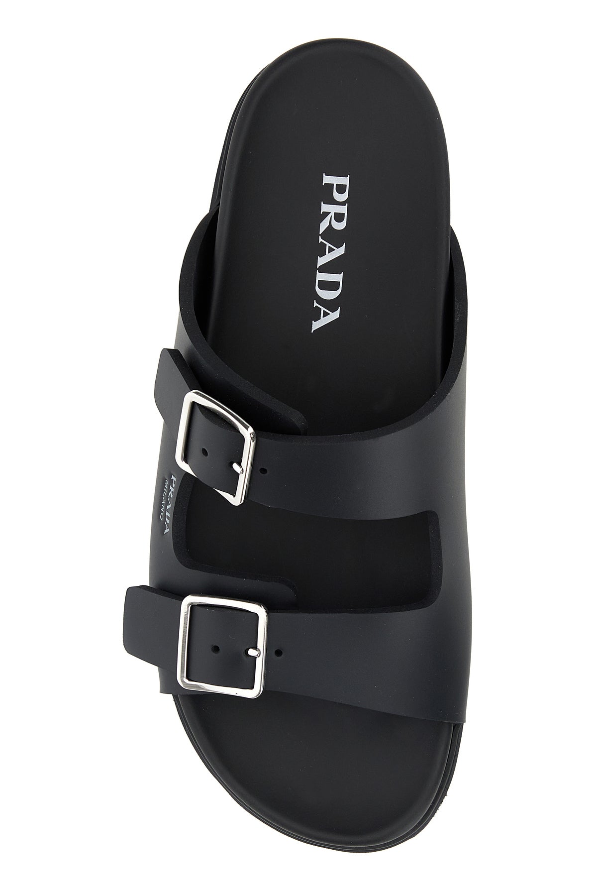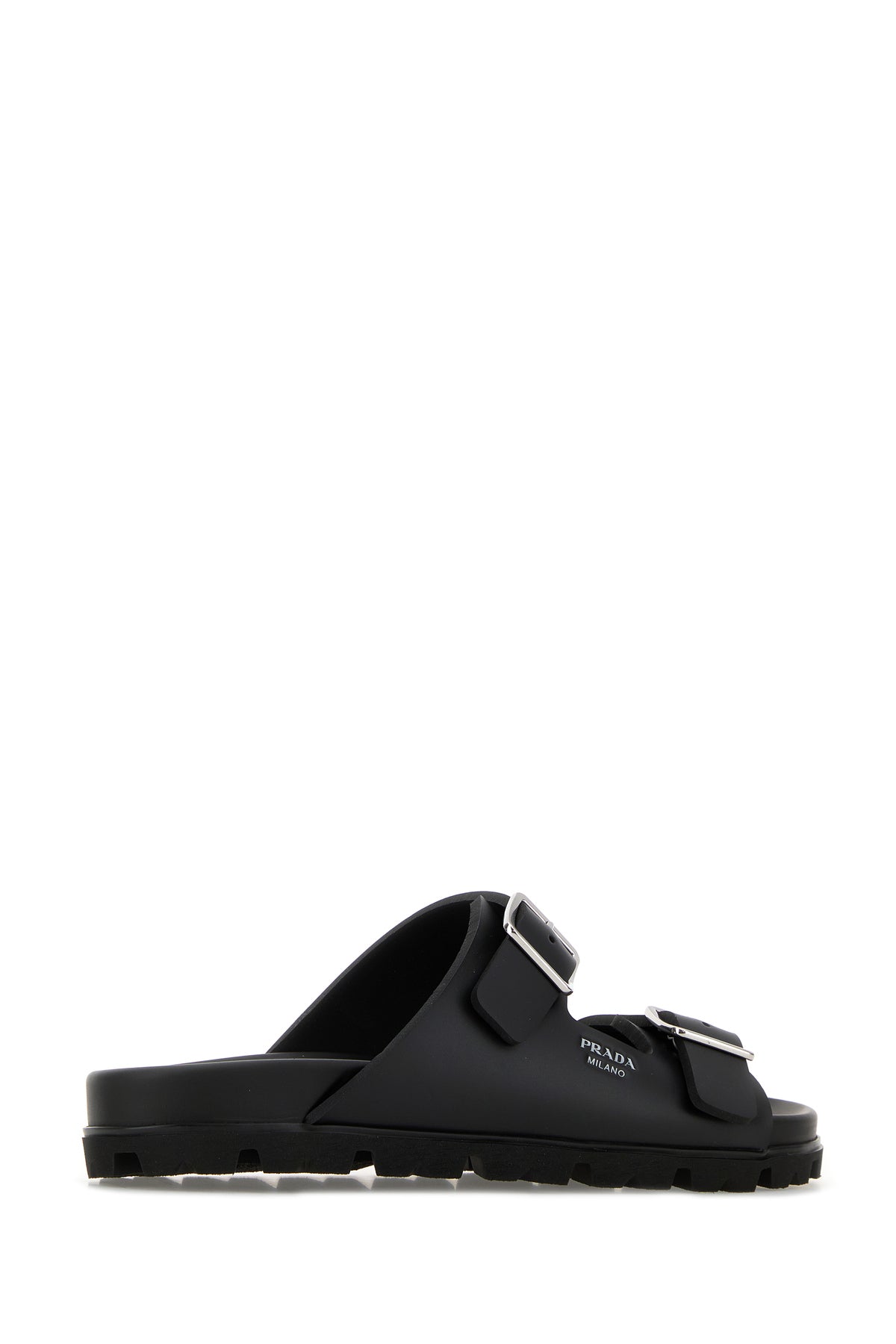 Slippers realized in smooth leather characterized by laminated printed logo on the side.