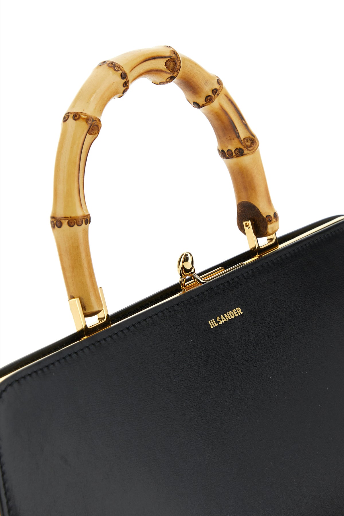 Black leather small Goji Bamboo handbag