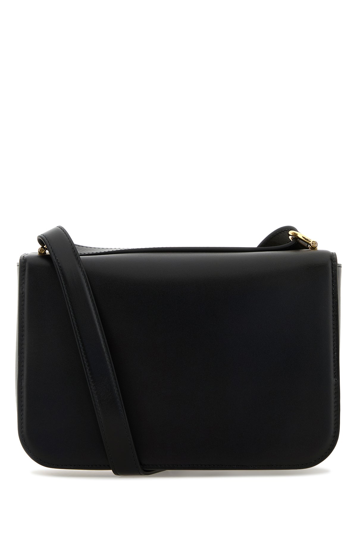 Shoulder bag realized in polished finish smooth leather enriched by Hardware metal detail on the snap-fit closure.