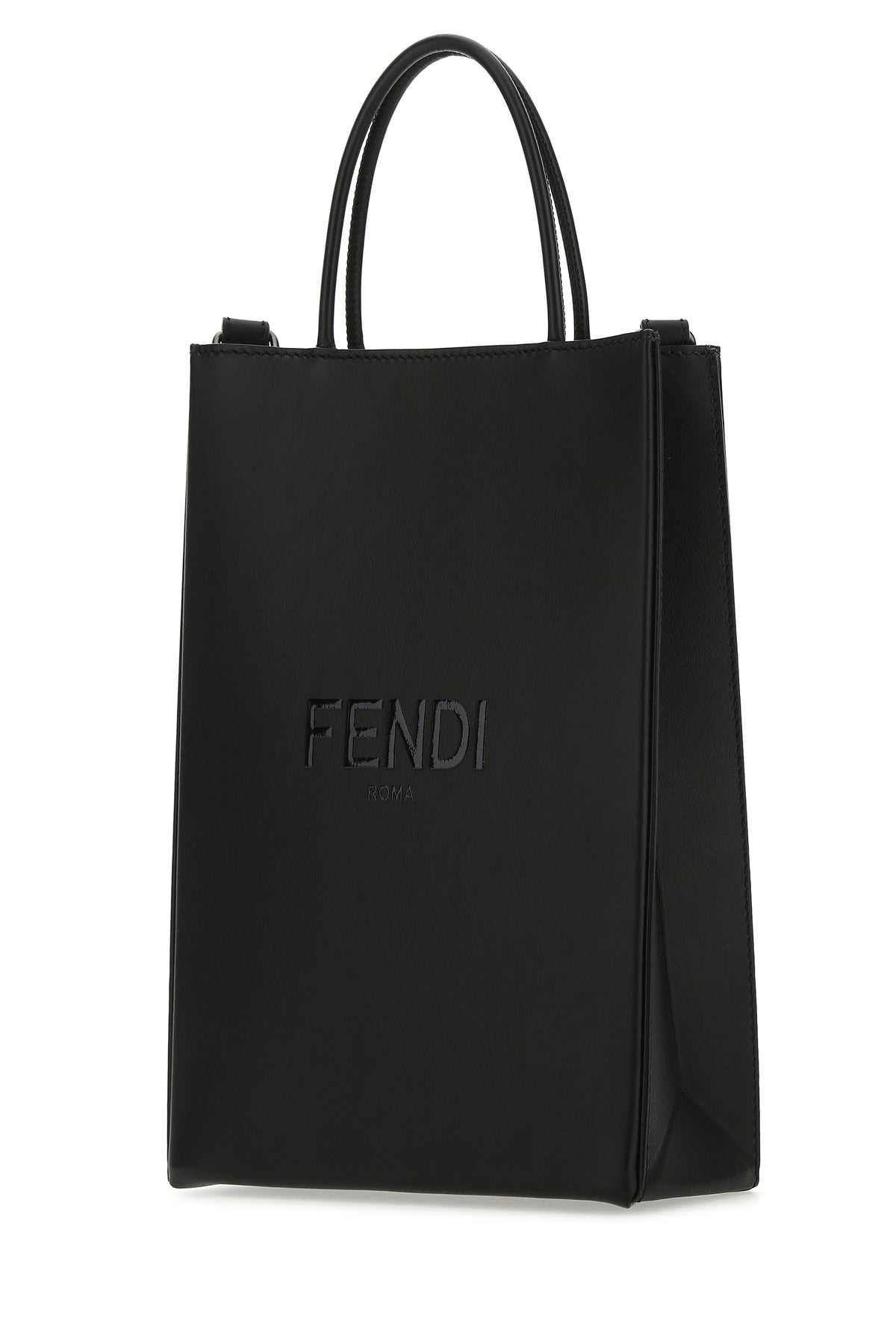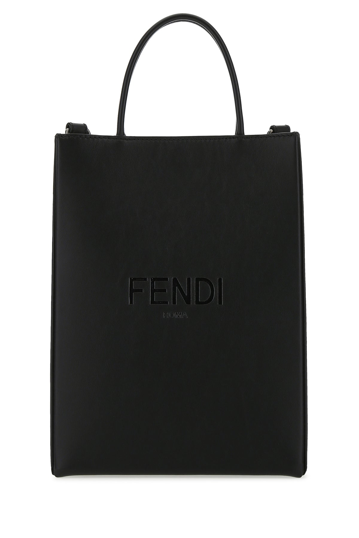 Handbag realized in smooth calf leather characterized by tonal printed logo at the front.