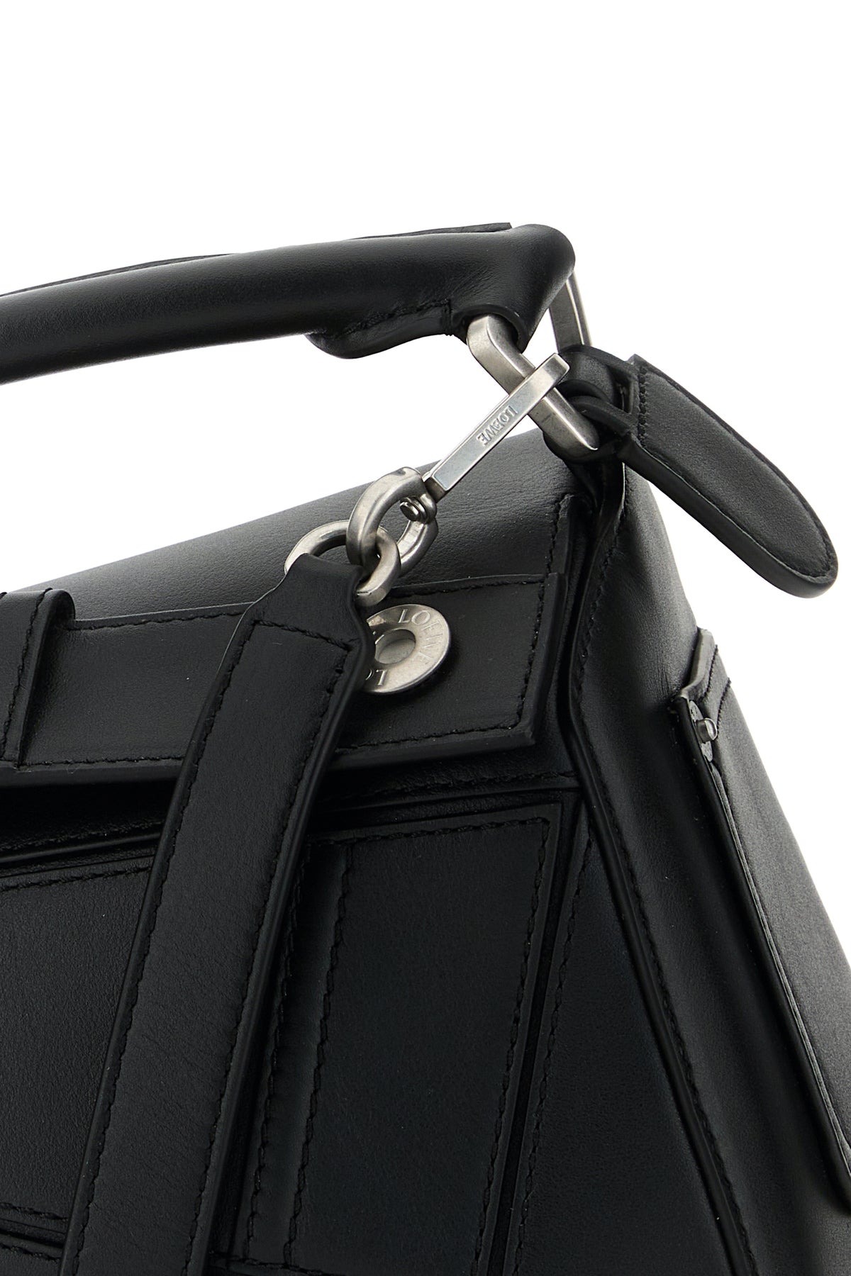 Handbag realized in satin calf leather characterized by iconic geometric motif on the entire surface.