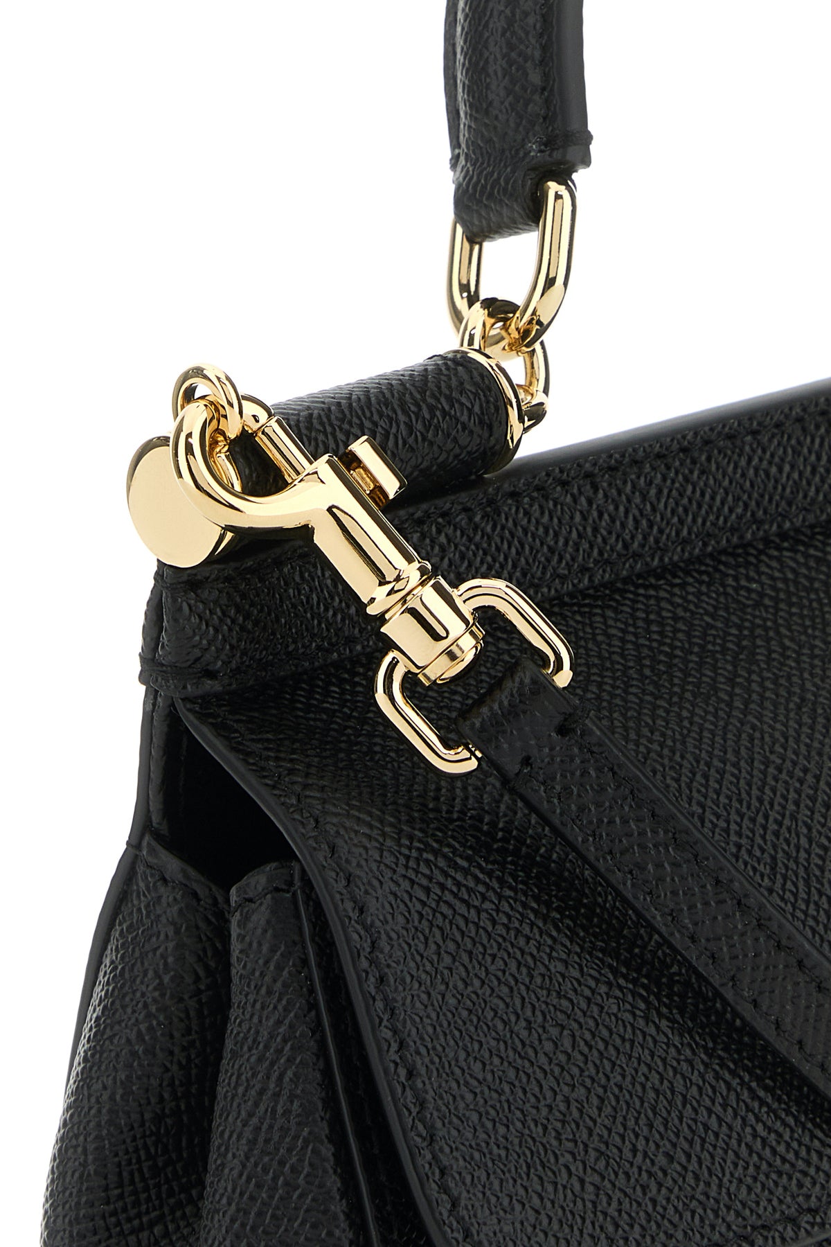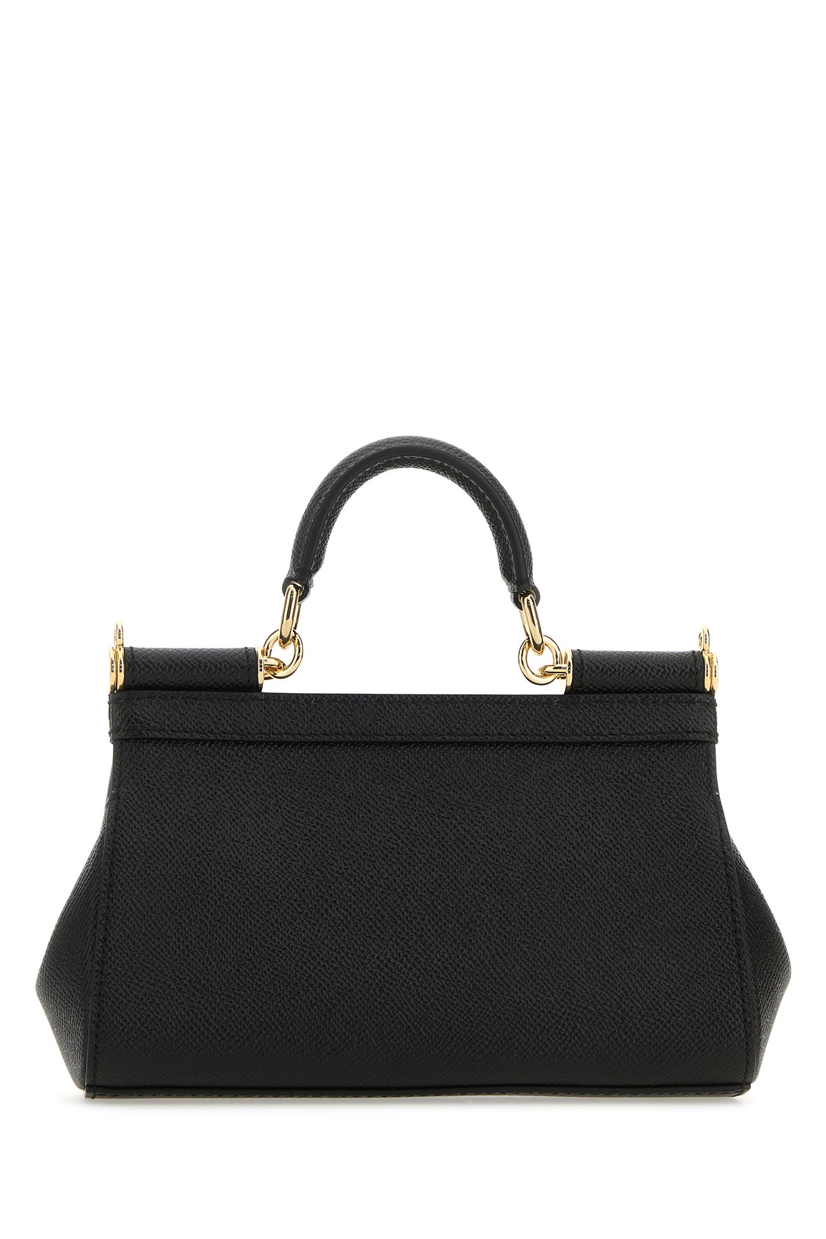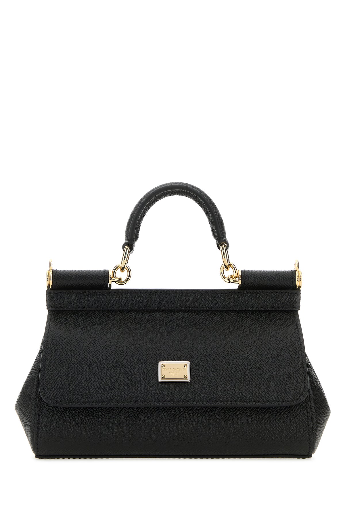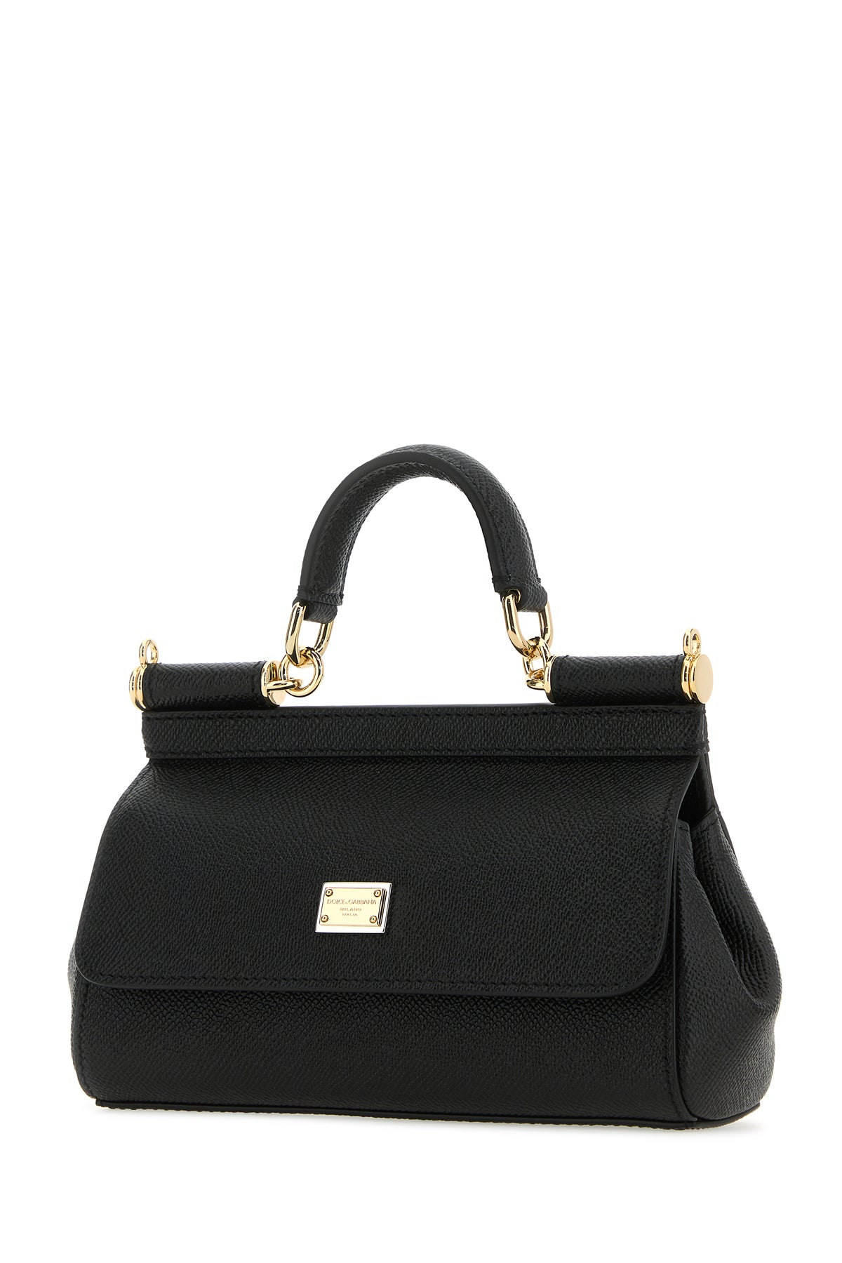 Handbag created grained calf leather enriched by metal logoed plate at the front.