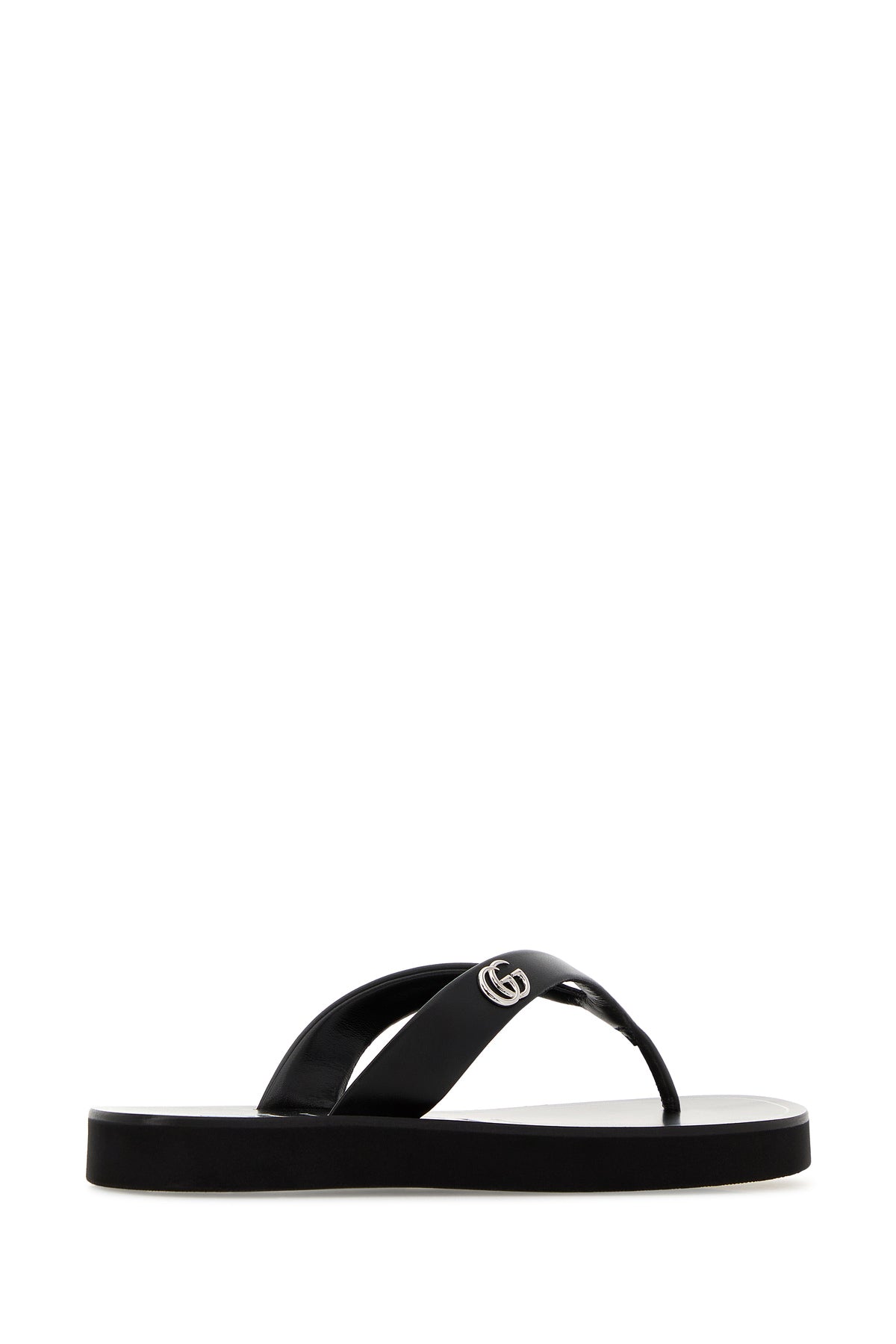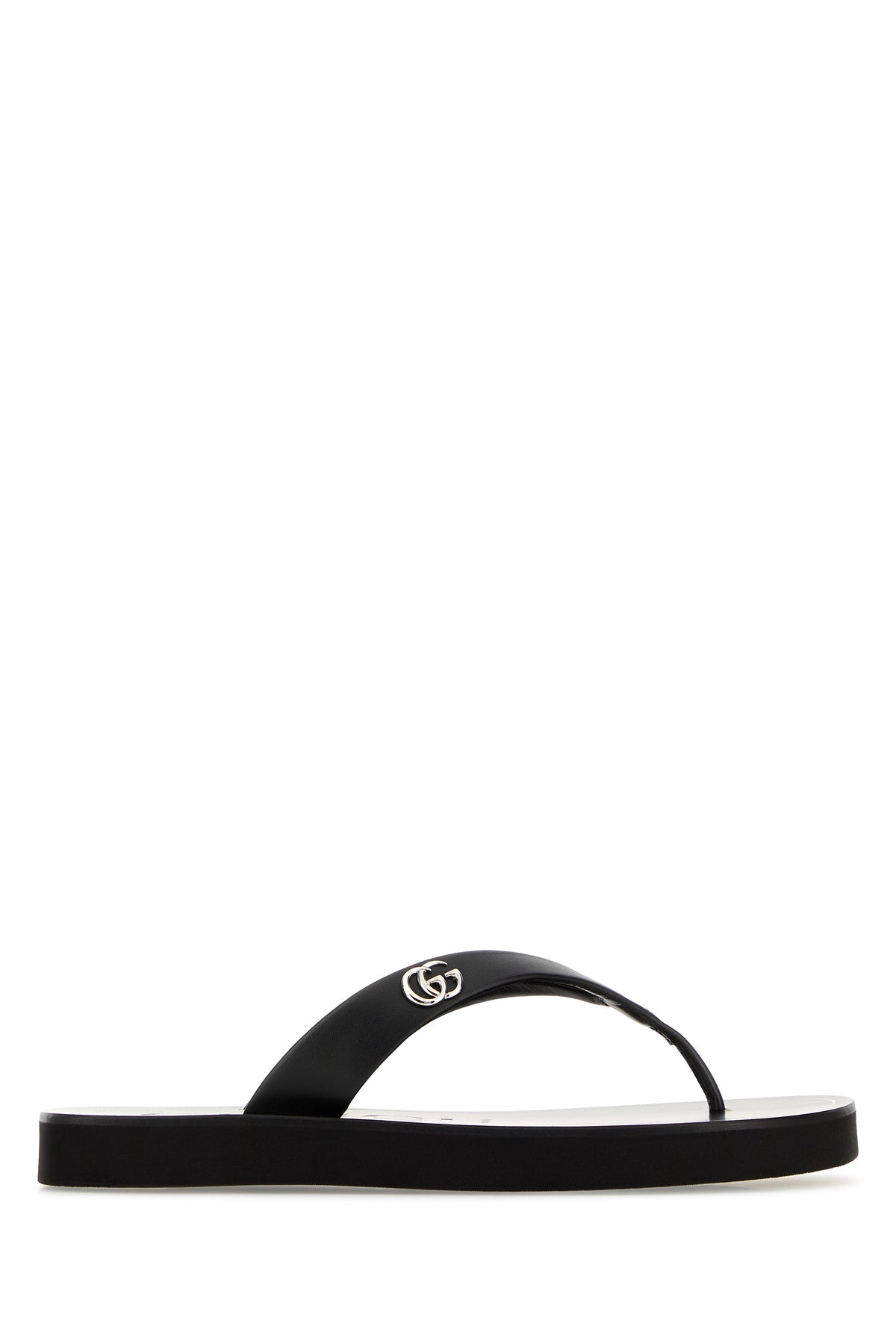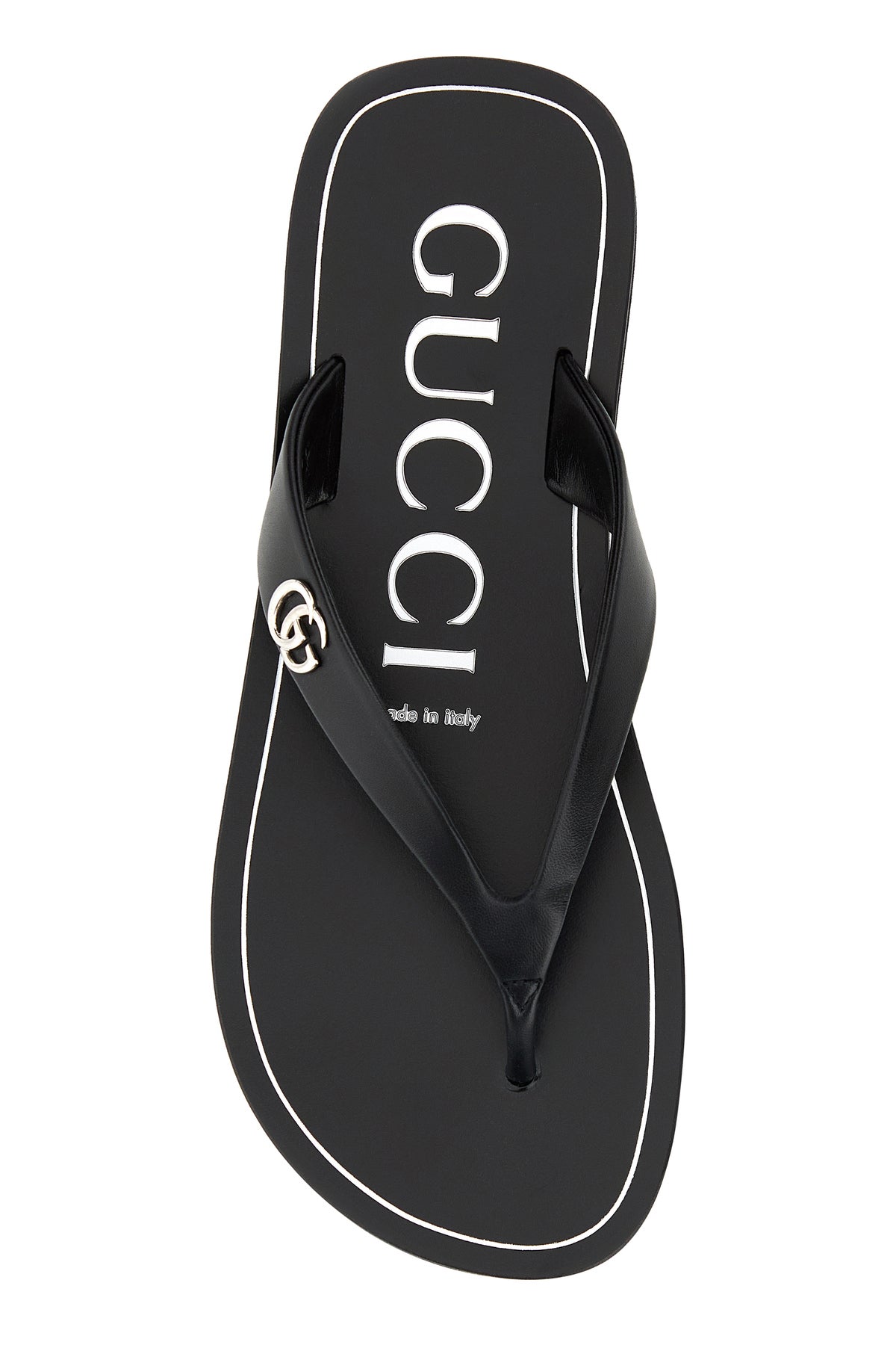 Thong slippers realized in leather enriched by metal GG detail on the instep.
