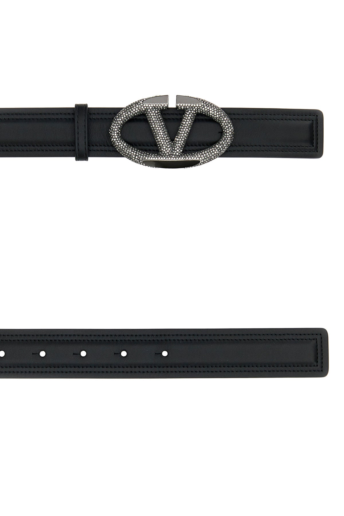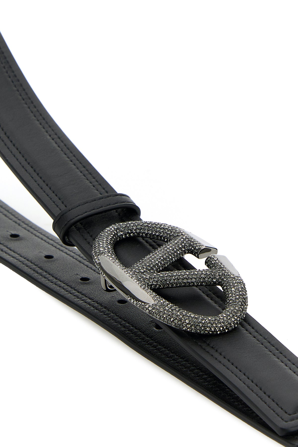 Belt realized in leather enriched by VLogo Signature buckle entirely covered by rhinestones.