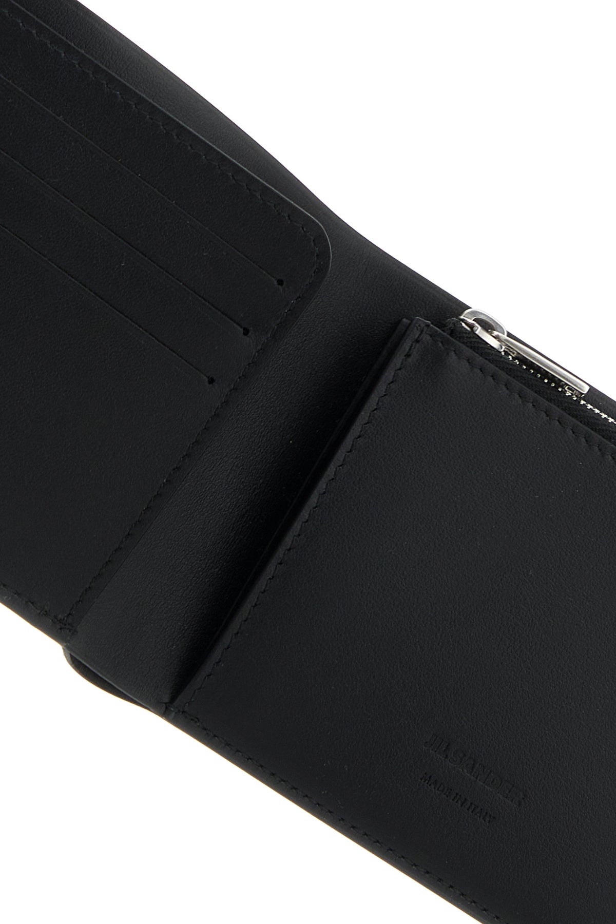 - Interior with a bill compartment, two slit pockets, a coin pocket and three credit card slots