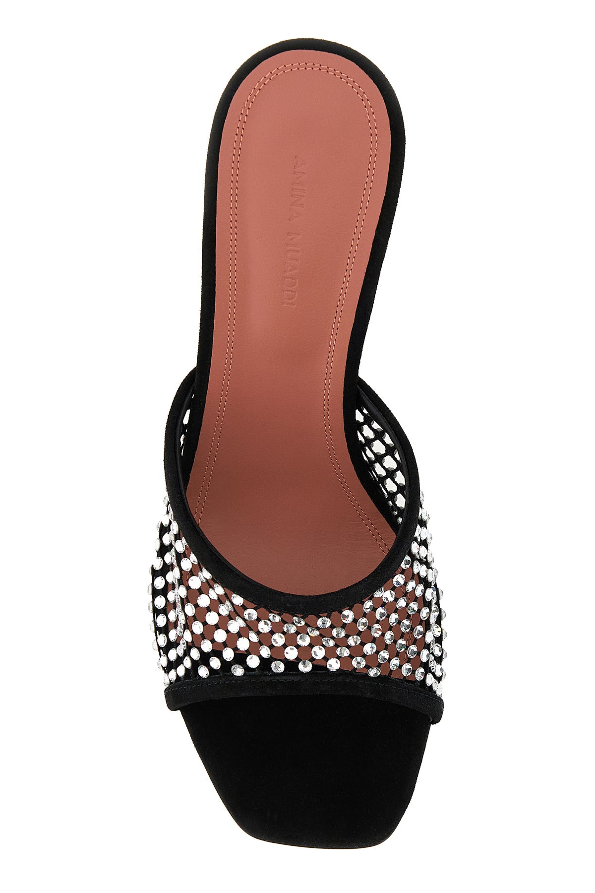 Mules realized in mesh entirely covered by rhinestones.