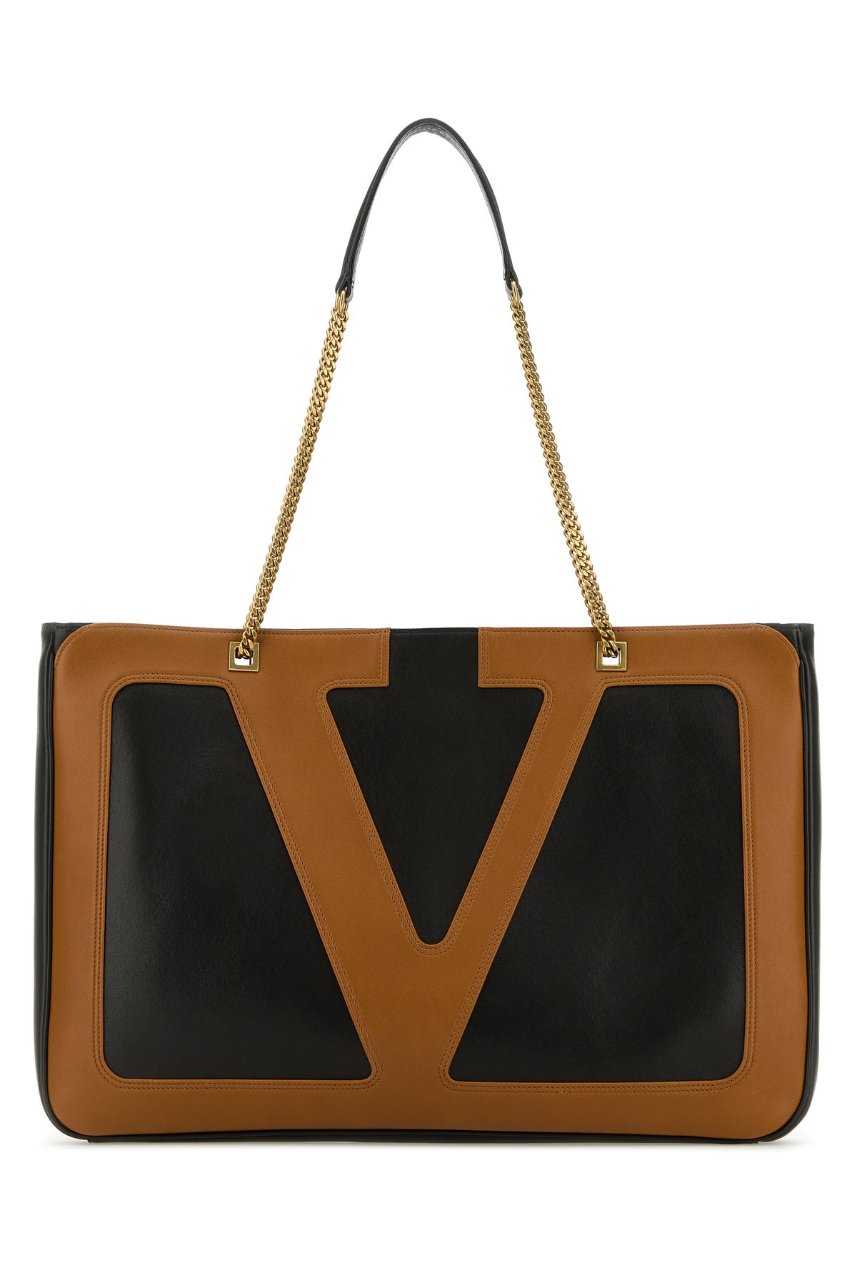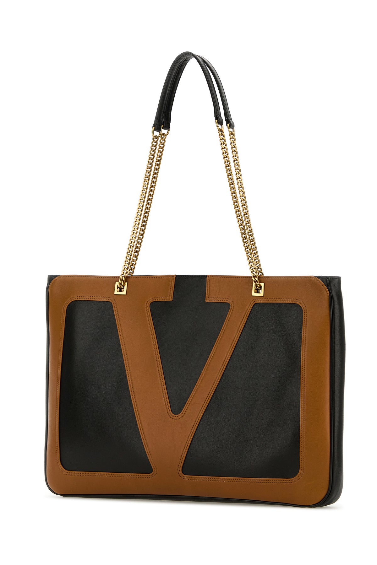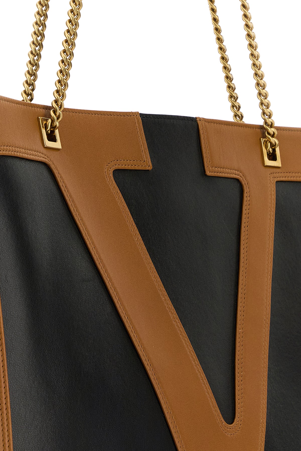 Shopping bag realized in slightly pebble nappa leather enriched by contrasting VLogo Signature patch at the front.