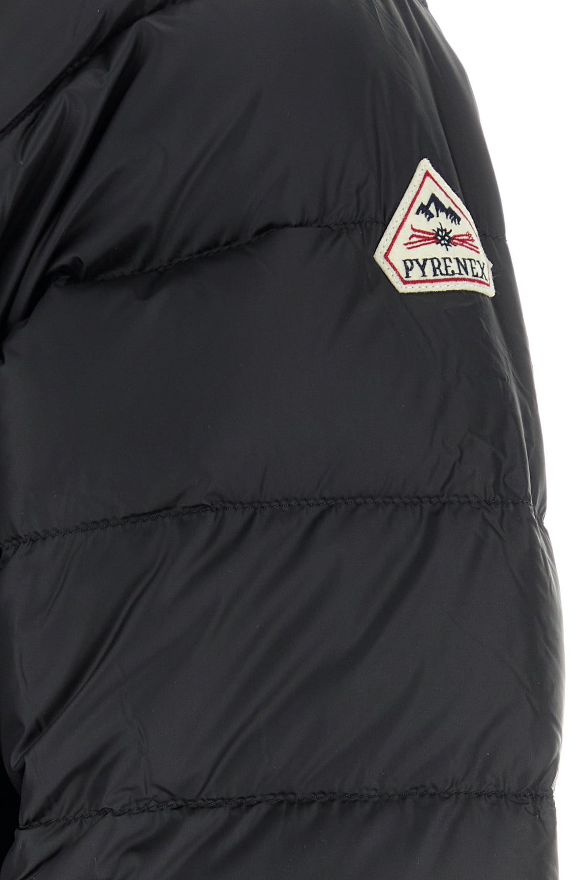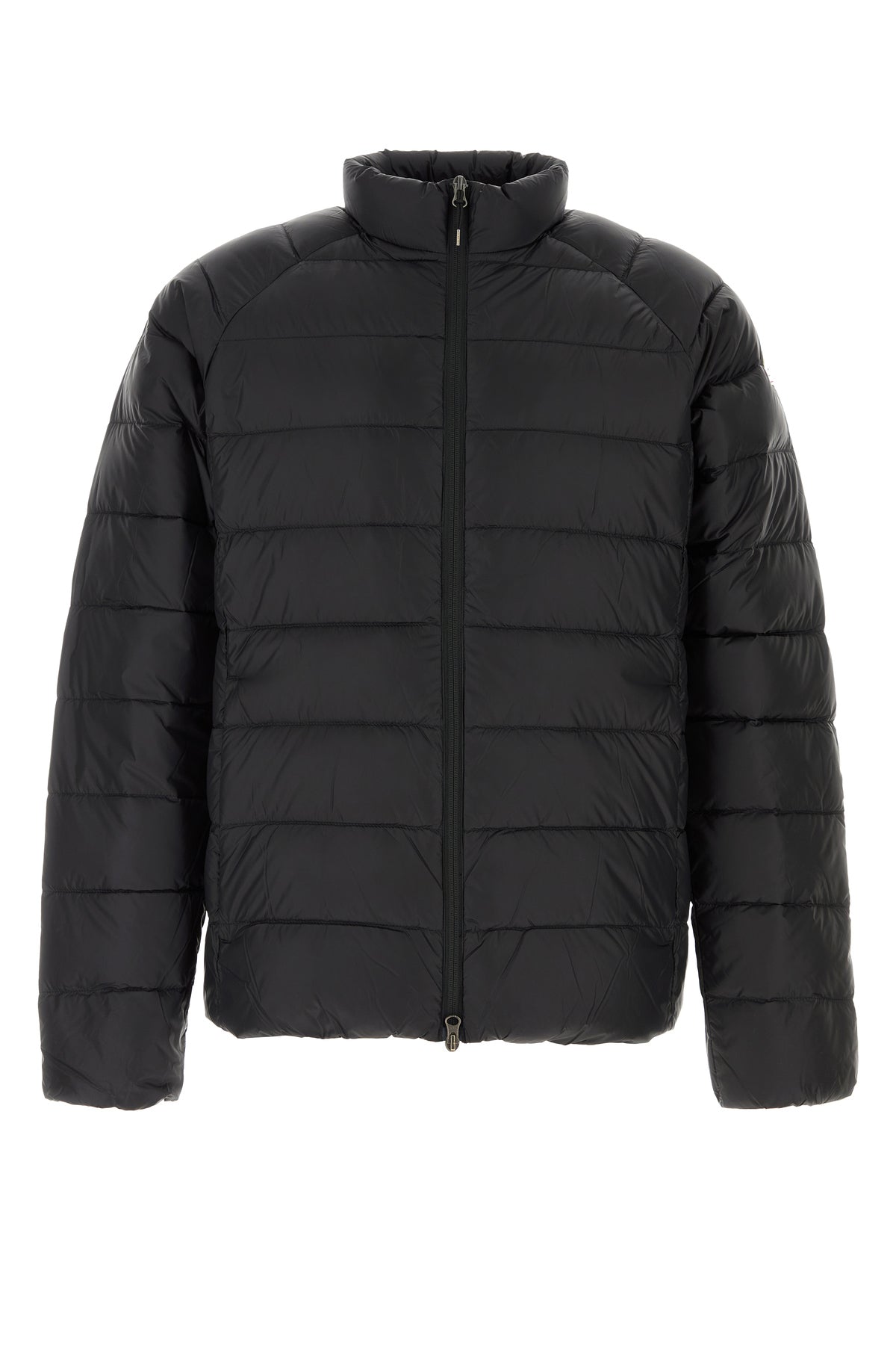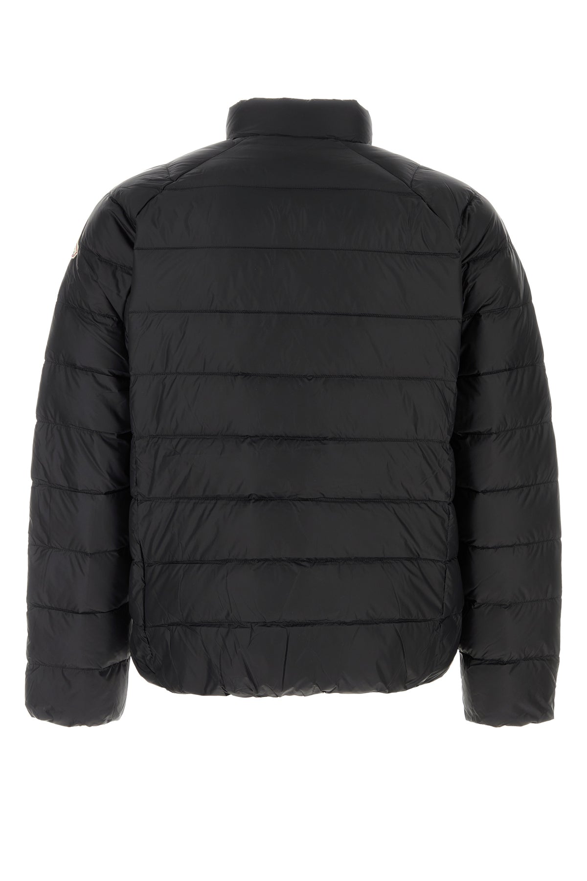 Down jacket realized in quilted nylon enriched by contrasting logoed patch on the sleeve.