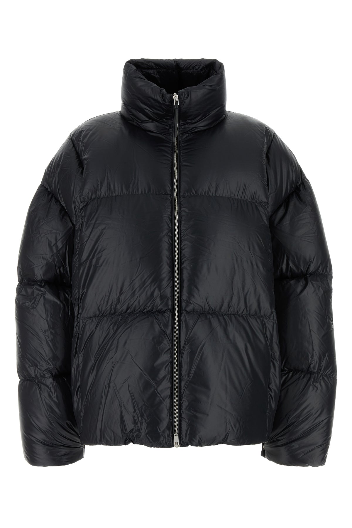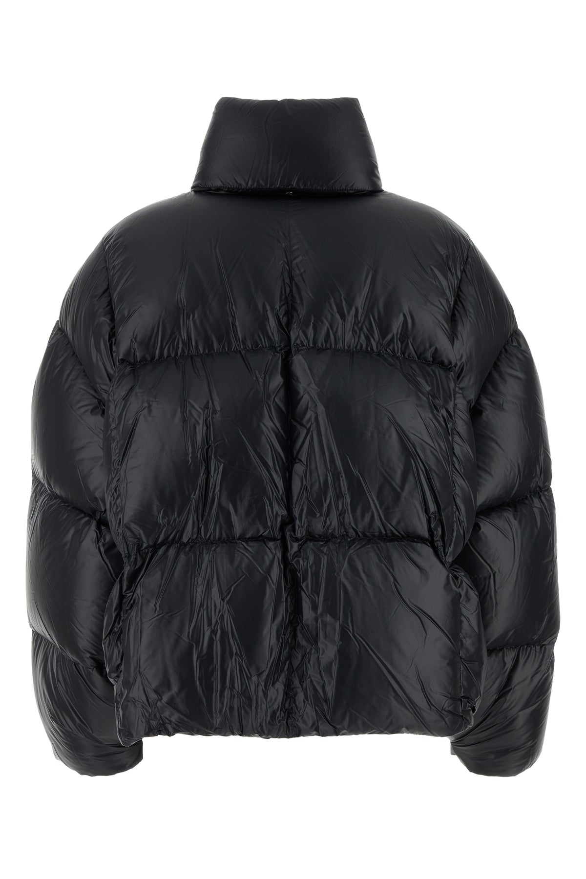 Down jacket realized in quilted nylon characterized by high collar.