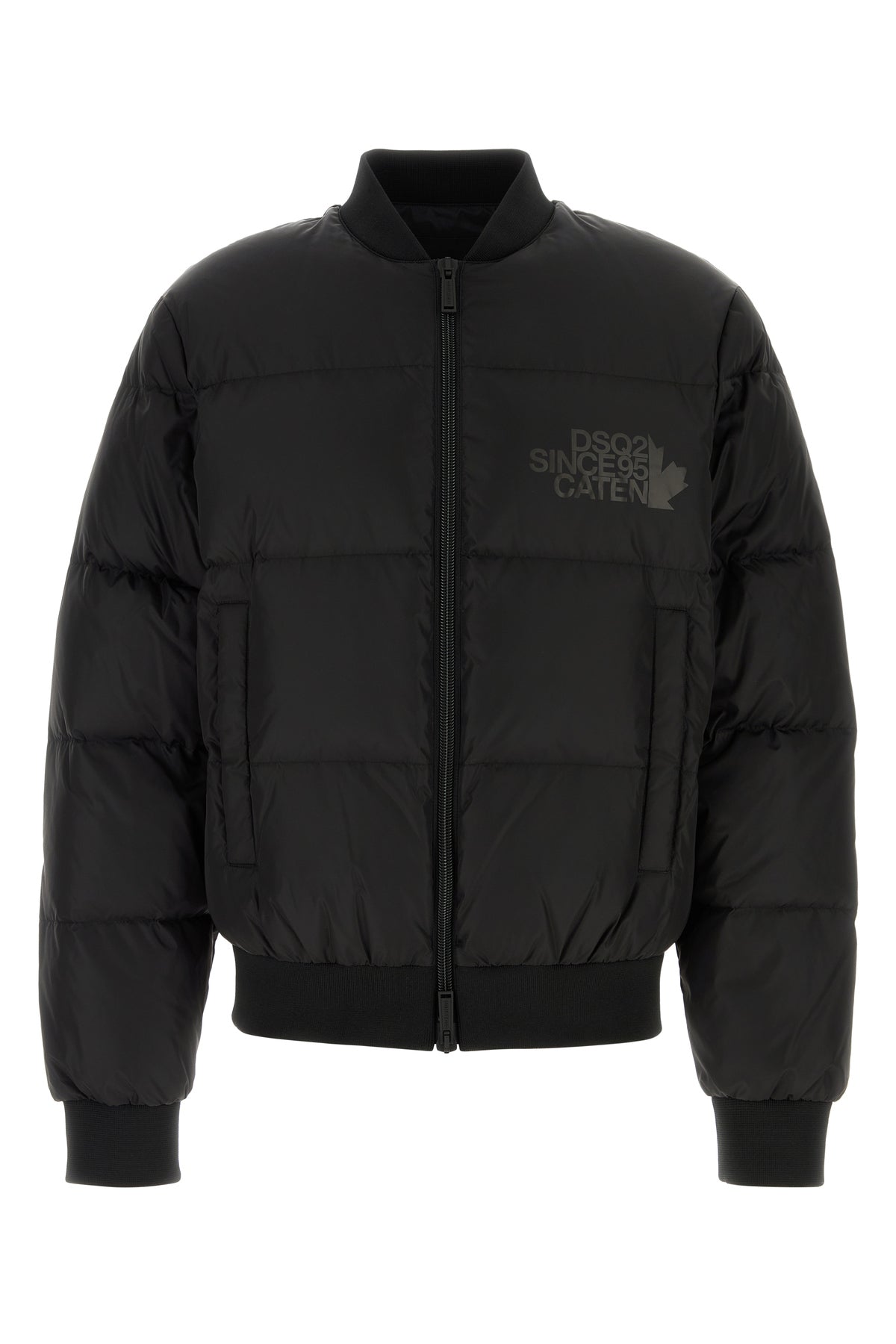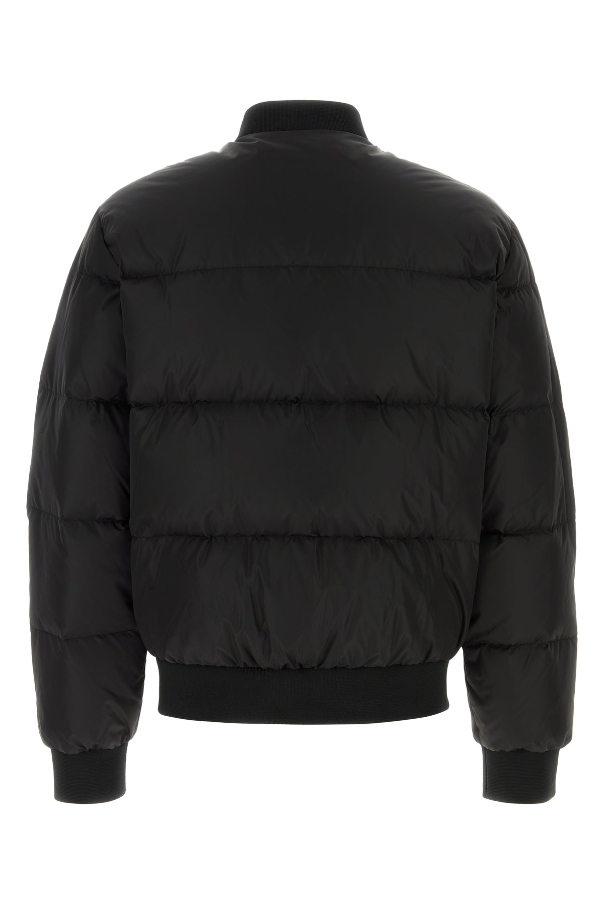 Down jacket realized in quilted nylon characterized by tonal printed logo on the chest.