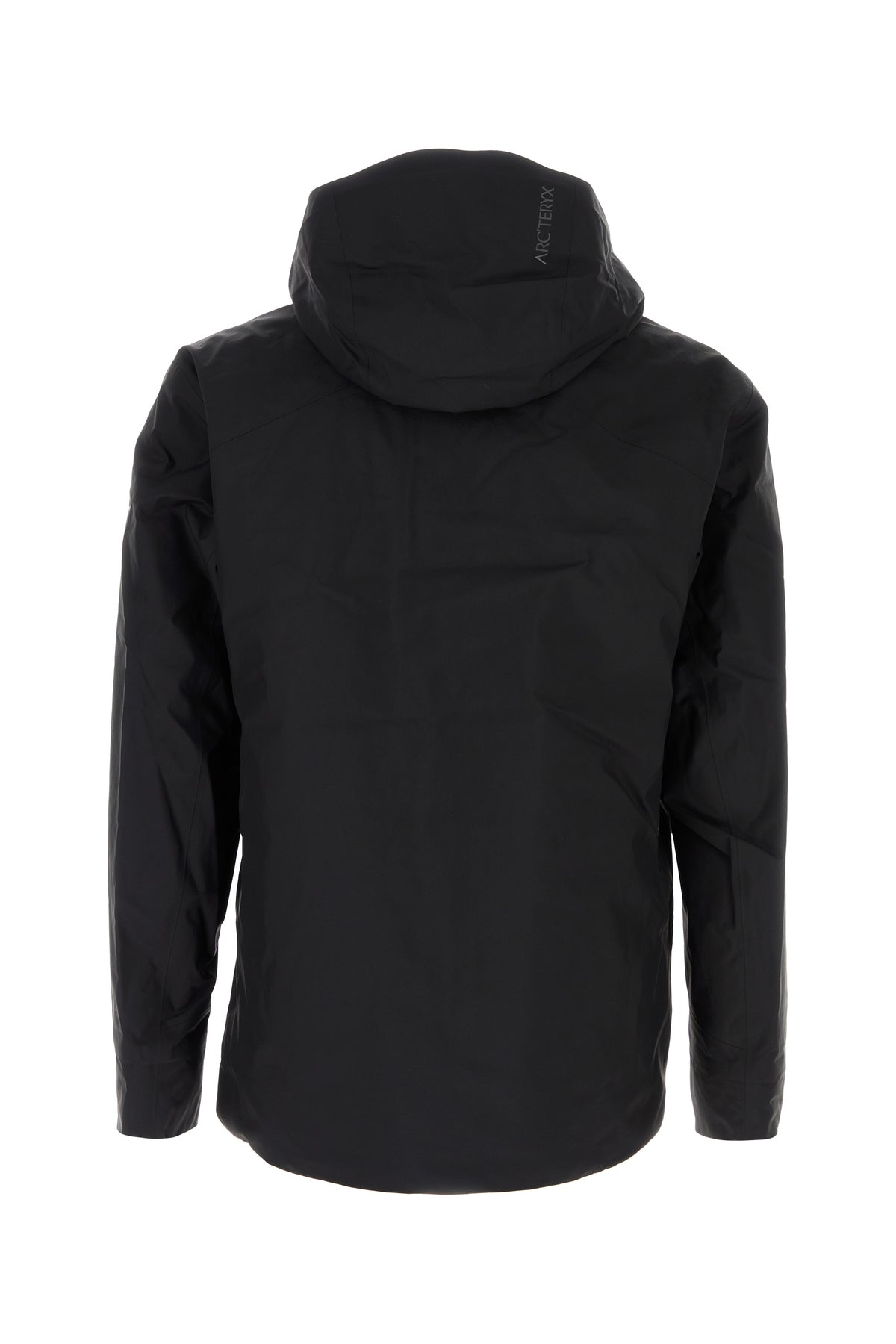 Jacket realized in nylon characterized by contrasting printed logo on the chest and on the hood.