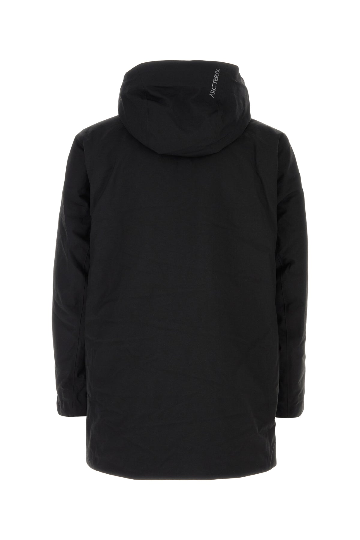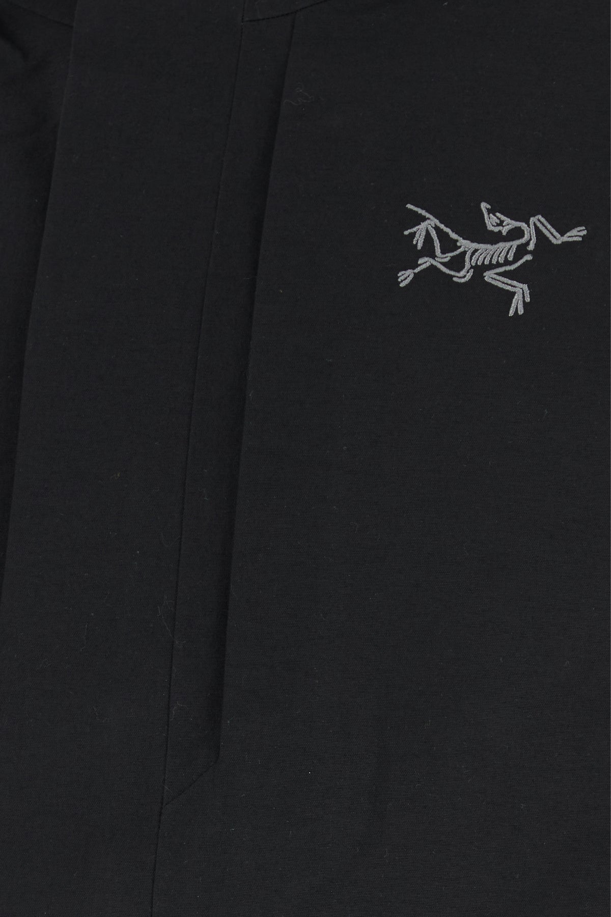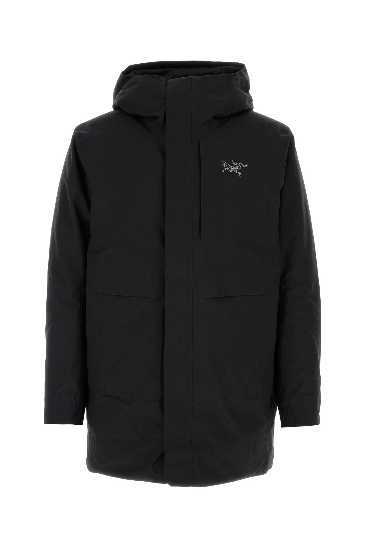 Down jacket realized in nylon characterized by contrasting embroidered logo on the chest.