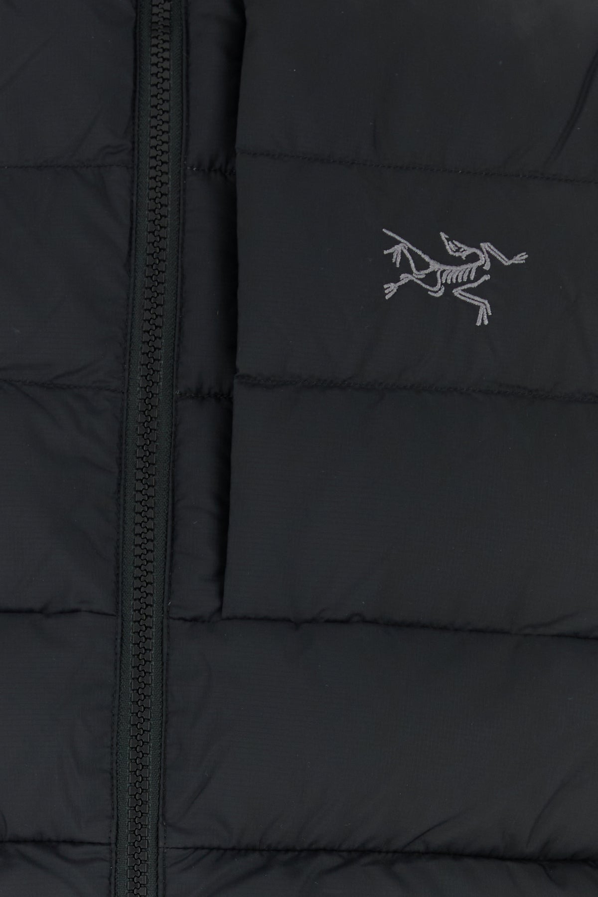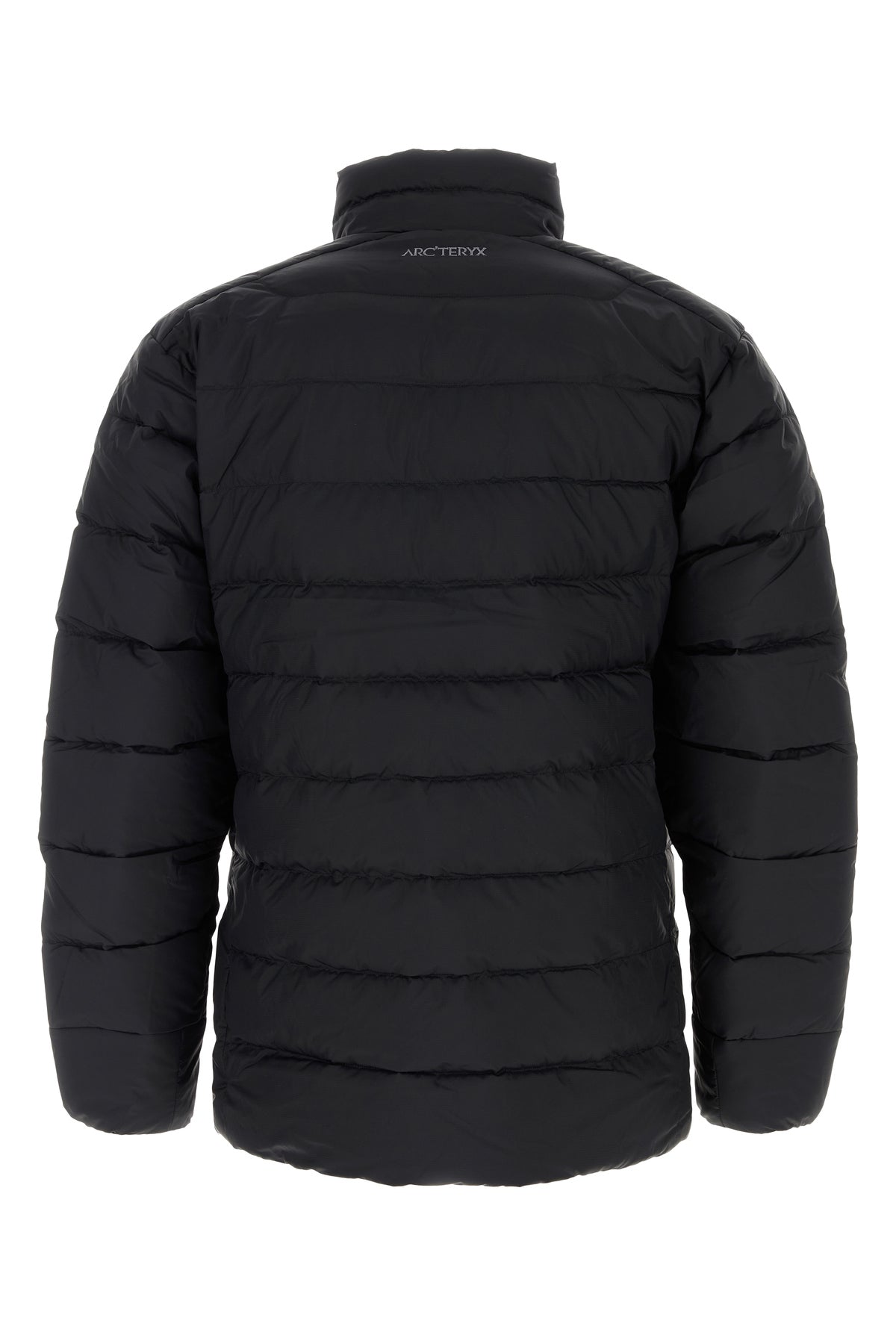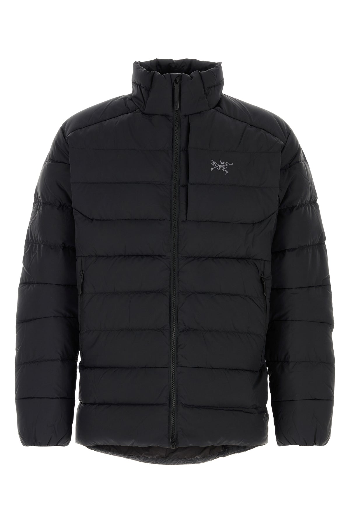 Down jacket realized in quilted nylon characterized by contrasting embroidered logo on the chest and at the back.