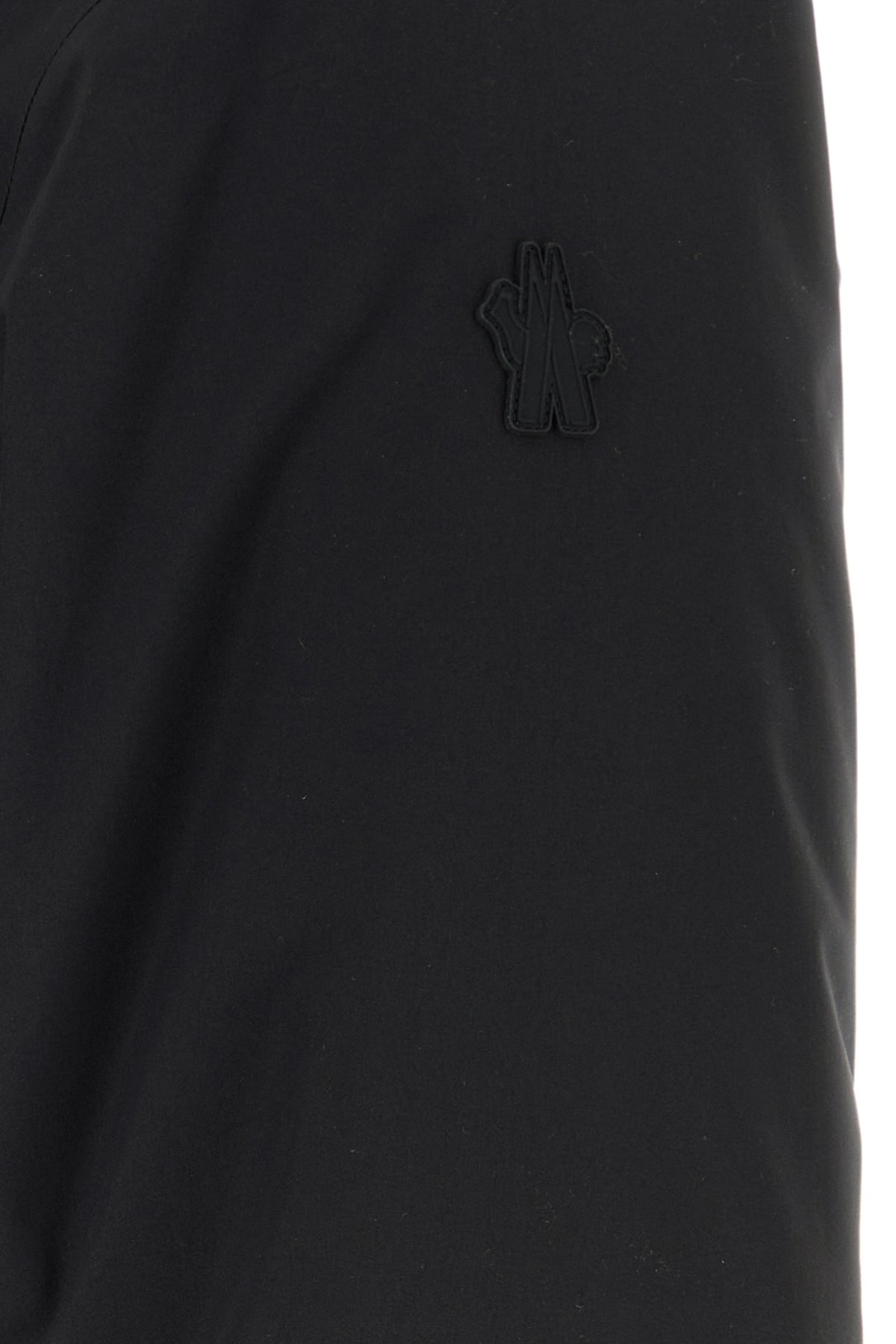Down jacket realized in polyester enriched by tonal logoed patch on the sleeve.