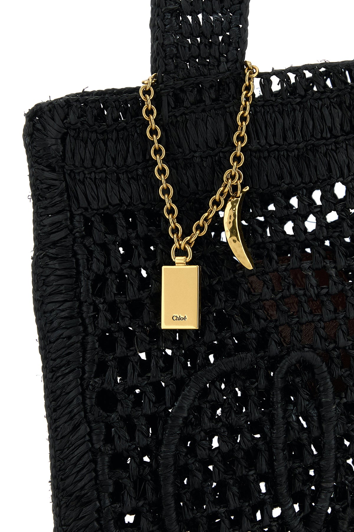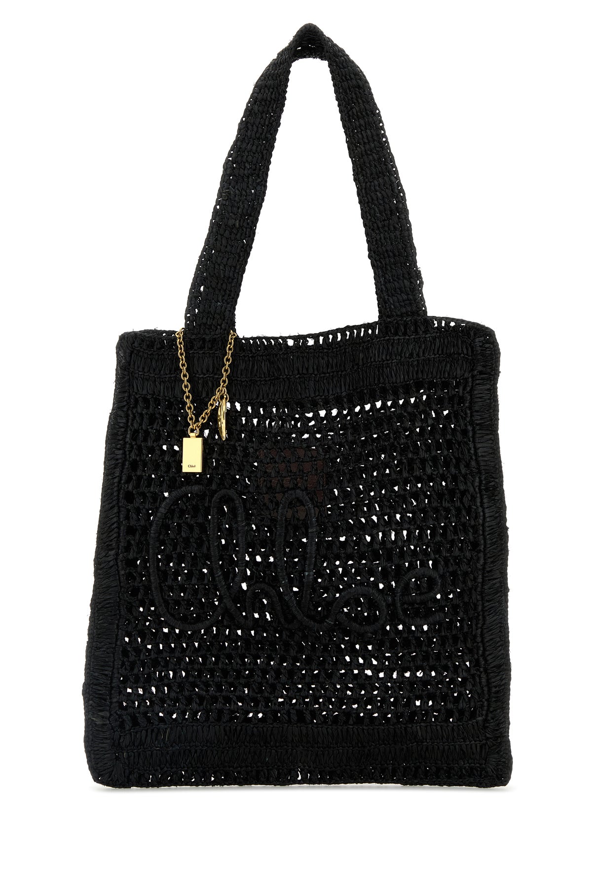 Shopping bag realized in raffia characterized by tonal embroidered logo at the front.