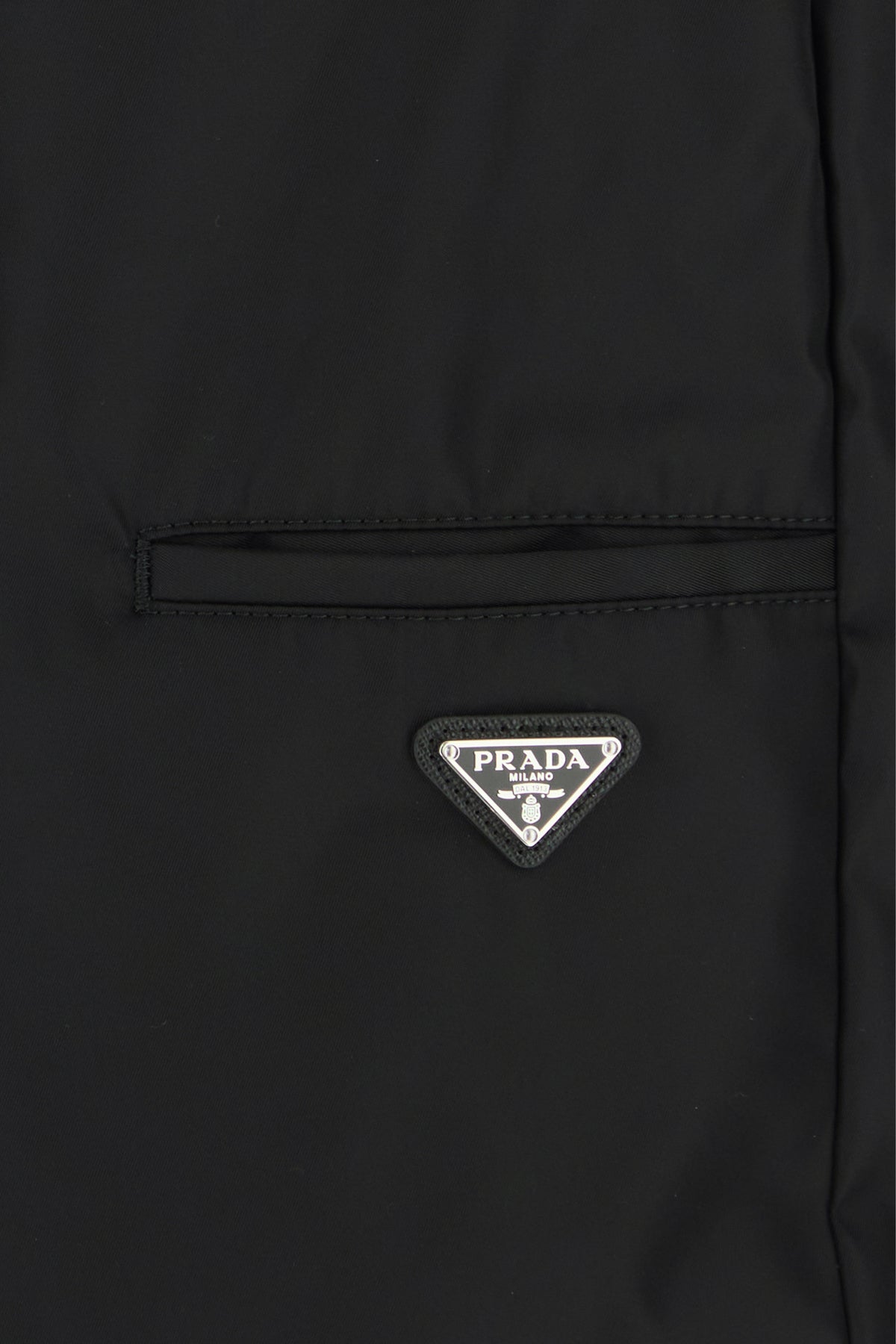 Bermuda shorts realized in Re-Nylon enriched by iconic logoed metal triangle on the side.