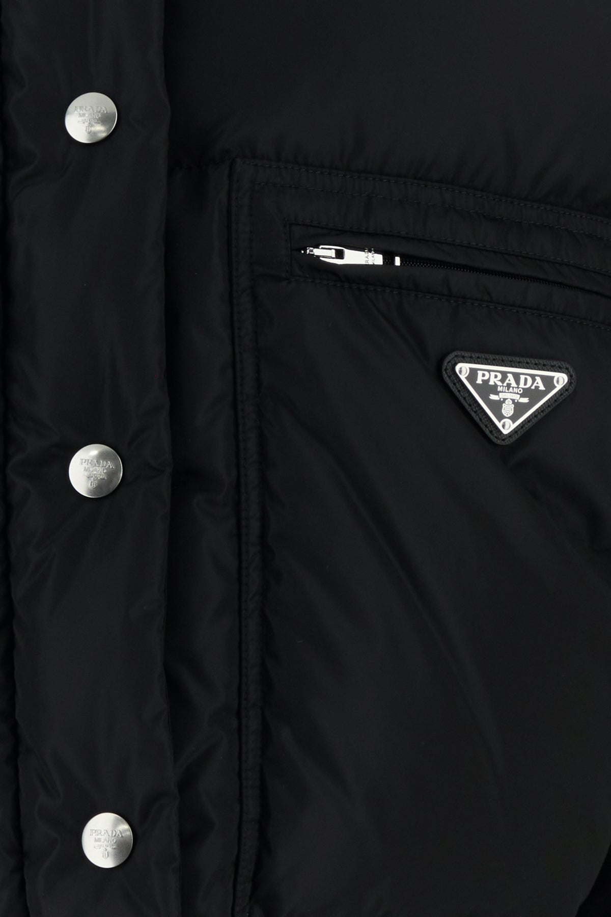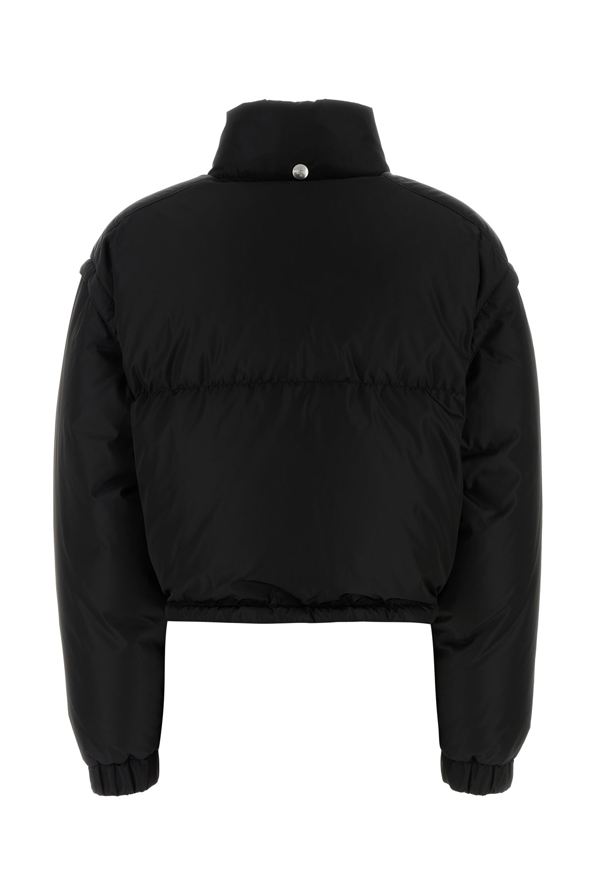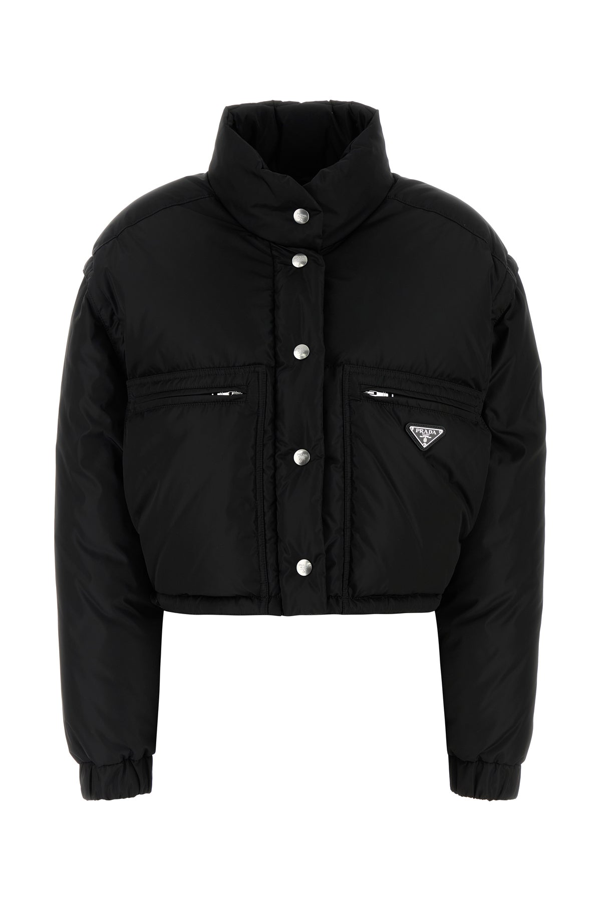 Cropped-cut down jacket realized in Re-Nylon enriched by metal iconic logoed triangle at the front.