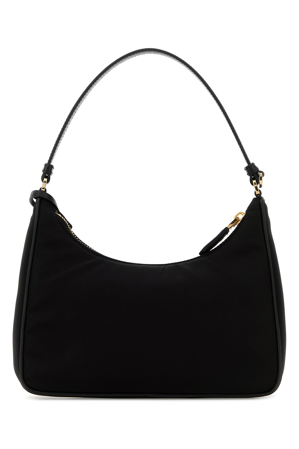 Shoulder bag realized in Re-Nylon with Saffiano leather trimmings enriched by iconic logoed metal triangle at the front.