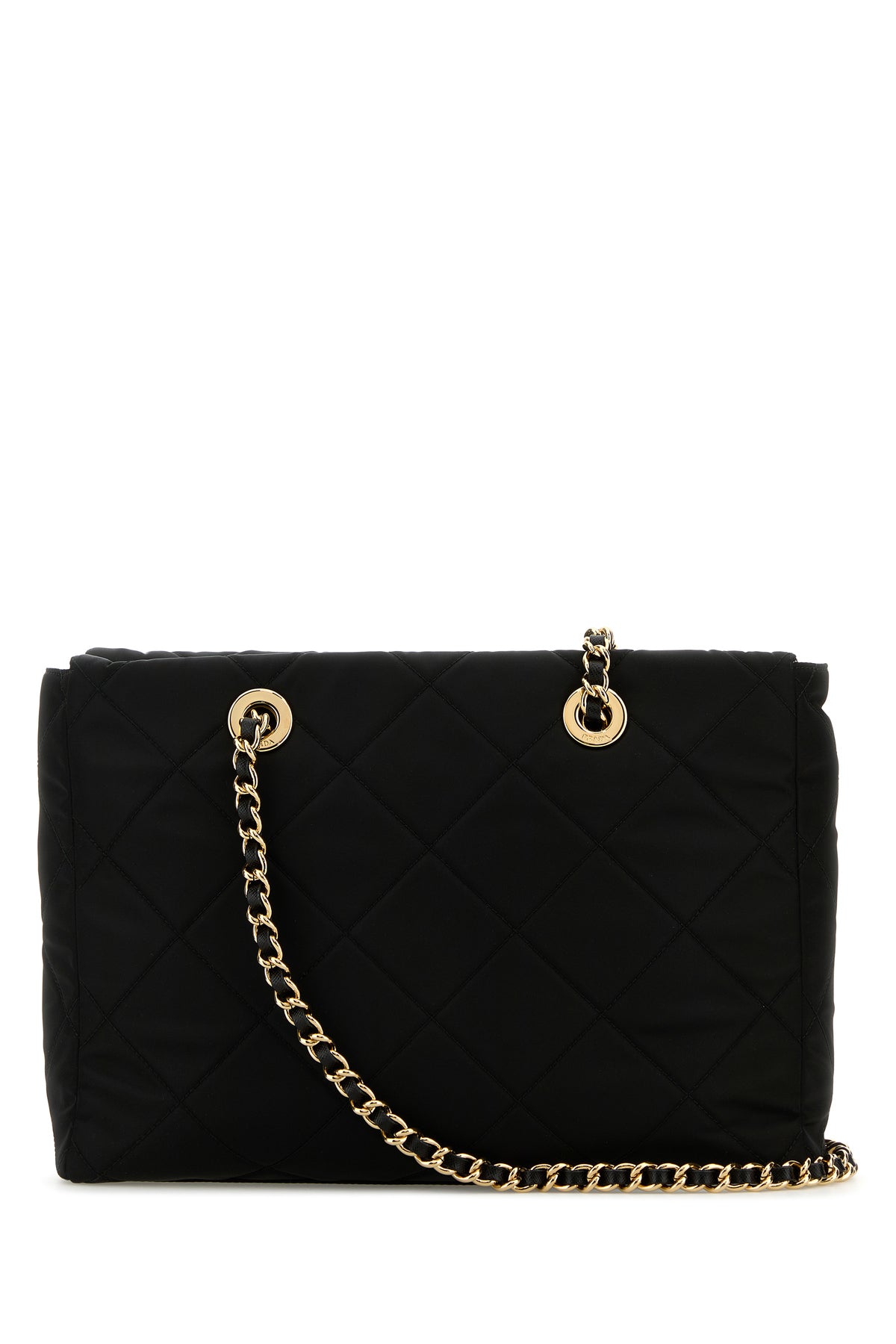 Shoulder bag realized in quilted Re-Nylon enriched by iconic metal logoed triangle at the front and detachable tonal leather and metal keyring accessory.