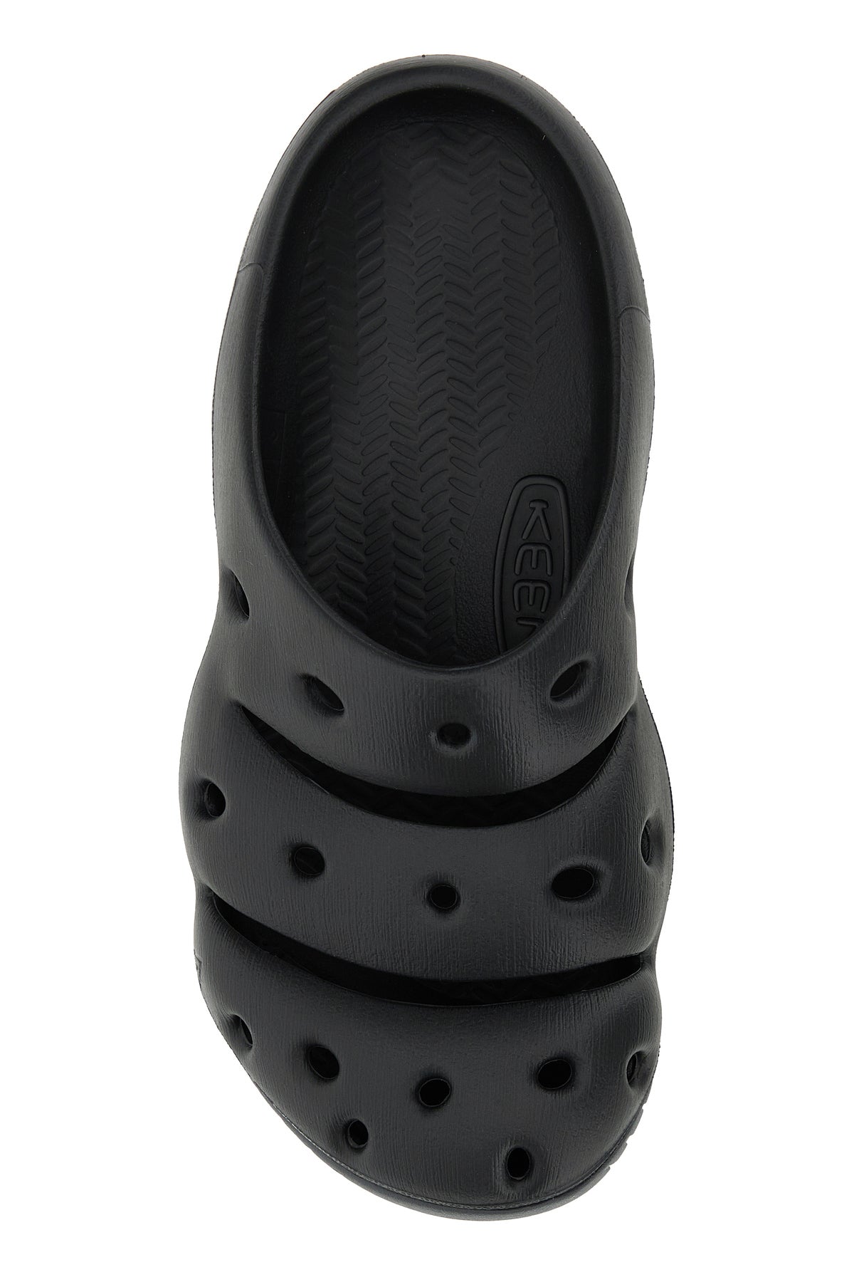 Slippers realized in rubber characterized by contrasting printed logo on the side.