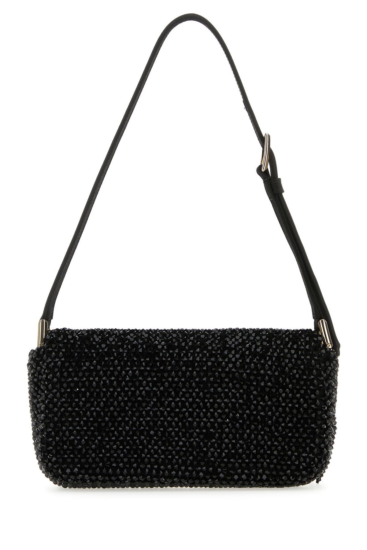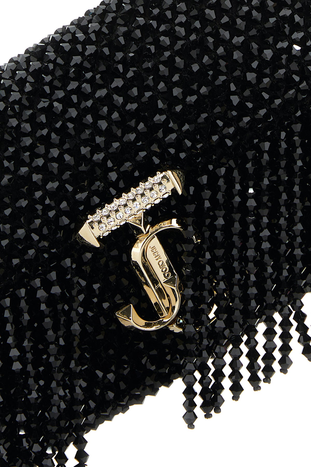 Shoulder bag realized in satin entirely covered by rhinestones enriched by fringes and jewel JC detail at the front.