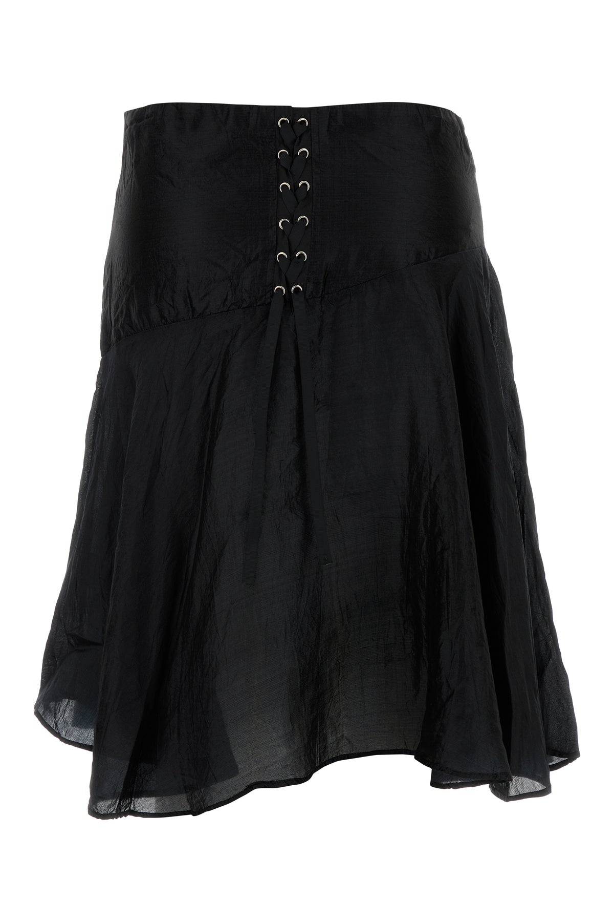 Flared skirt realized in pure silk enriched by decorative laces at the back.