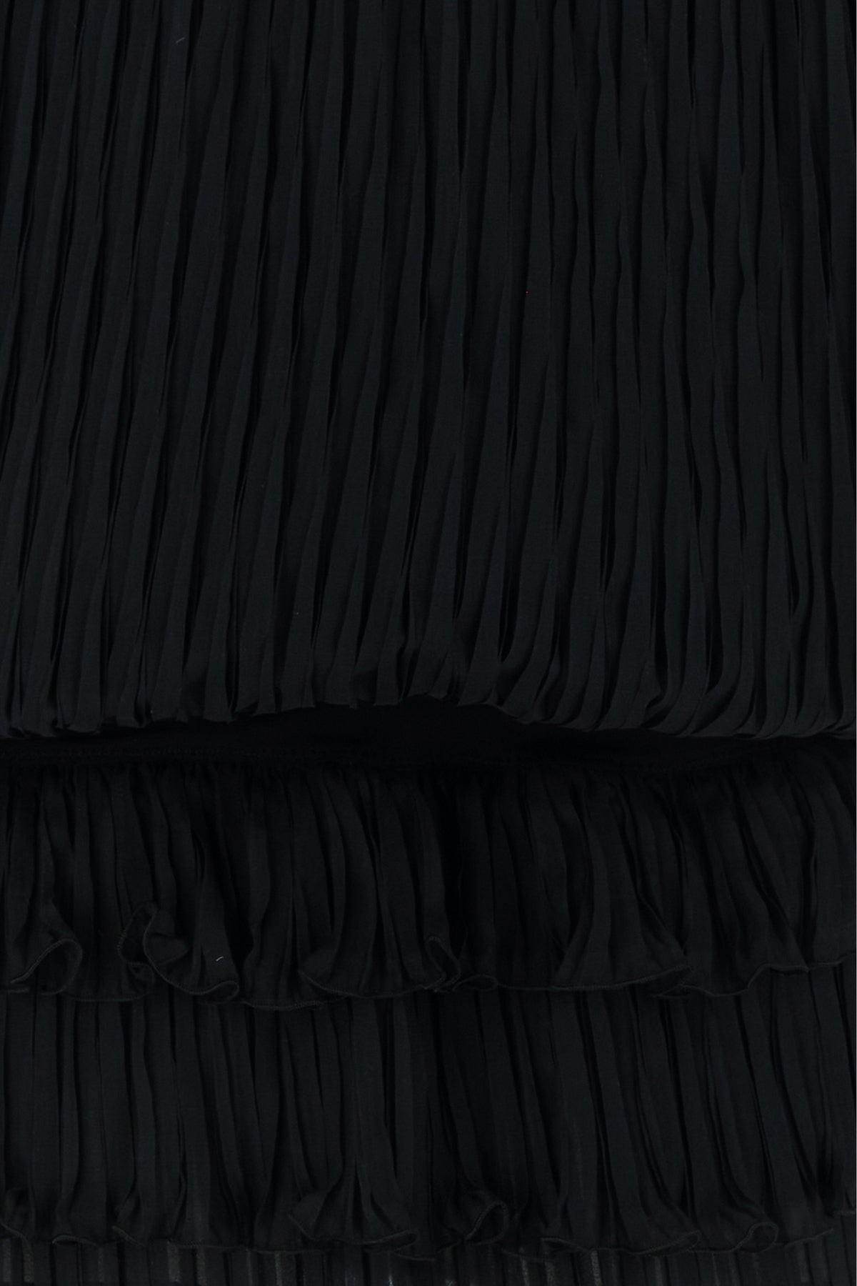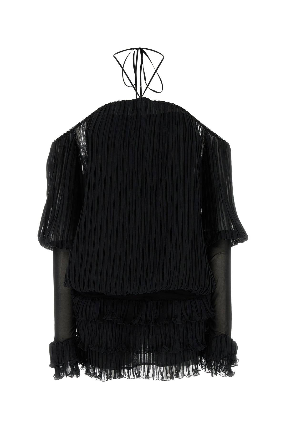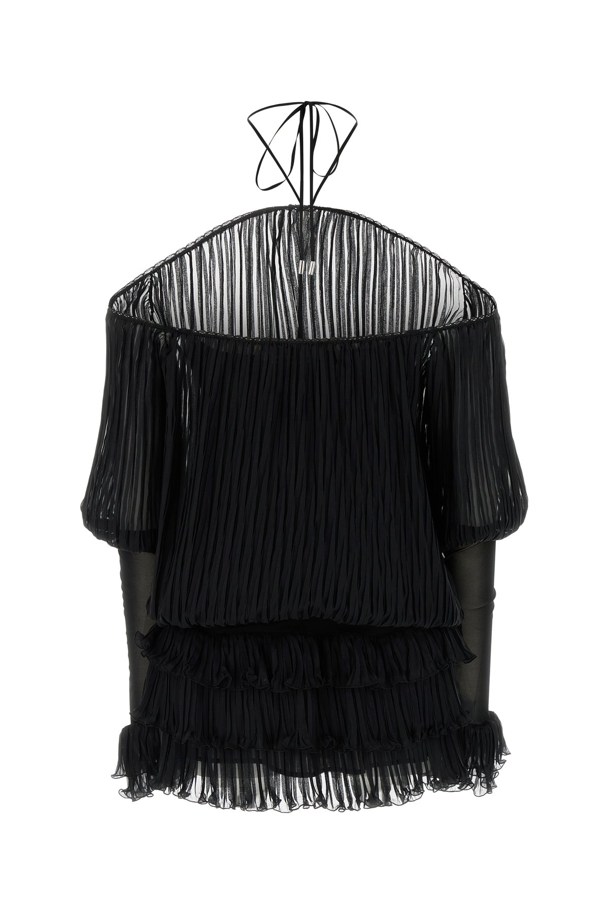 Mini dress realized in pleated pure silk characterized by peculiar neckline.