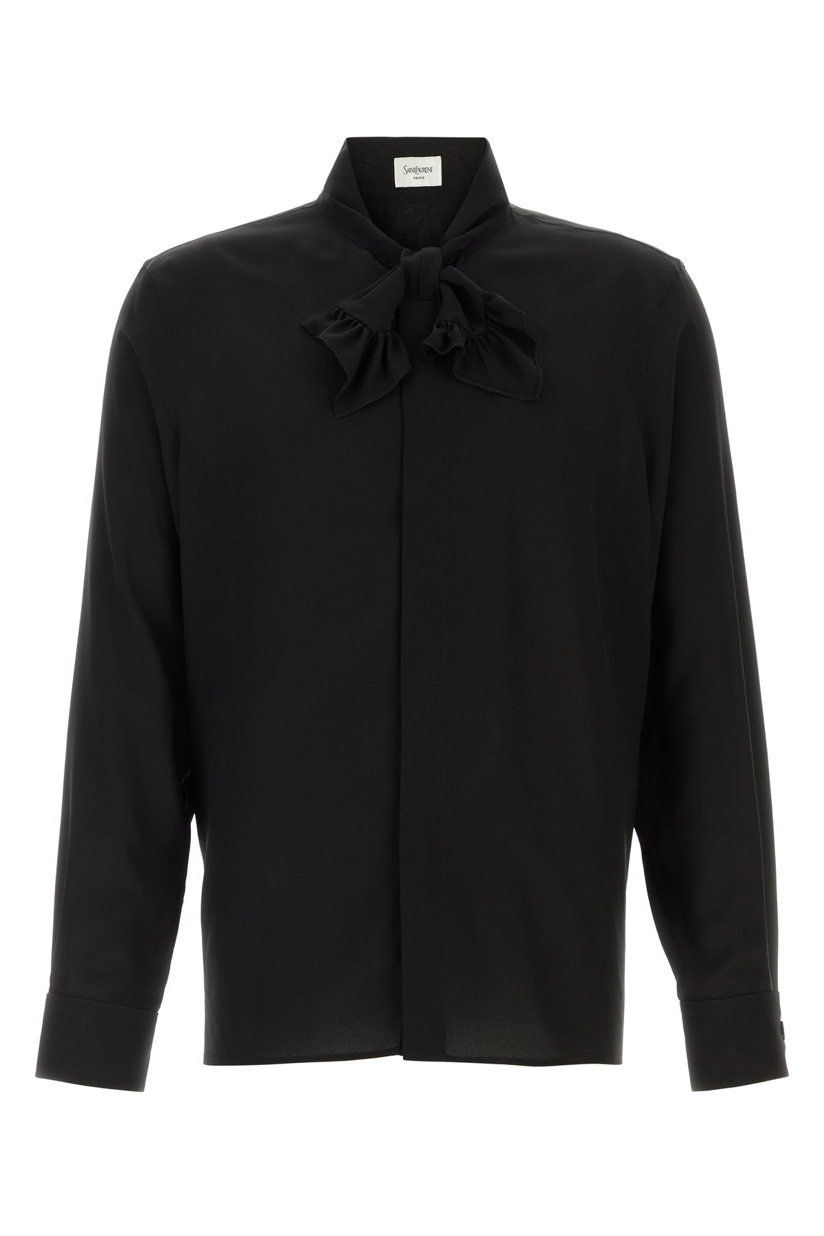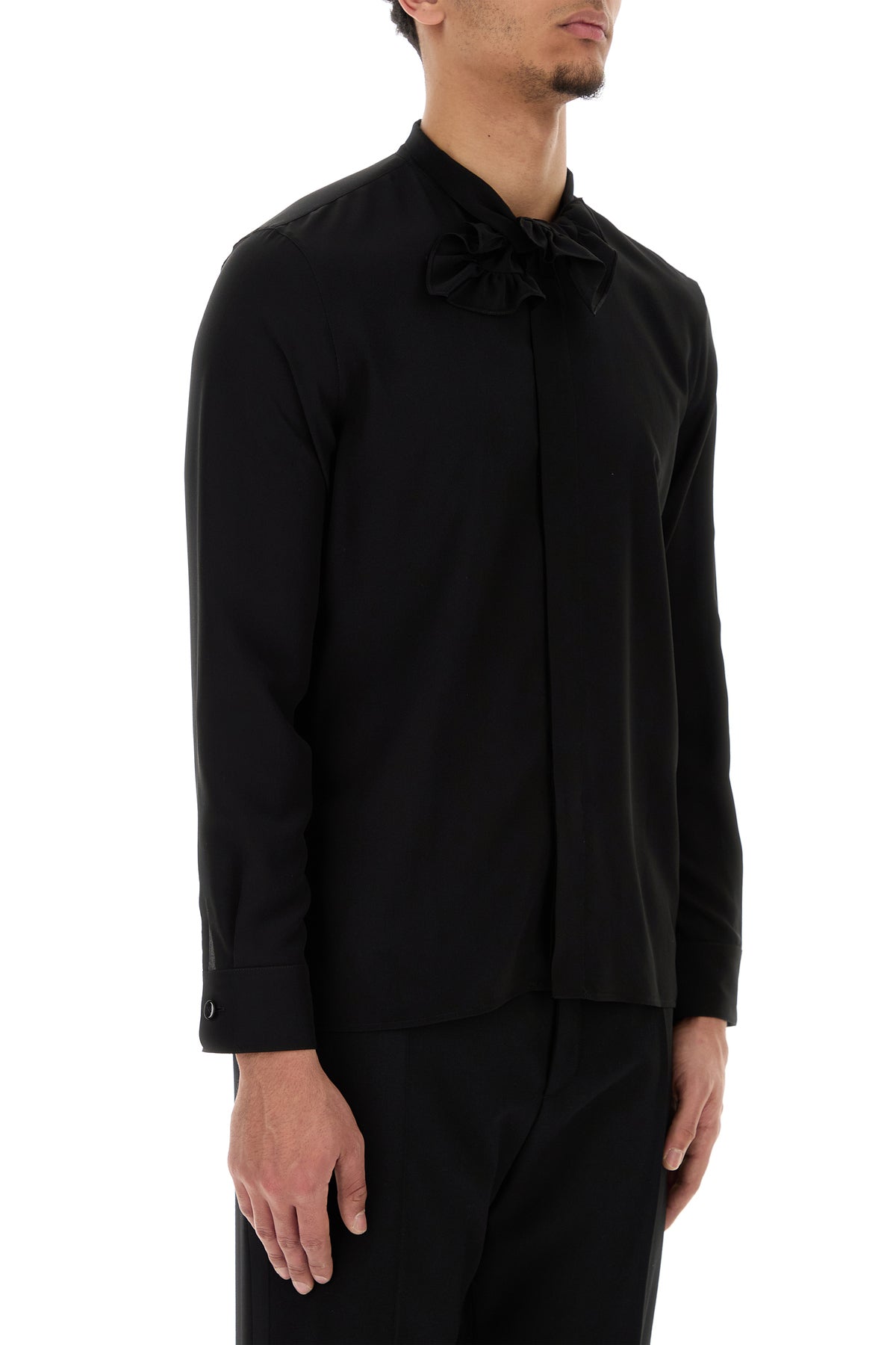 Shirt realized in pure silk characterized by scarf collar with ruffles.