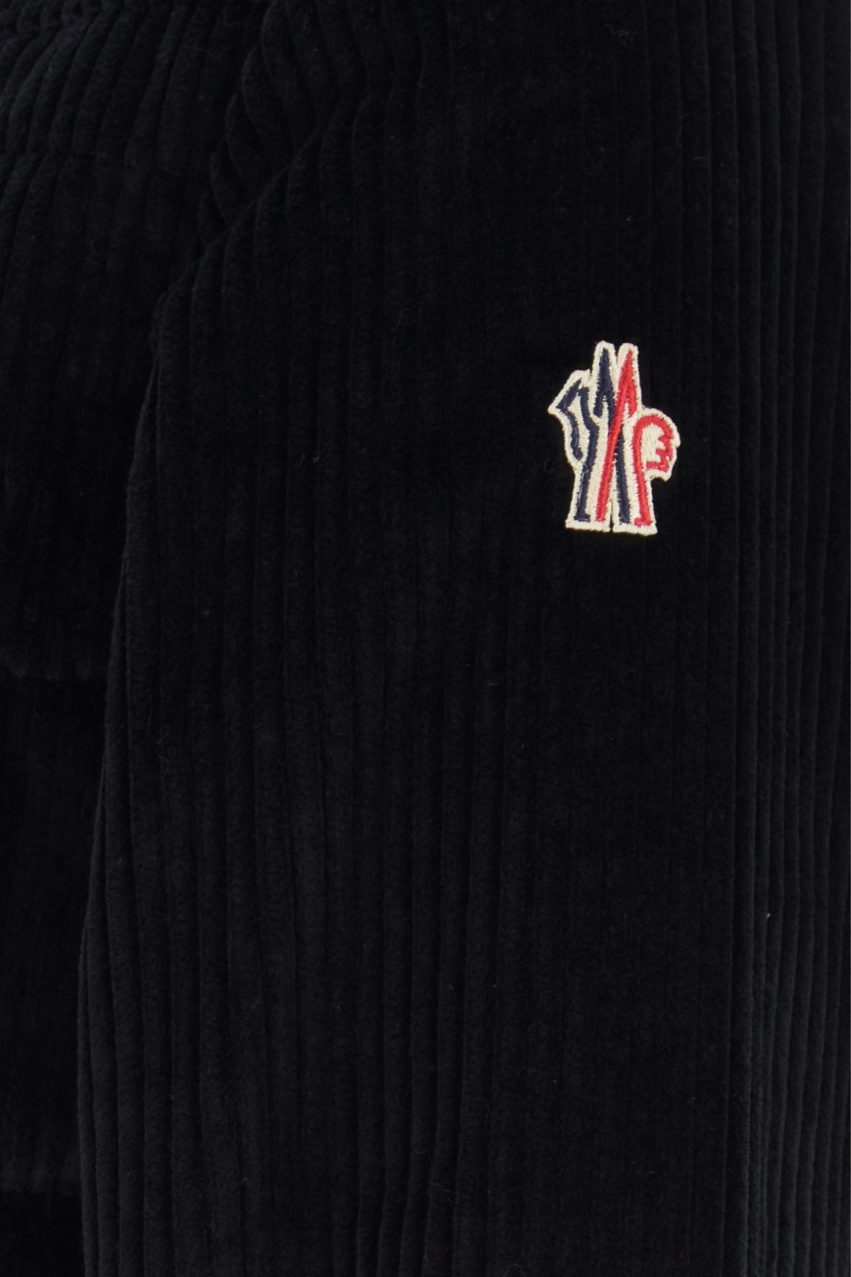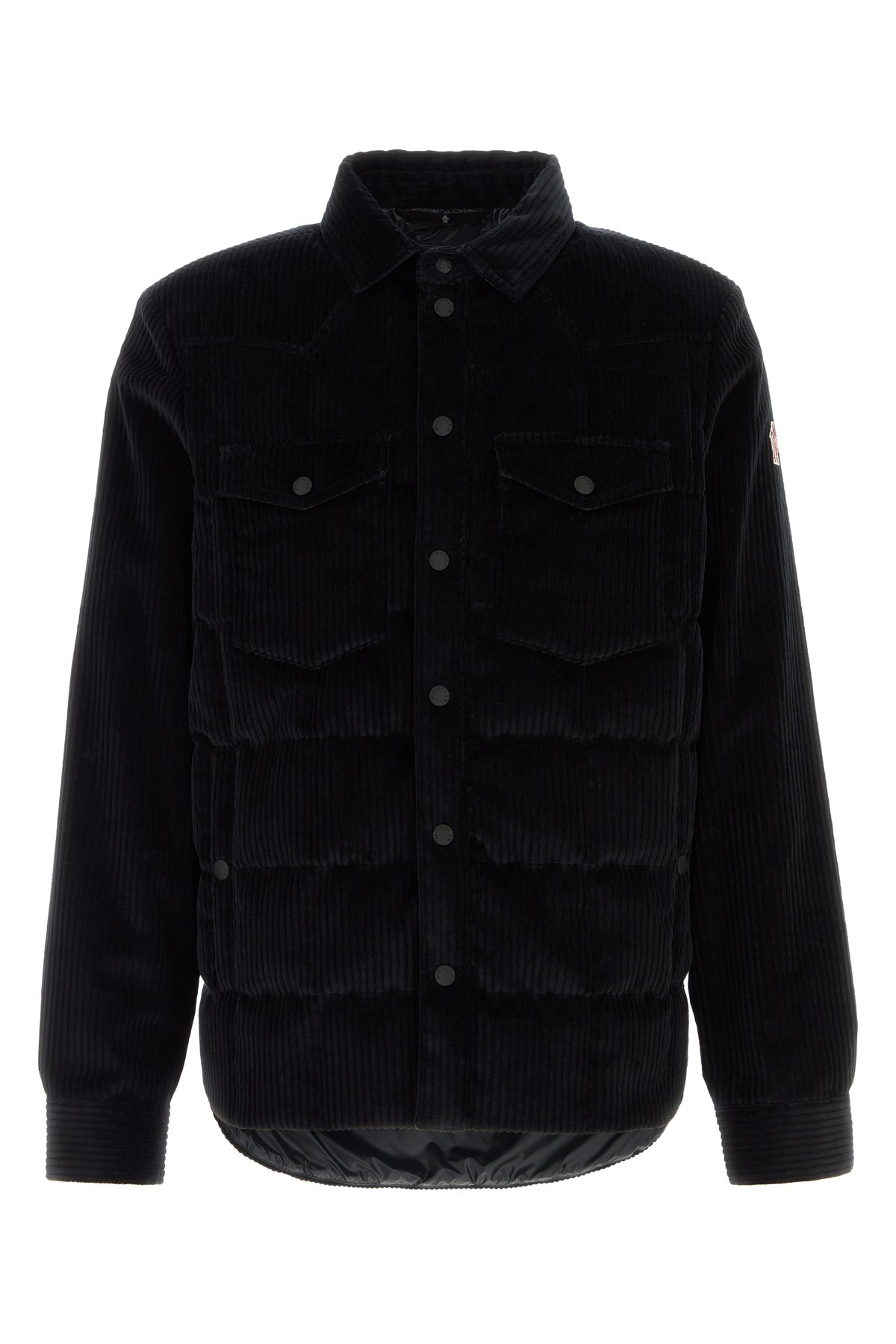 Down jacket realized in stretch cotton corduroy enriched by logoed patch on the sleeve.