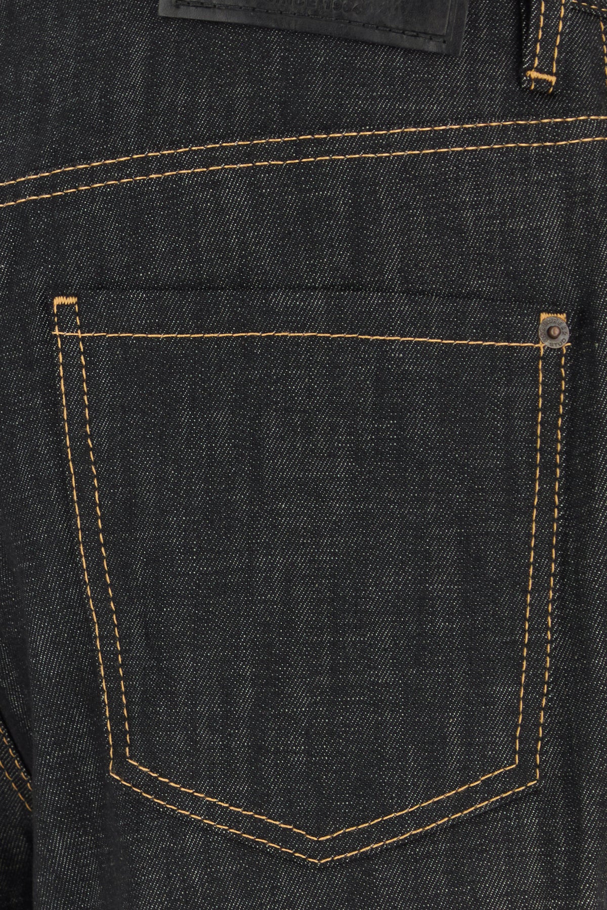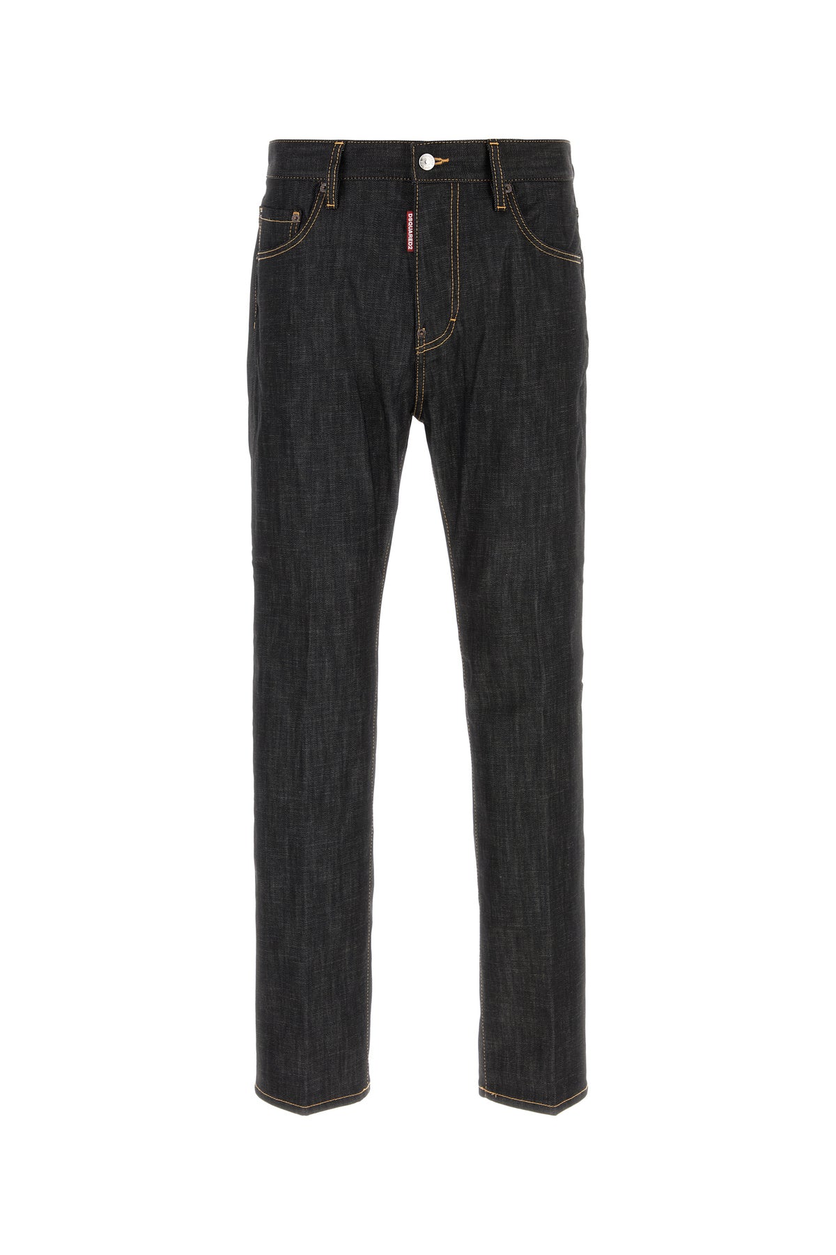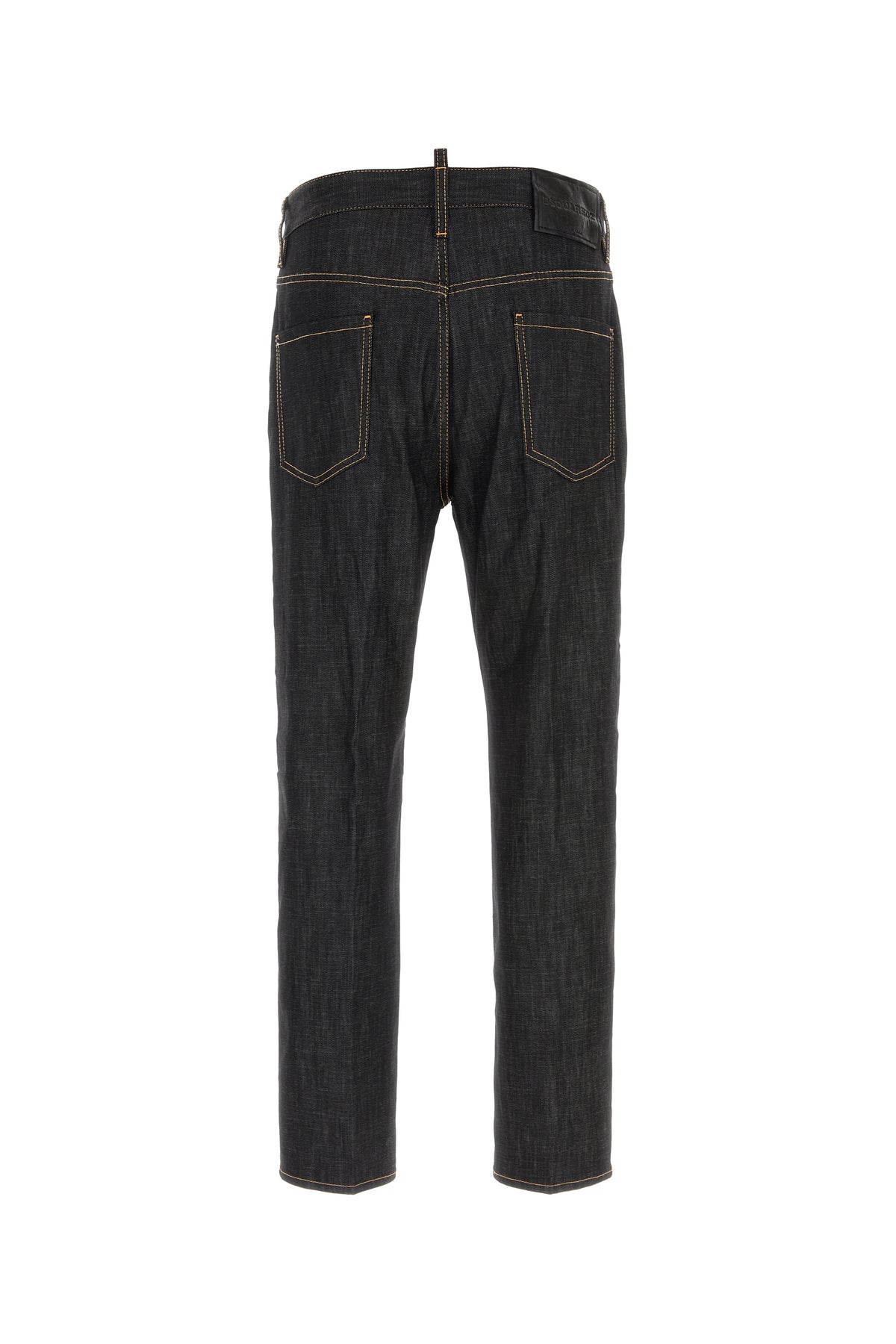 Jeans realized in stretch cotton denim enriched by tonal logoed label at the back.