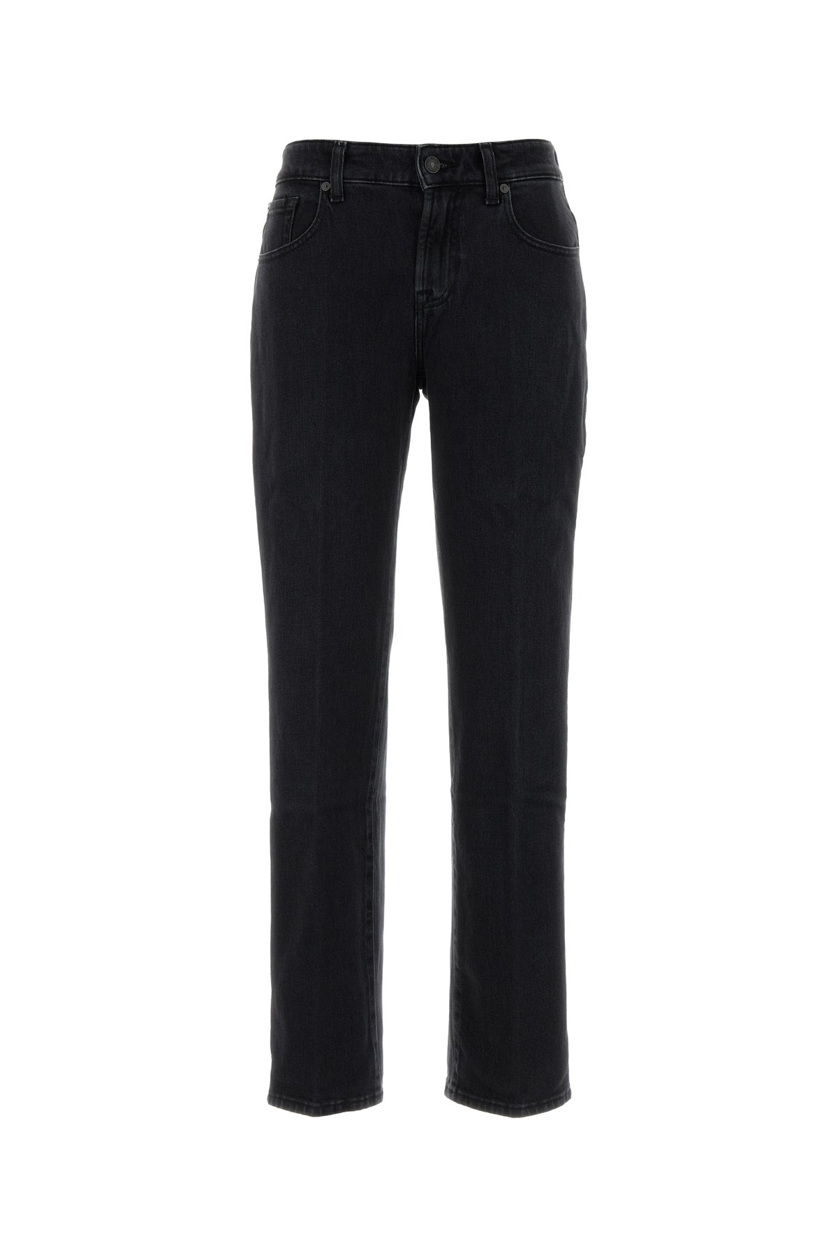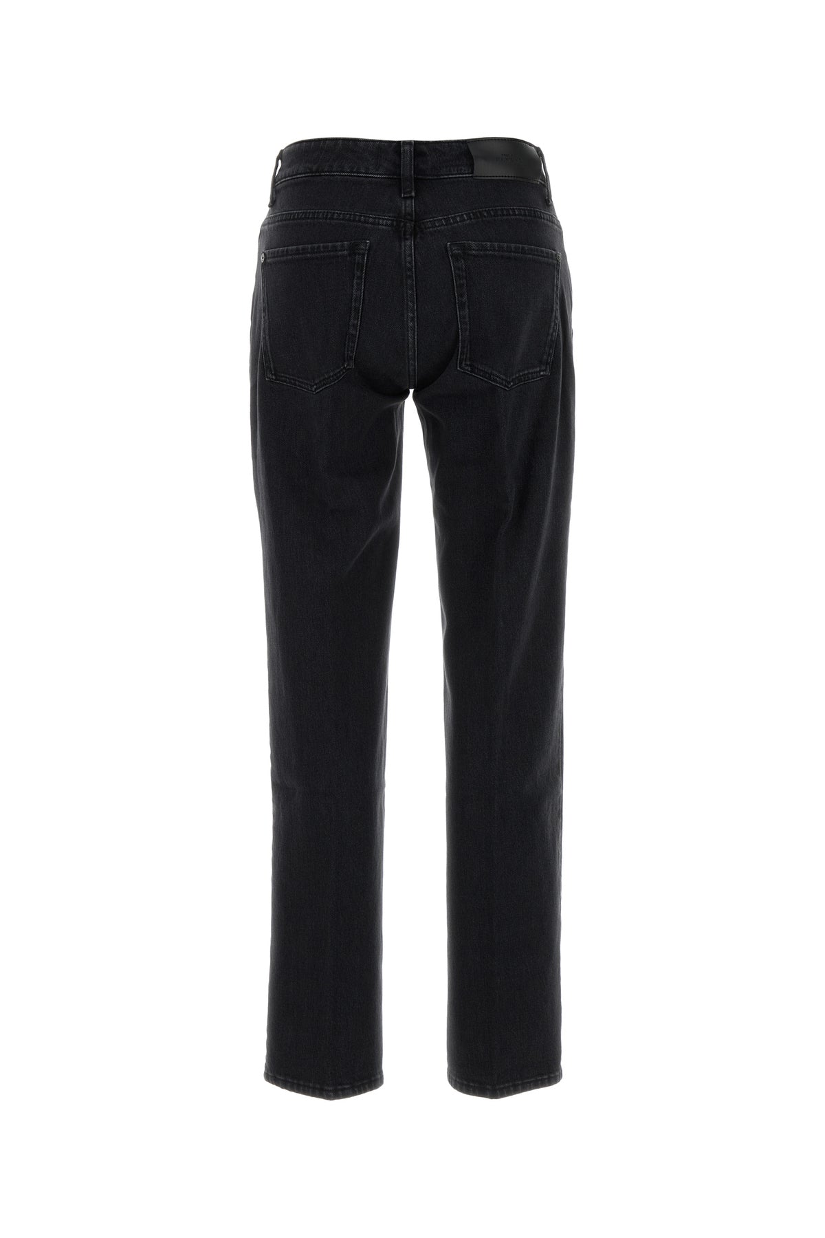 Jeans realized in stretch cotton denim enriched by tonal logoed label at the back.