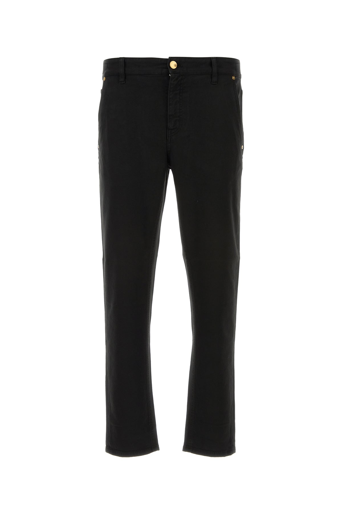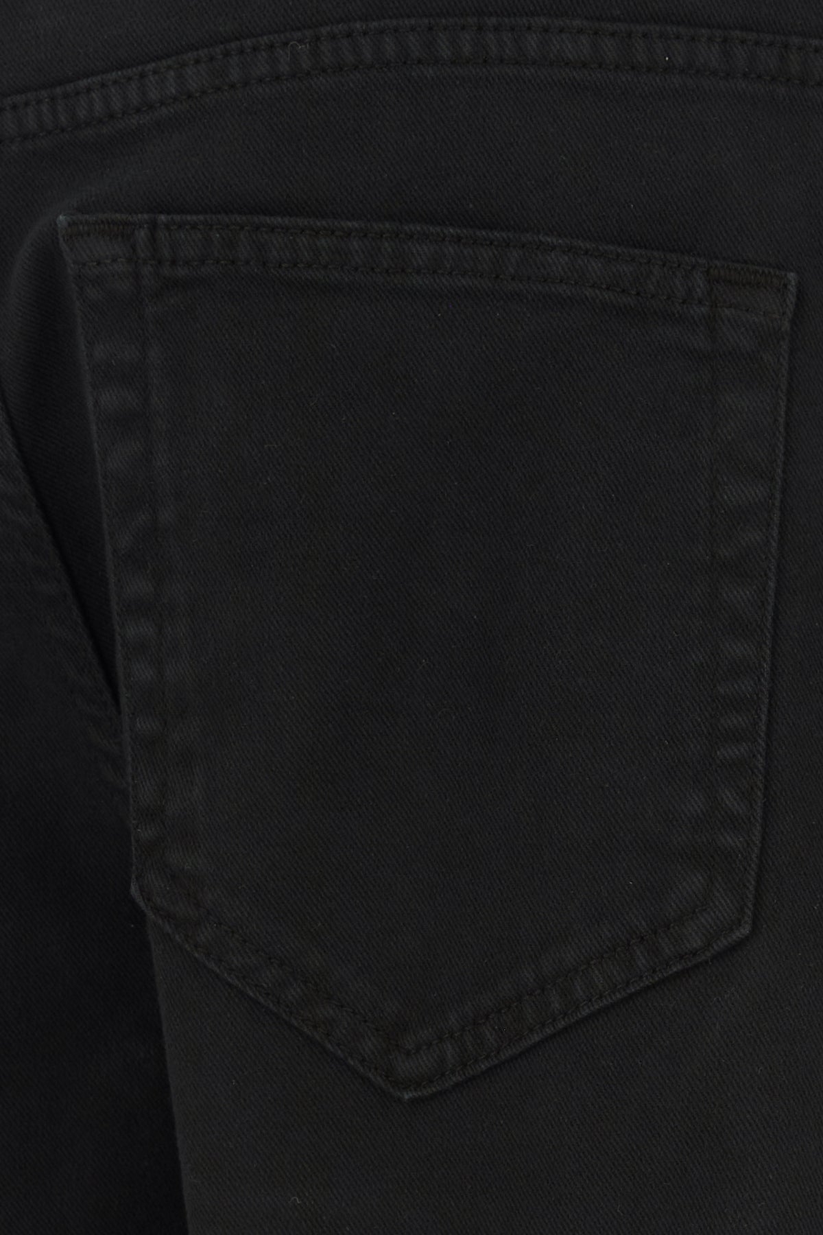 Regular jeans realized in stretch denim enriched by contrasting logoed label at the back.