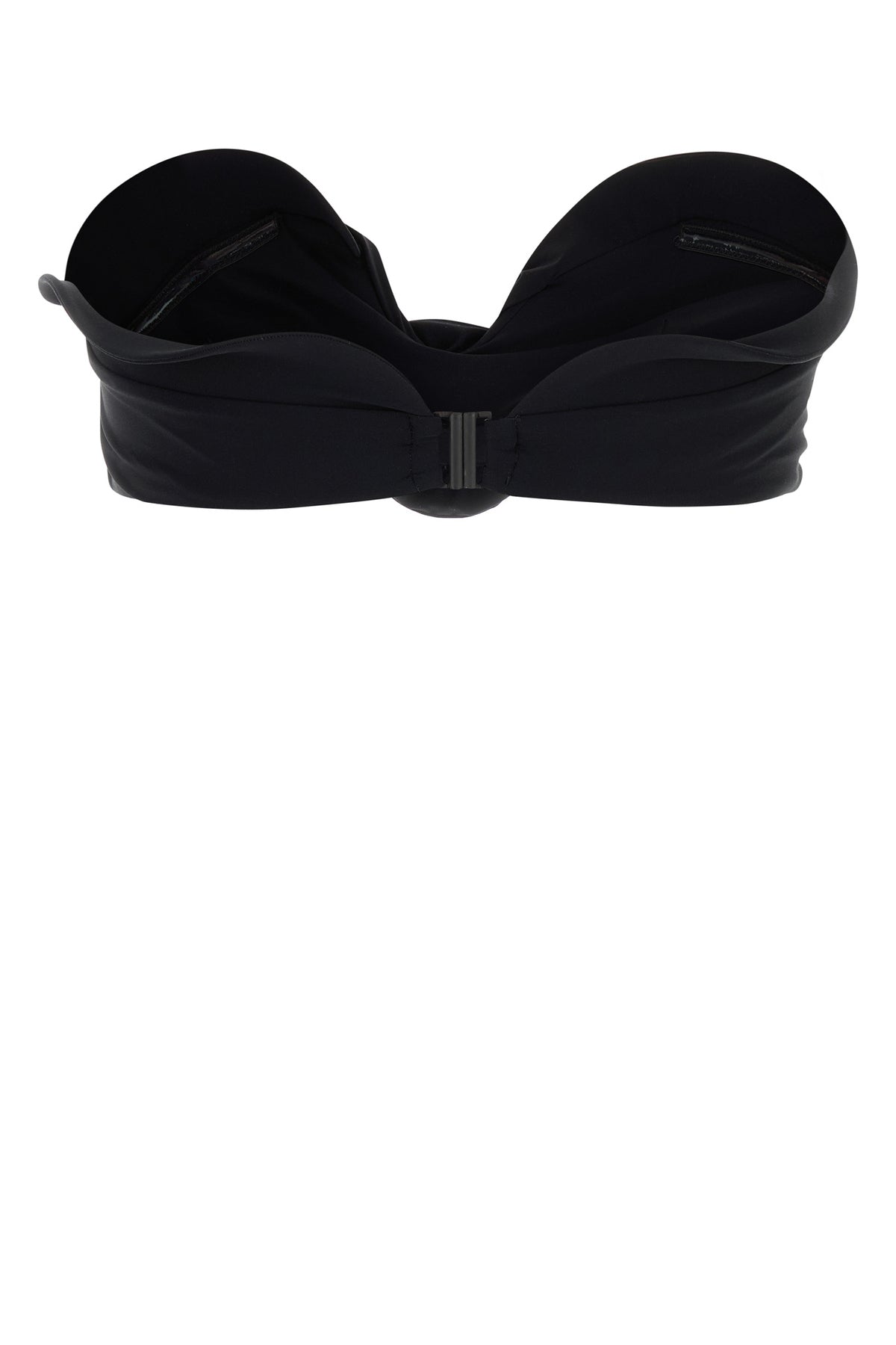 Bikini top realized in stretch nylon enriched by tonal floral patch at the front.
