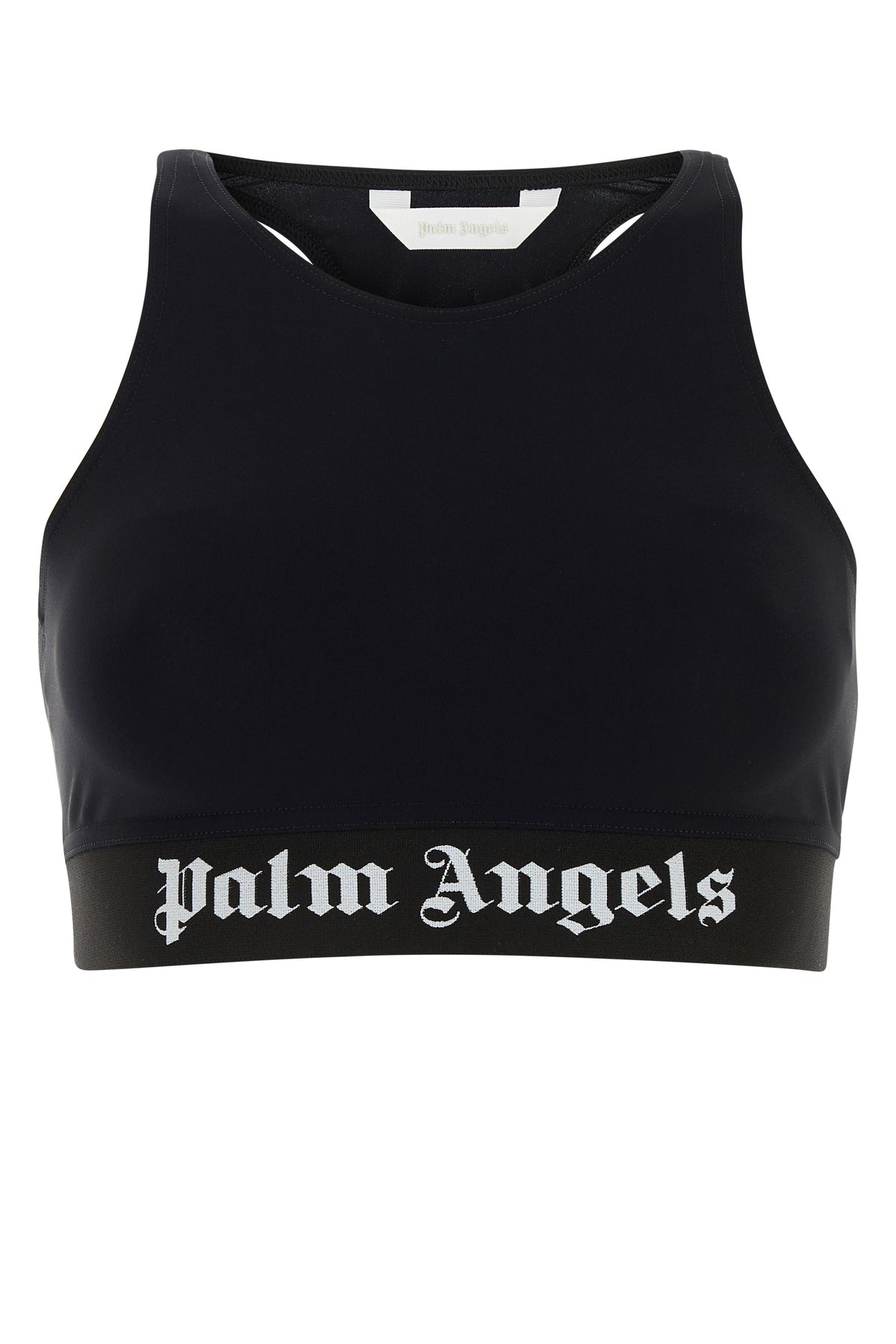 Crop-top realized in stretch nylon enriched by logoed band on the hemline.