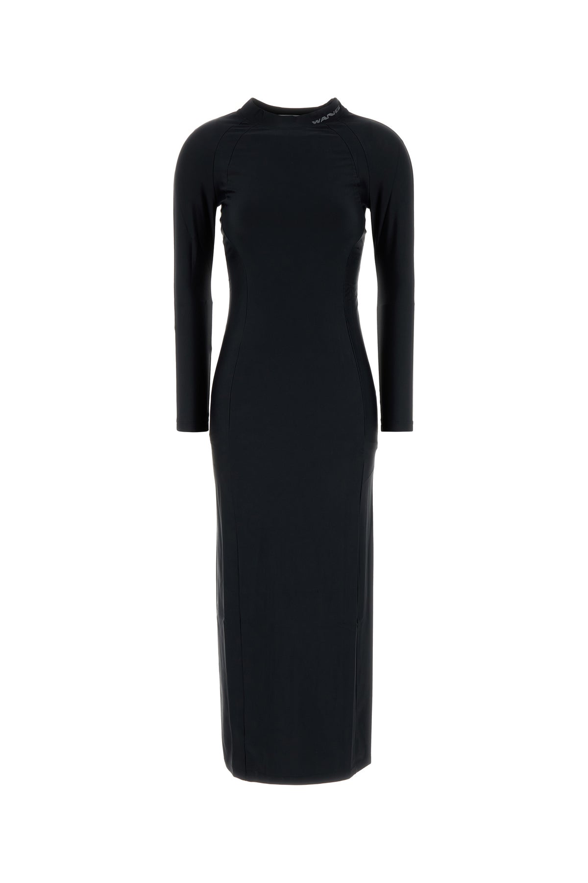 Long-cut fitted dress realized in stretch nylon characterized by contrasting printed logo on the collar.