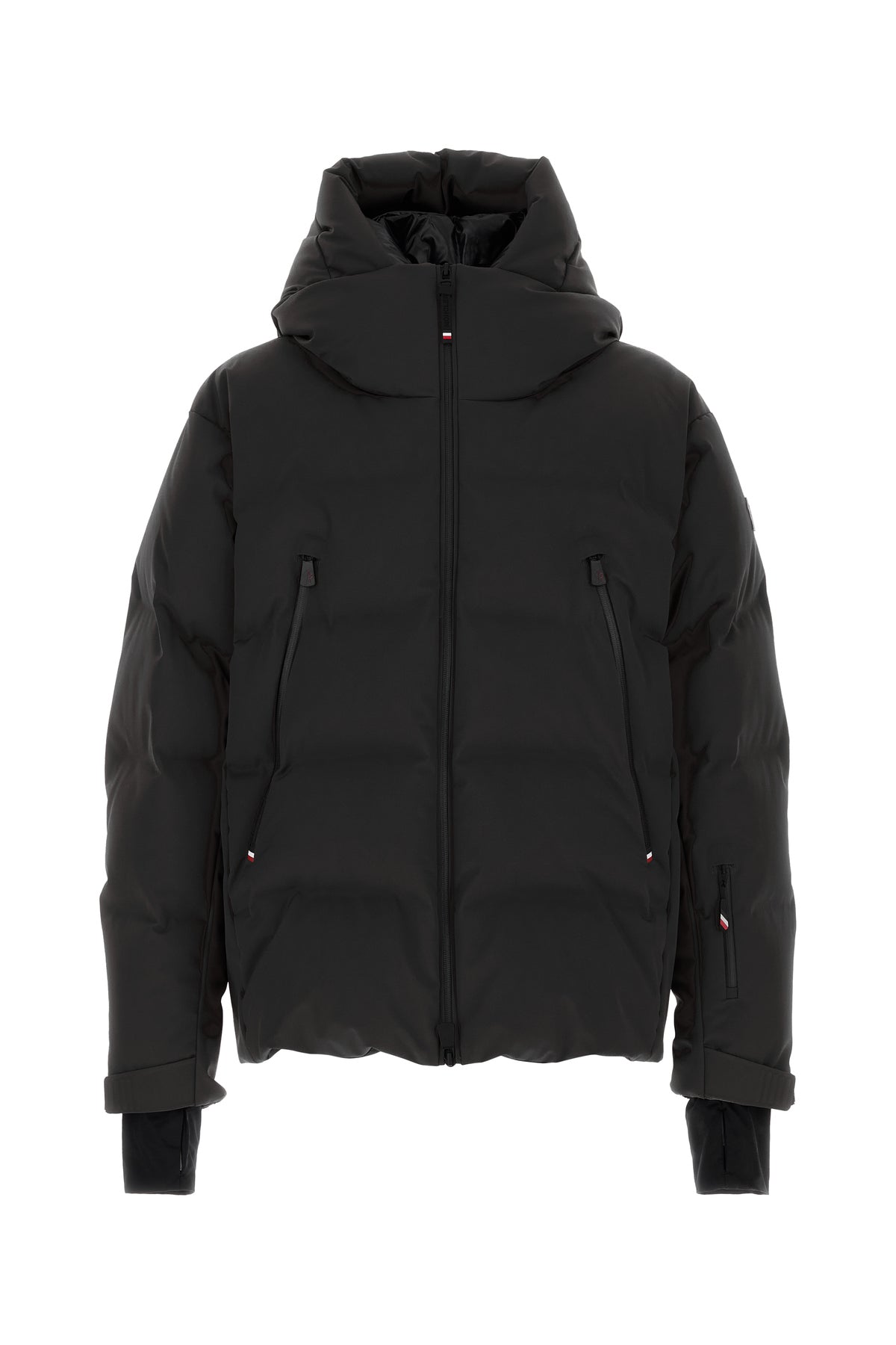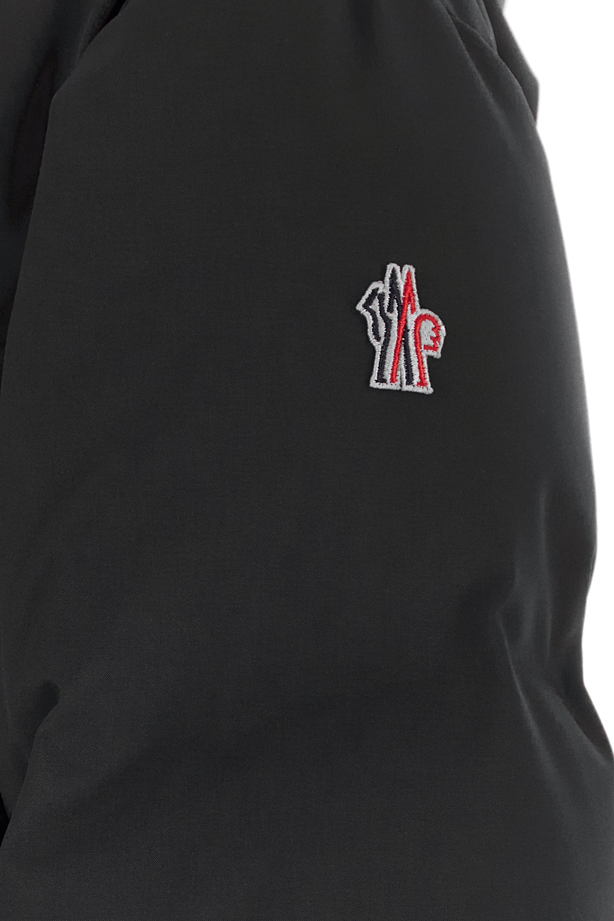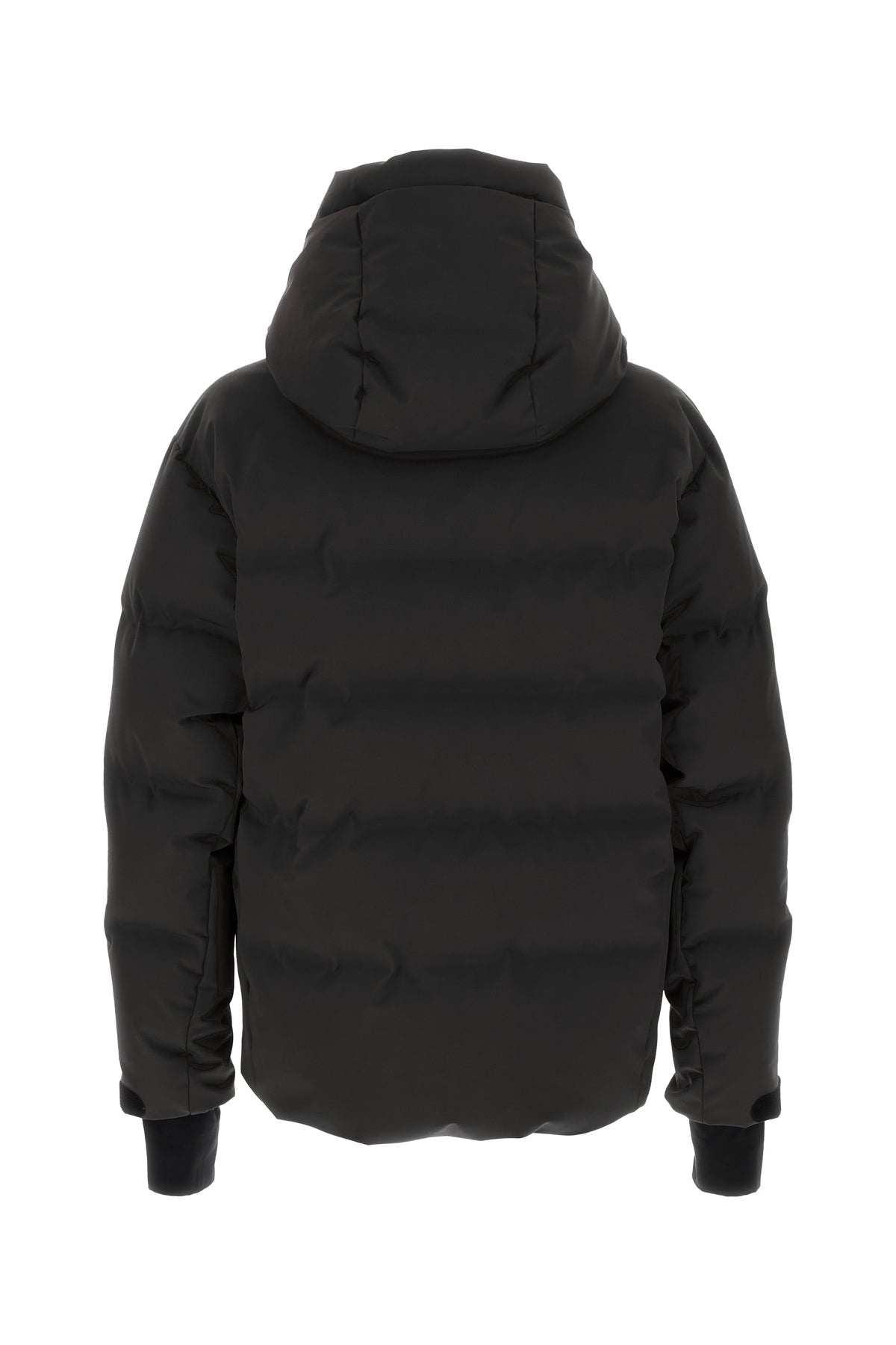 Down jacket realized in stretch nylon enriched by logoed label on the sleeve.