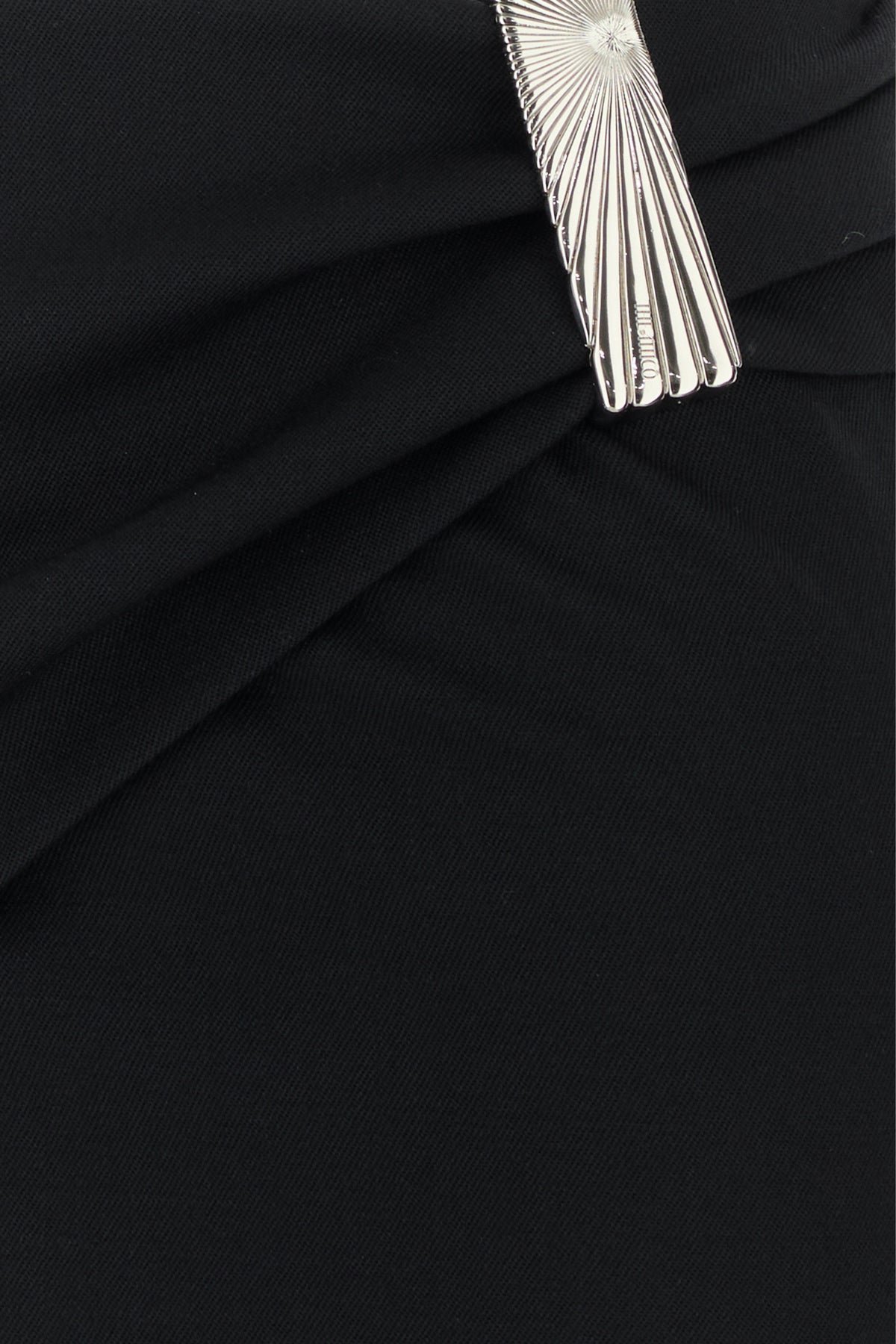 Mini skirt realized in stretch virgin wool twill enriched by logoed metal detail at the front.