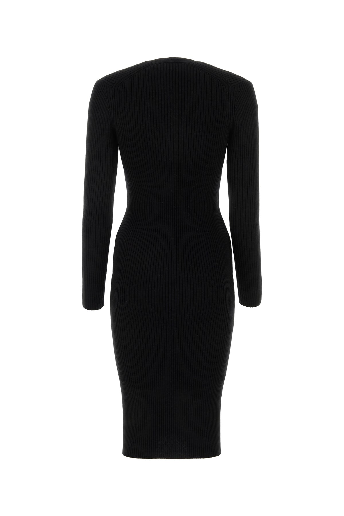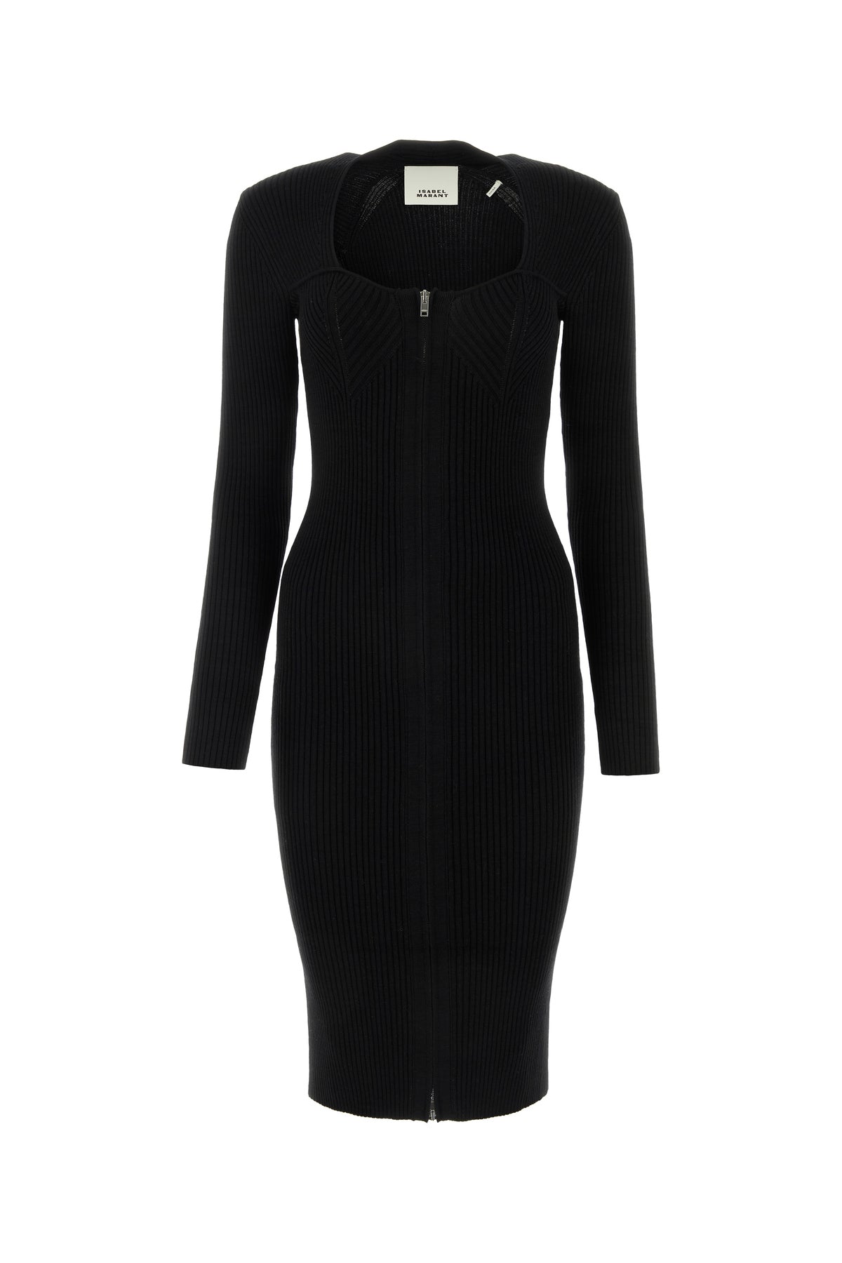 Dress realized in ribbed stretch merino wool blend characterized by concealed zip closure at the front.